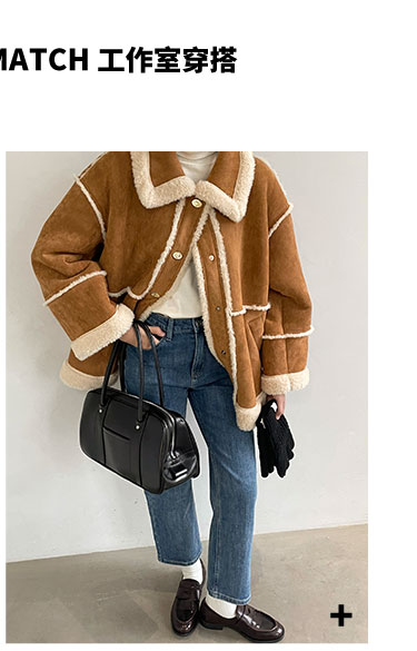 「新款!小众设计加绒外套」范洛新款羊筋绒皮毛一体外套女加绒加厚仿羊羔毛设计感