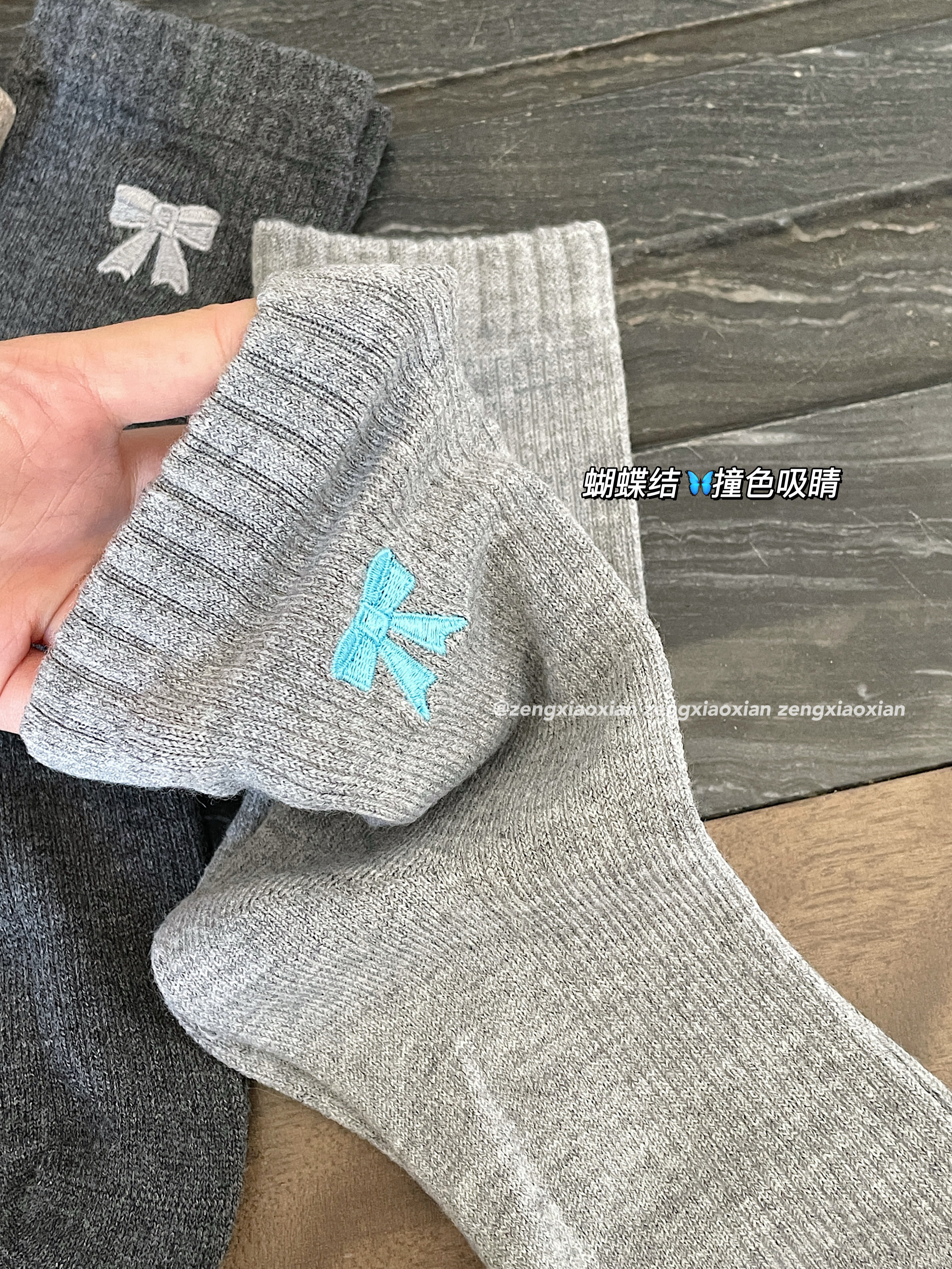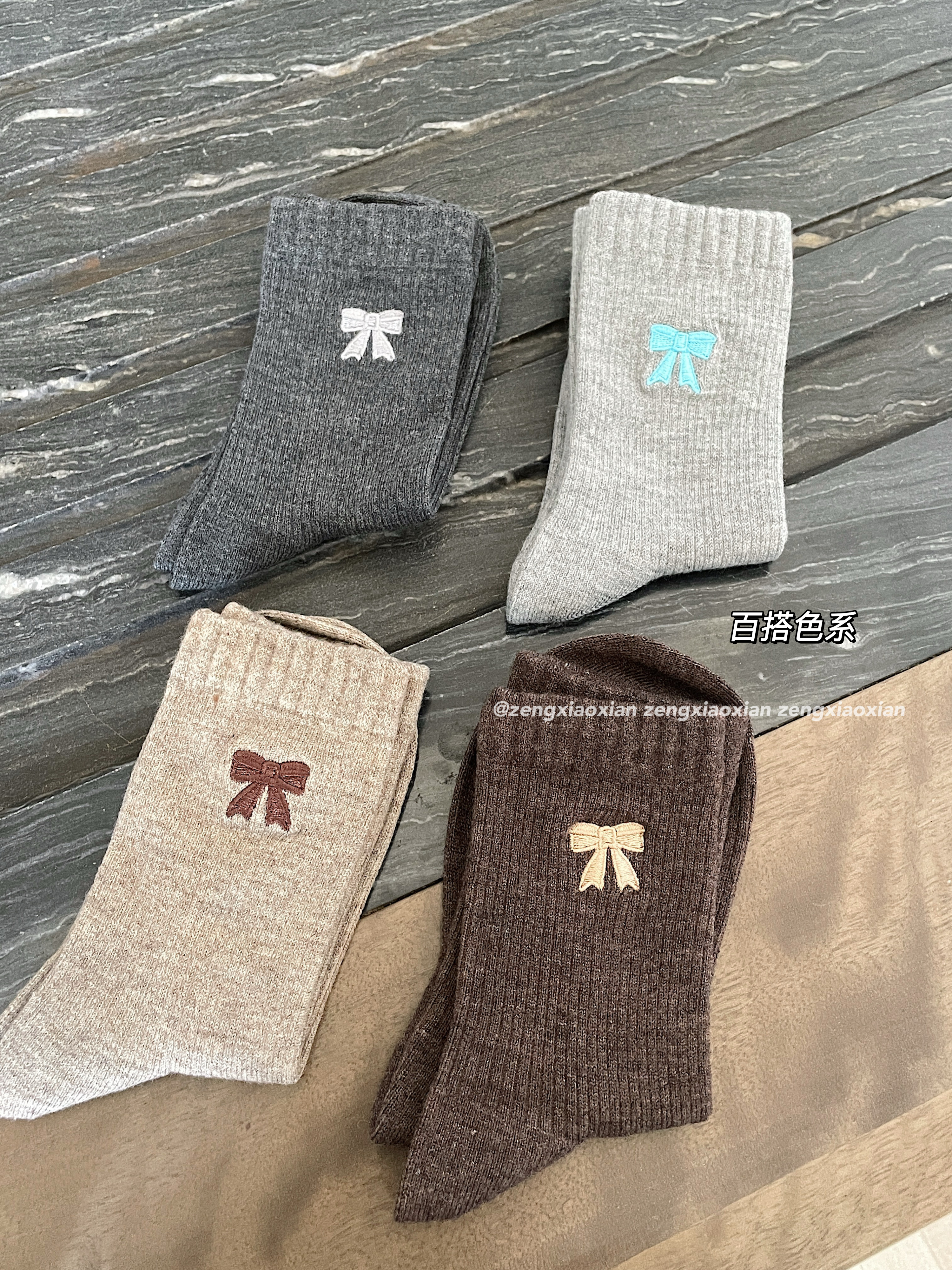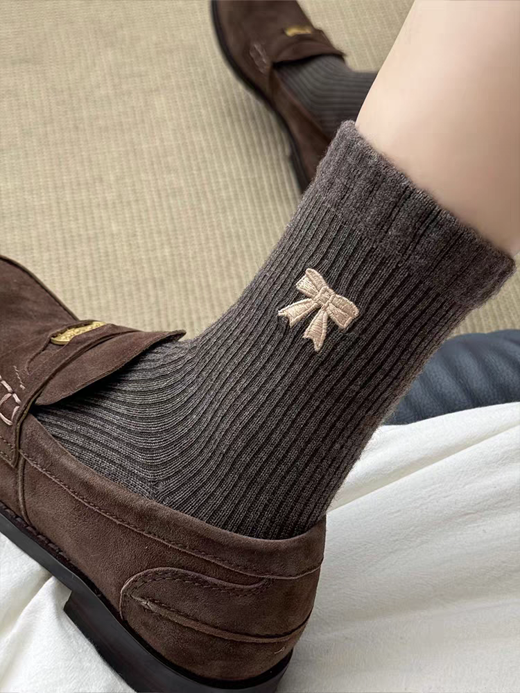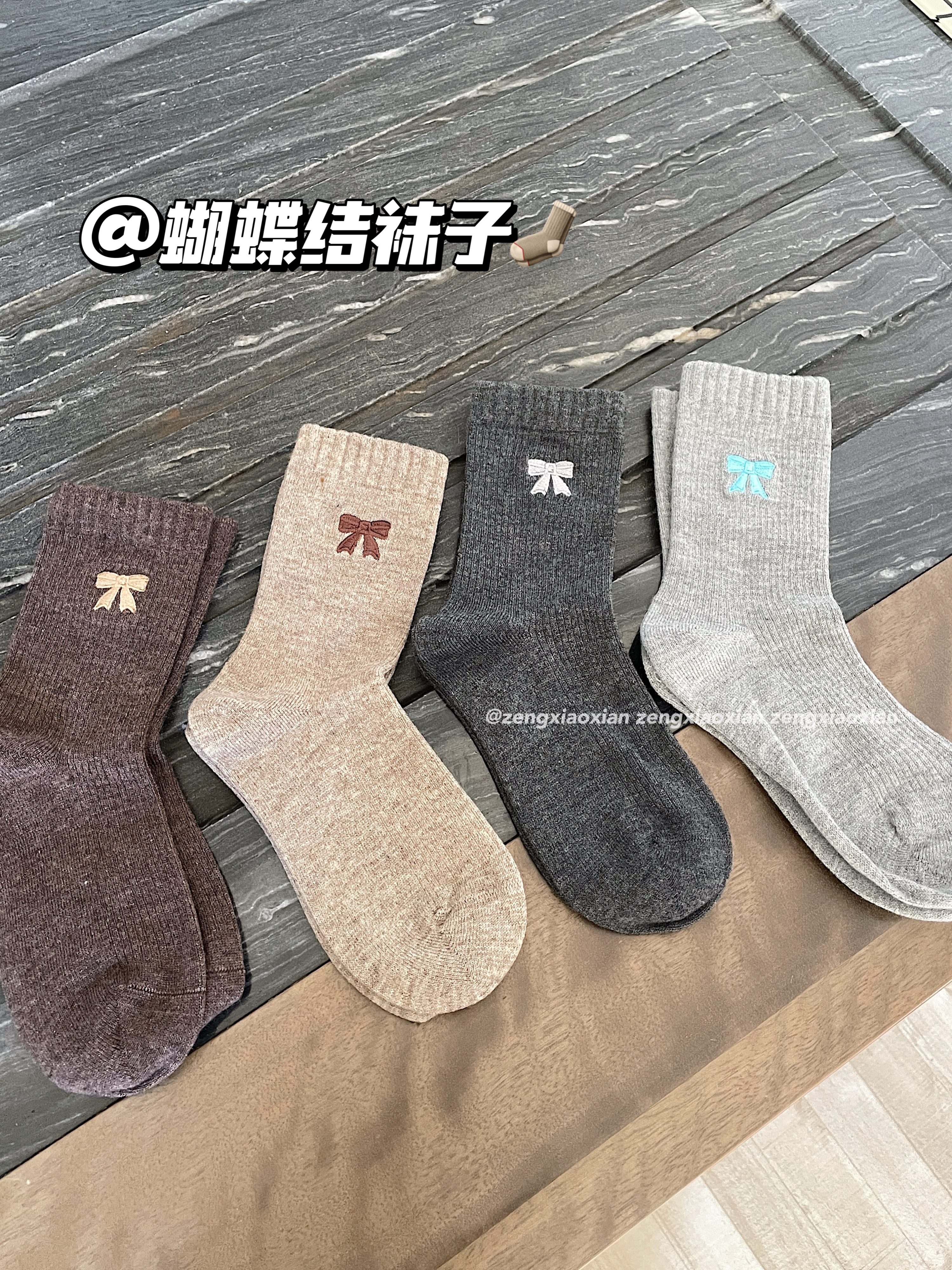 <曾小咸推荐>撞色刺绣蝴蝶结 日常价89/4双! 活动价49.99/4双!【预售款,预计3-15天发货】