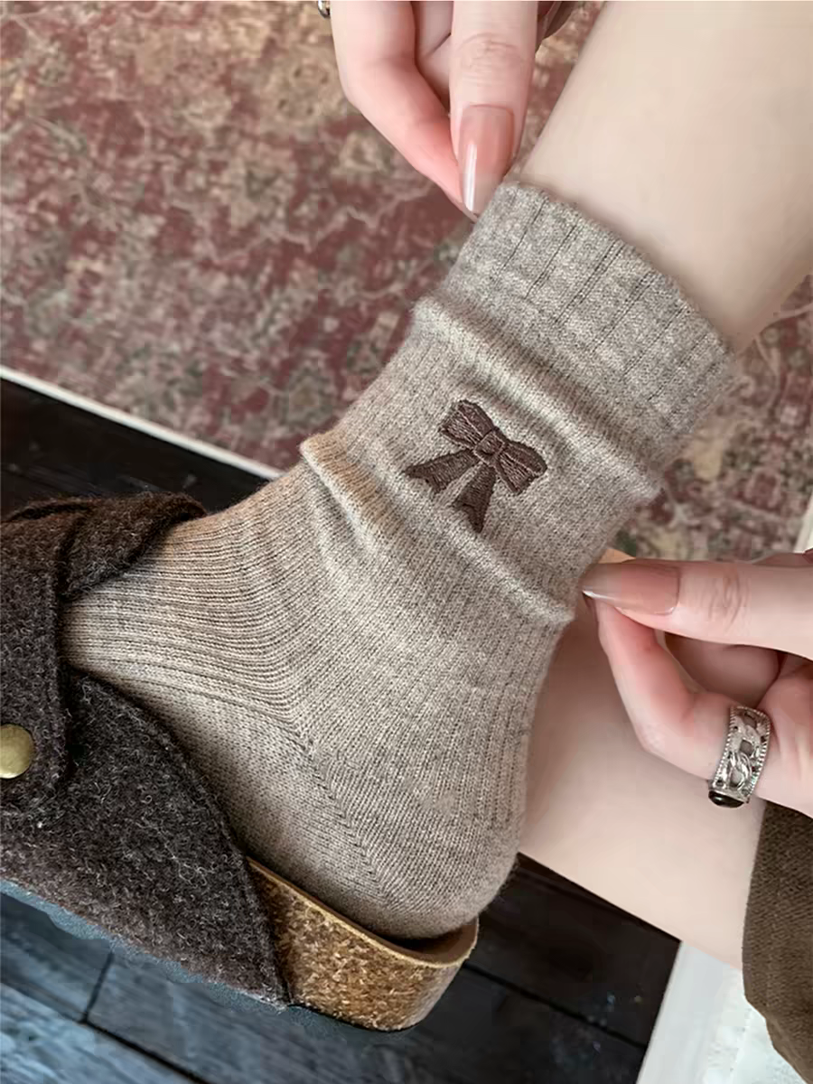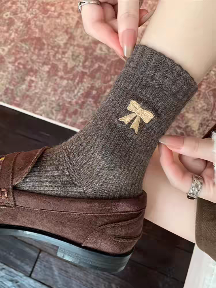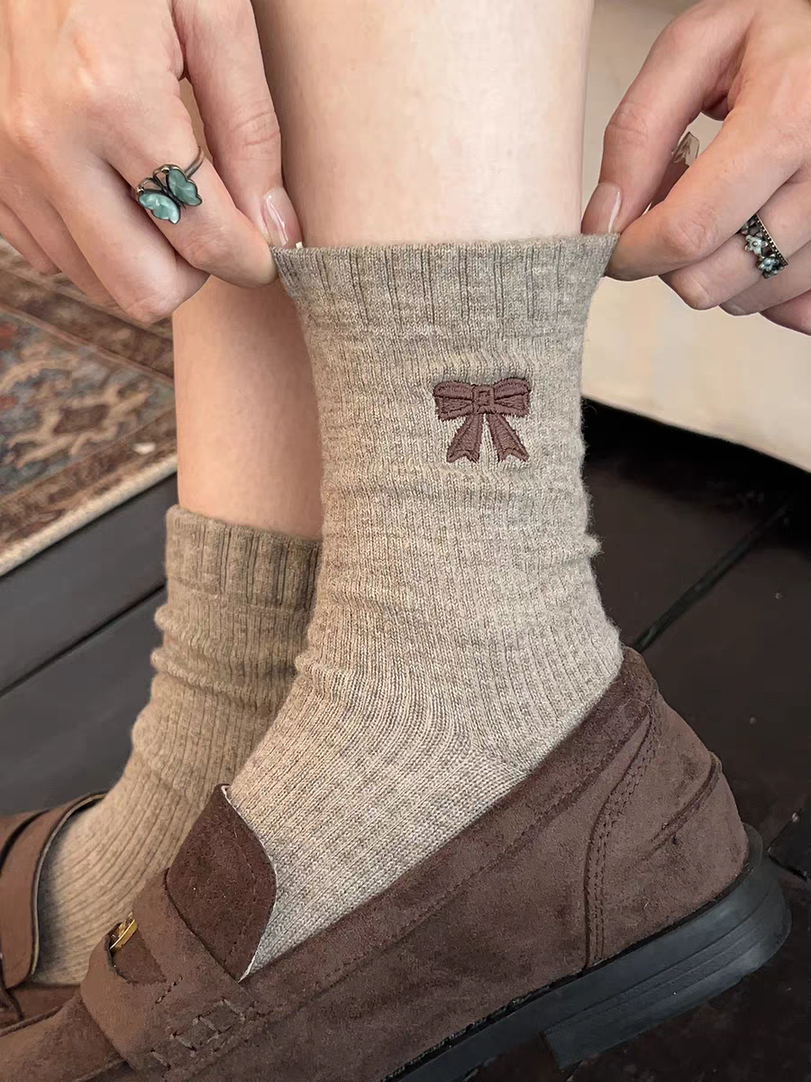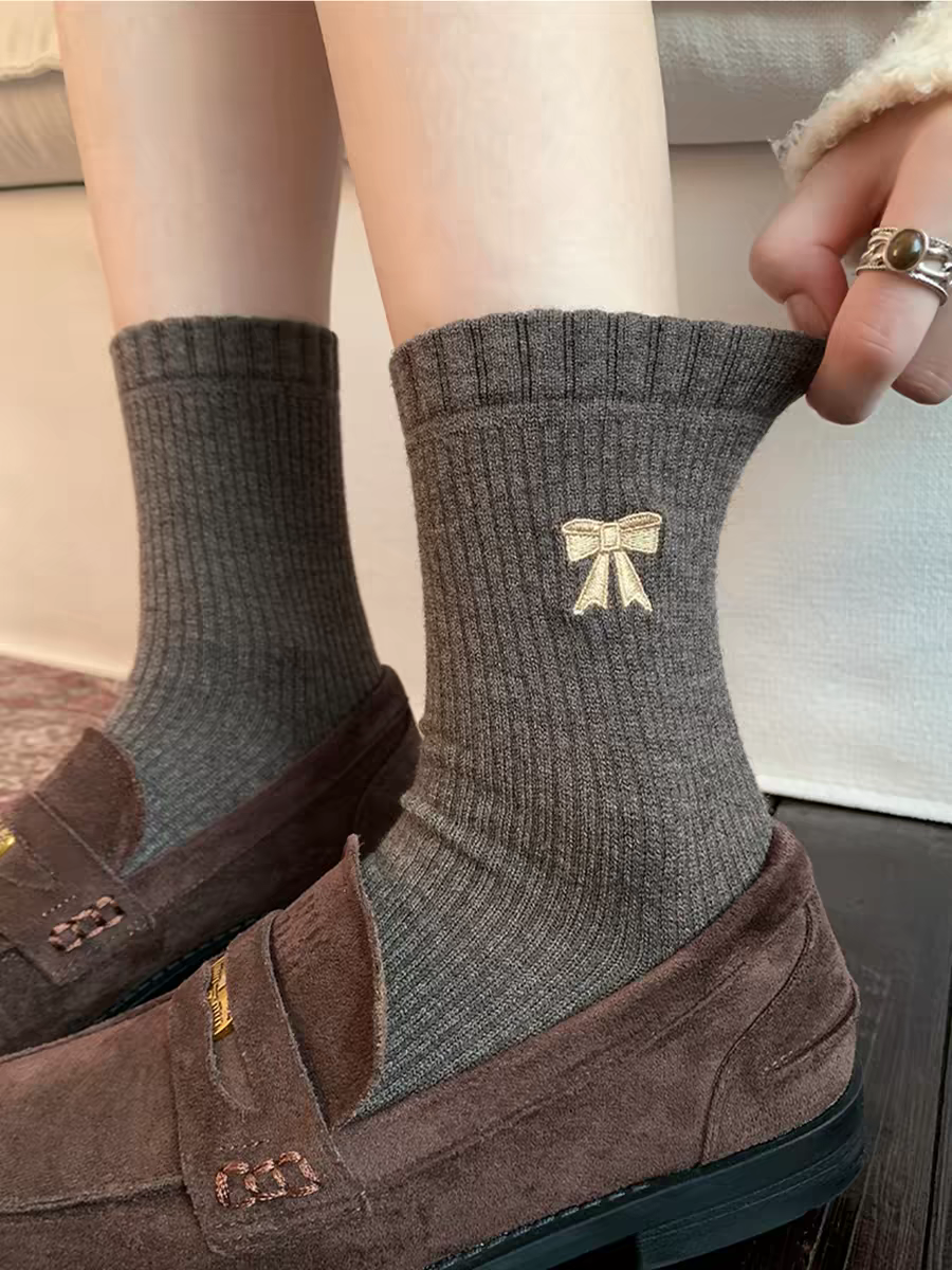<曾小咸推荐>撞色刺绣蝴蝶结 日常价89/4双! 活动价49.99/4双!【预售款,预计3-15天发货】