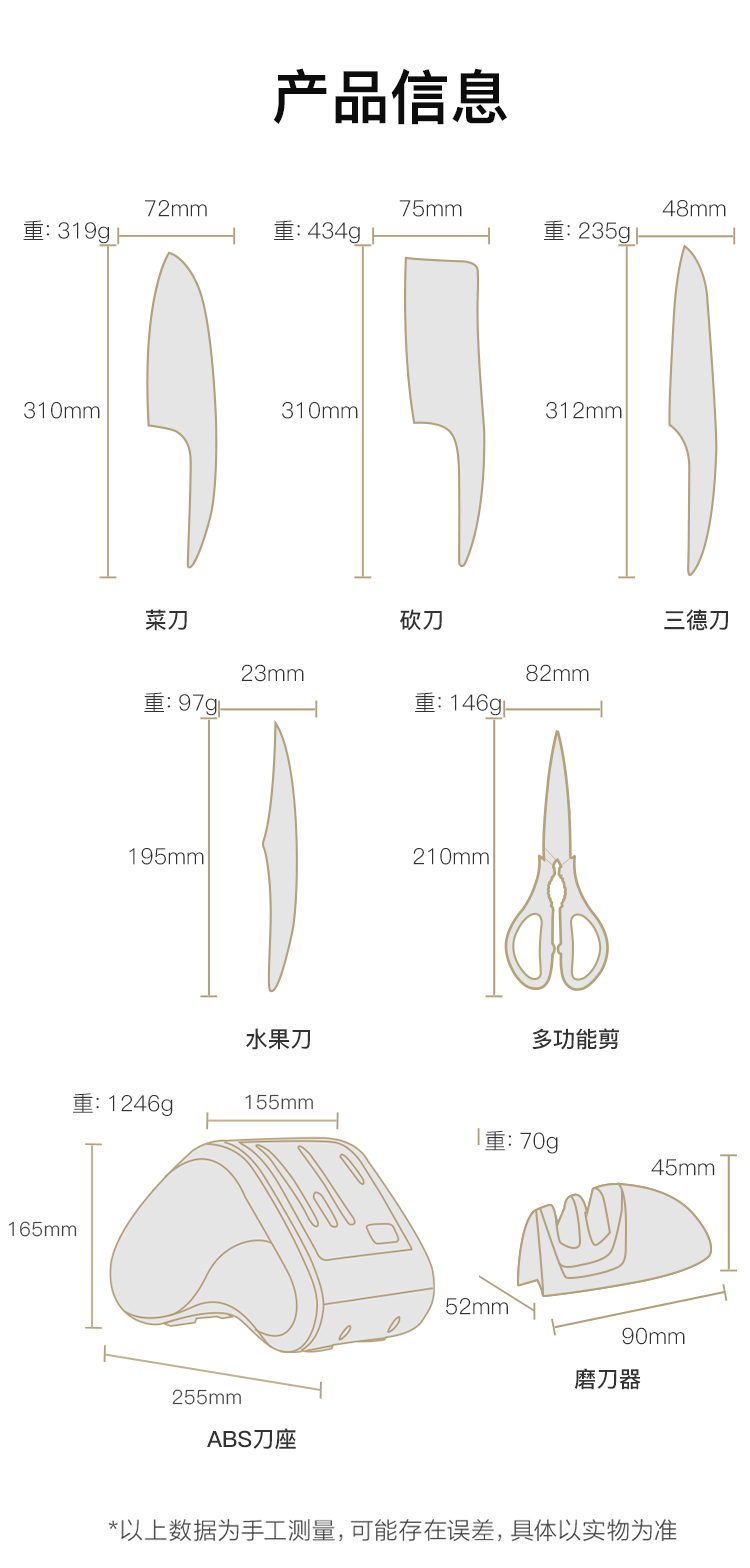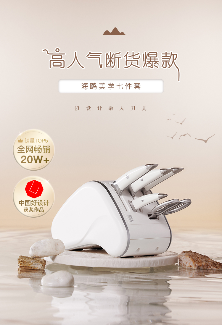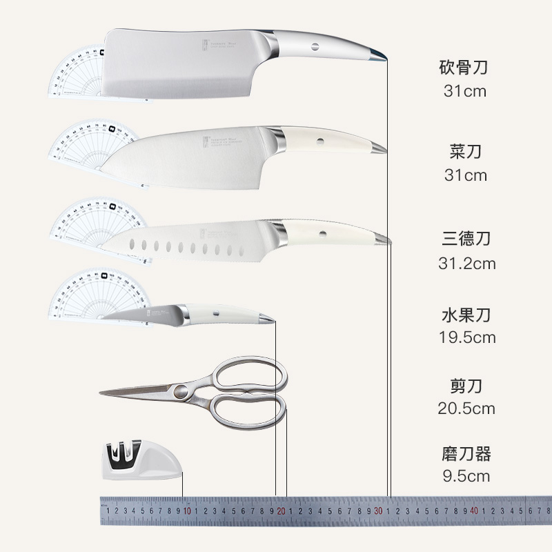 拓 海鸥菜刀套装家用厨刀进口不锈钢锋利切片刀厨房白色刀具套装