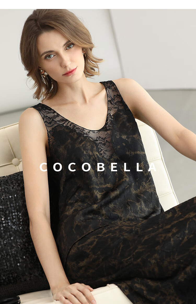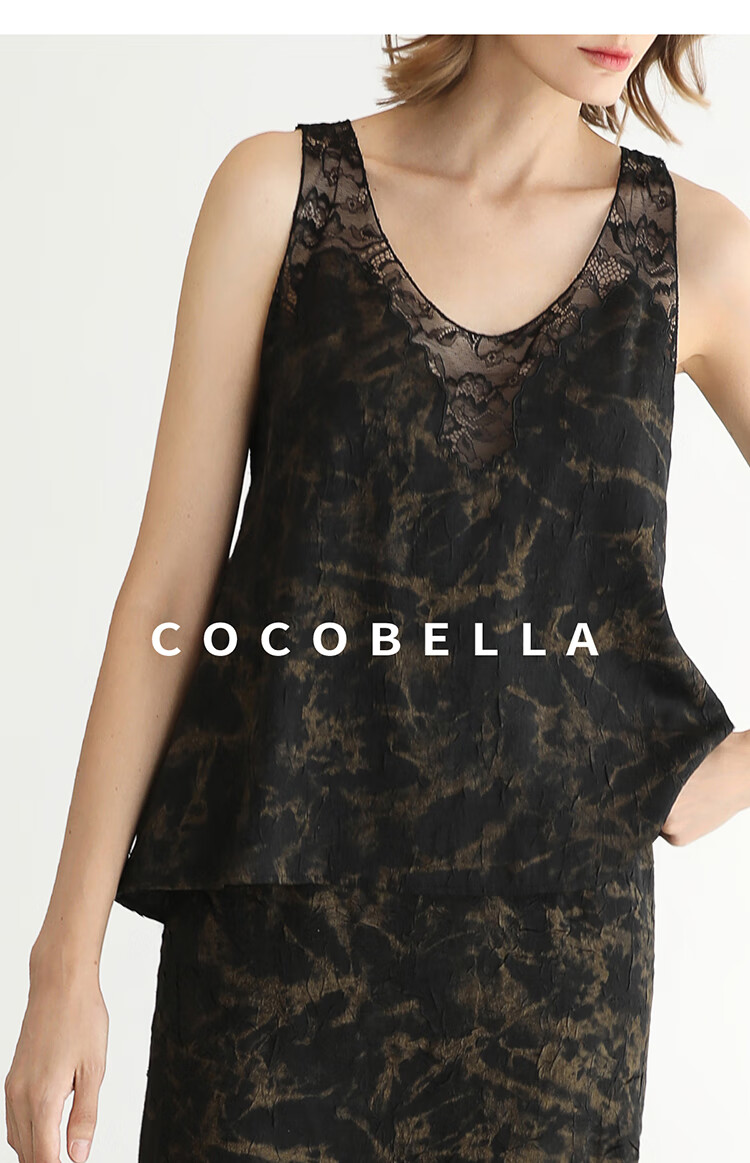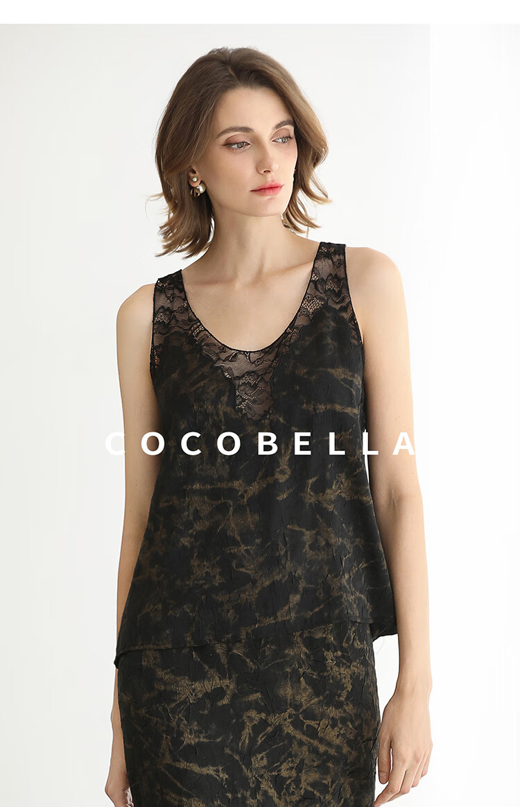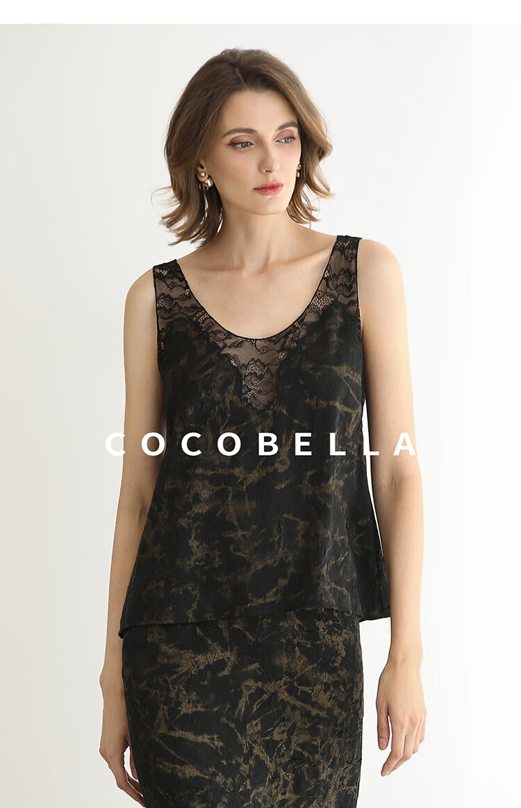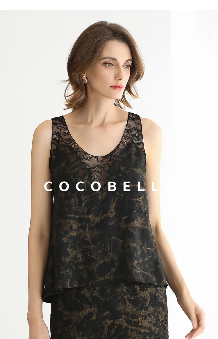 COCOBELLA重工刺绣蕾丝吊带背心夏可外穿打底黑金上衣VT0020