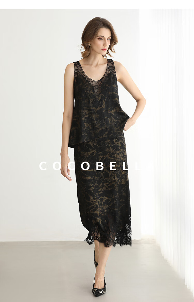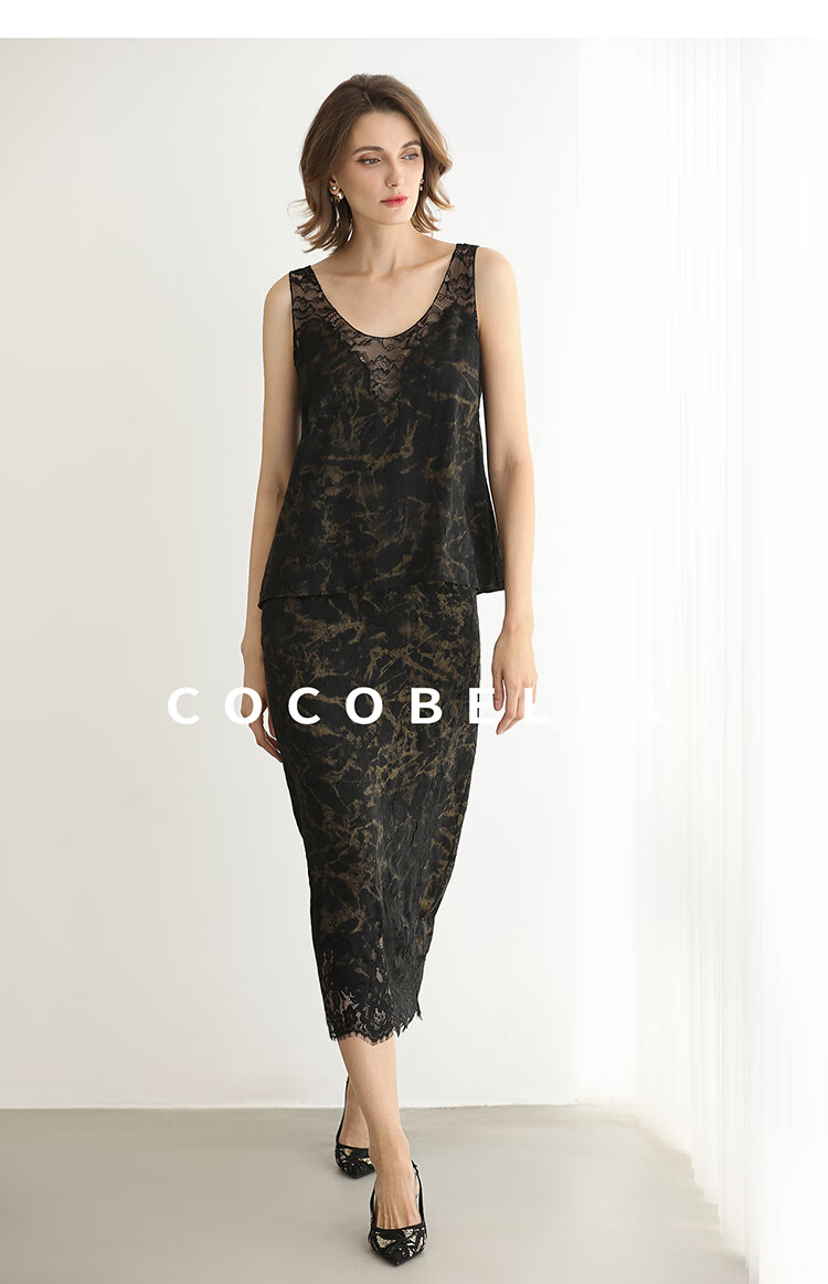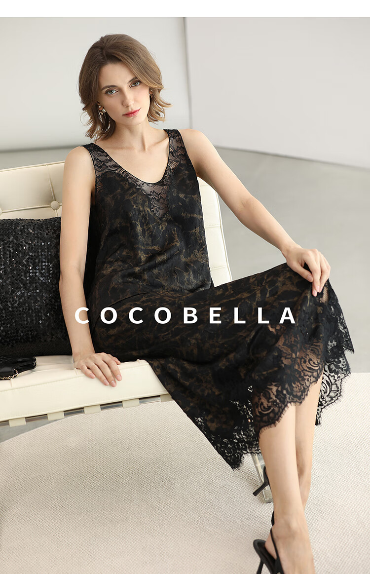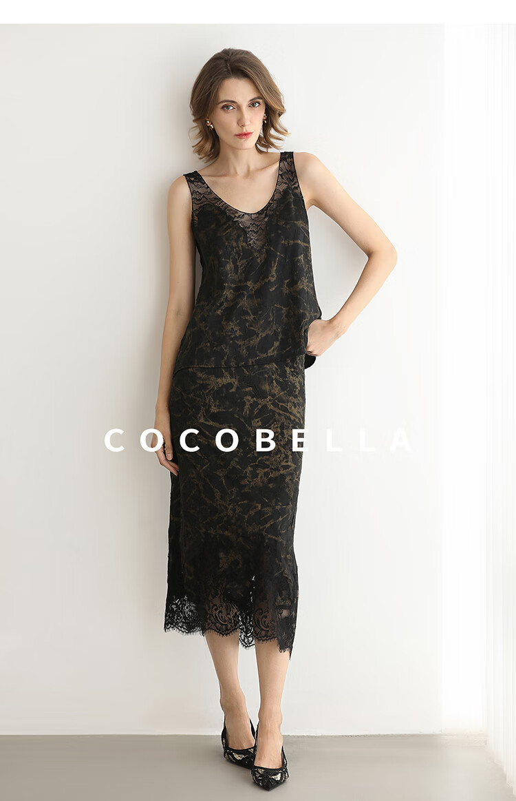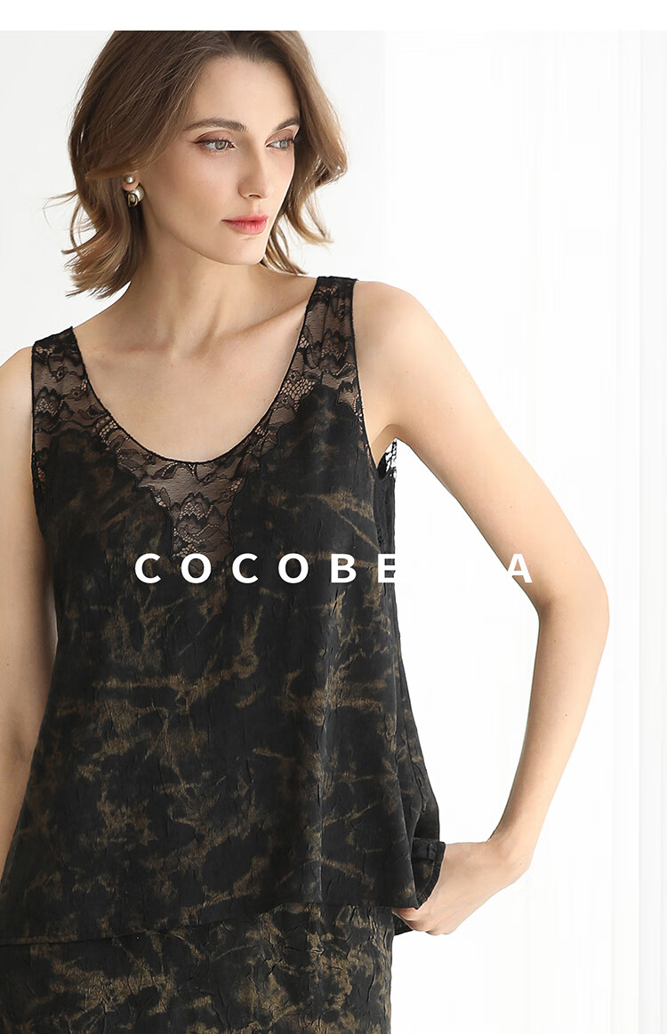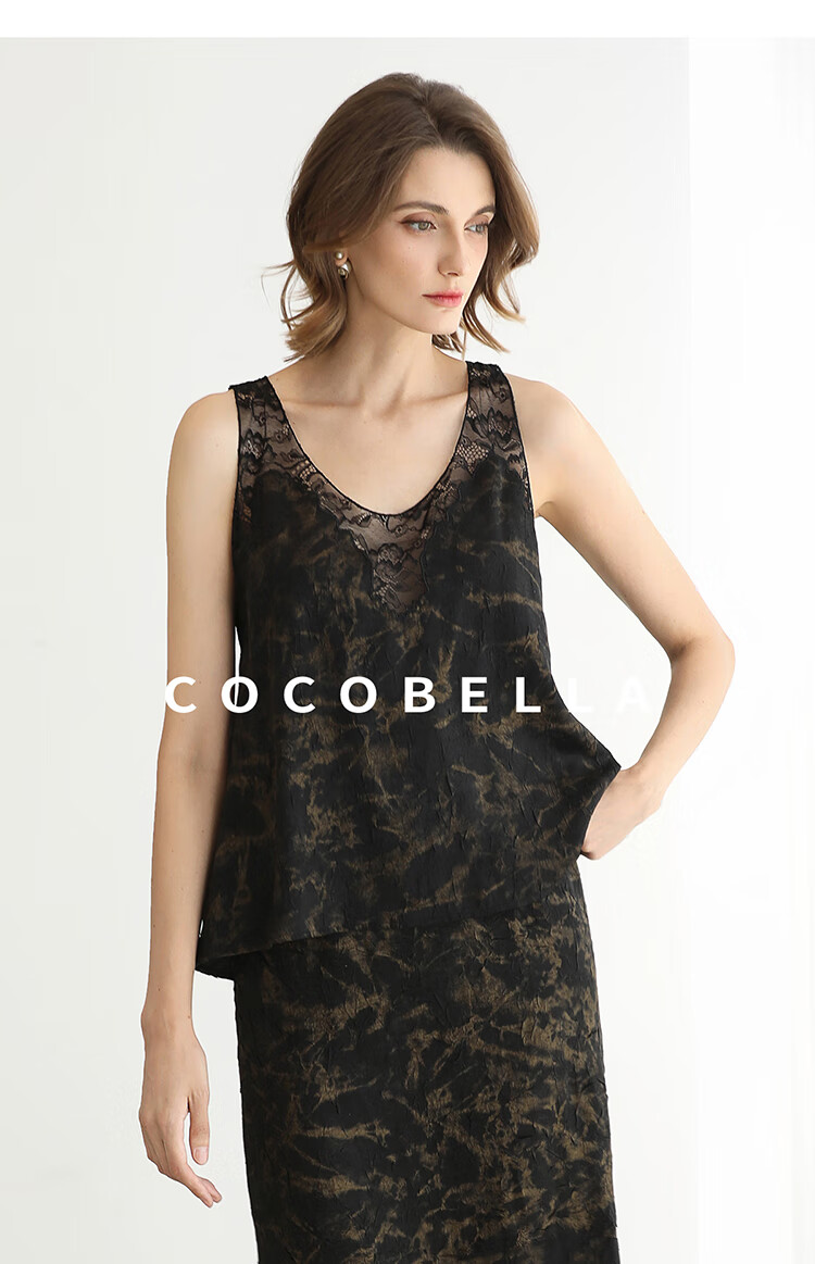 COCOBELLA重工刺绣蕾丝吊带背心夏可外穿打底黑金上衣VT0020