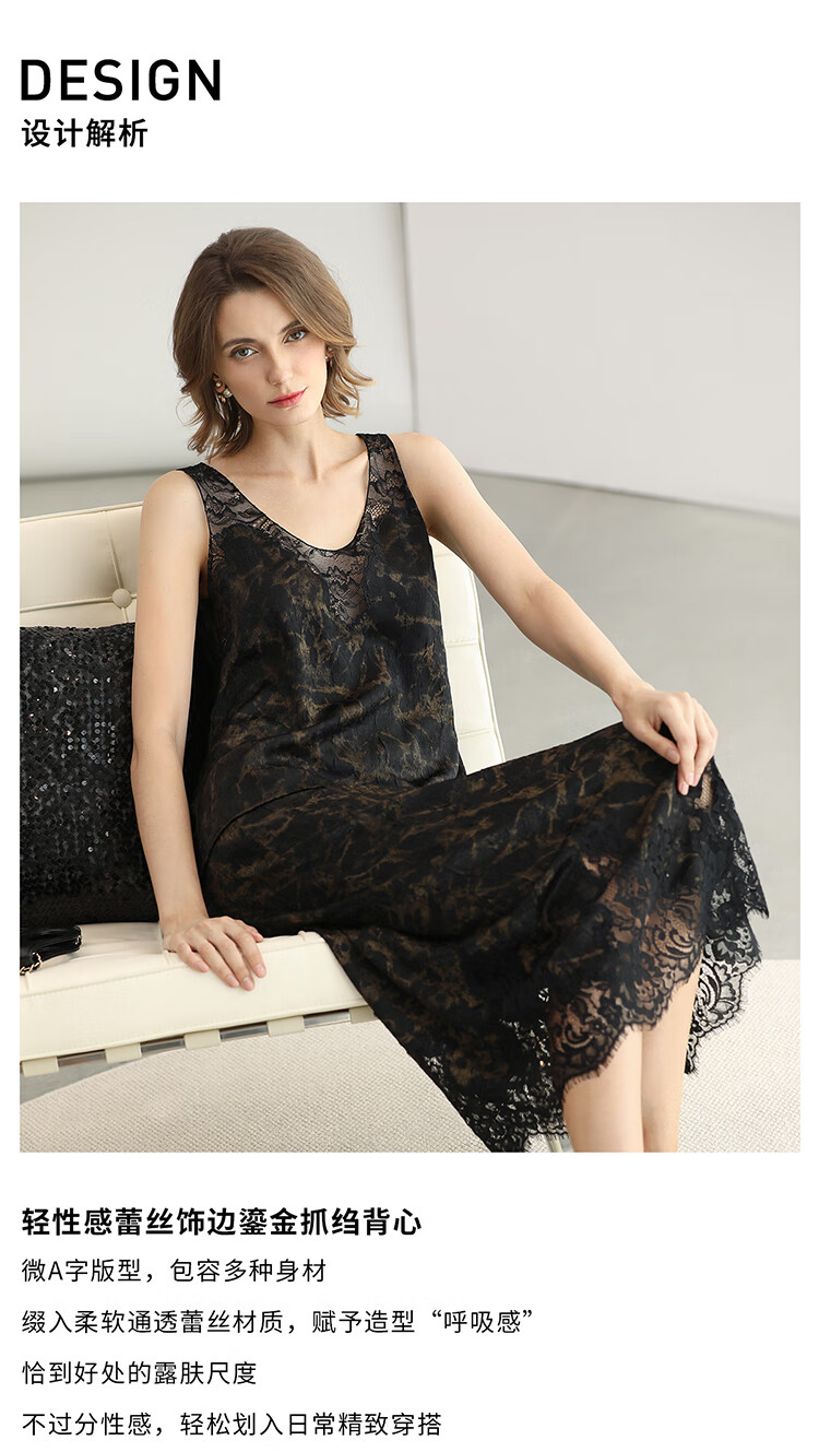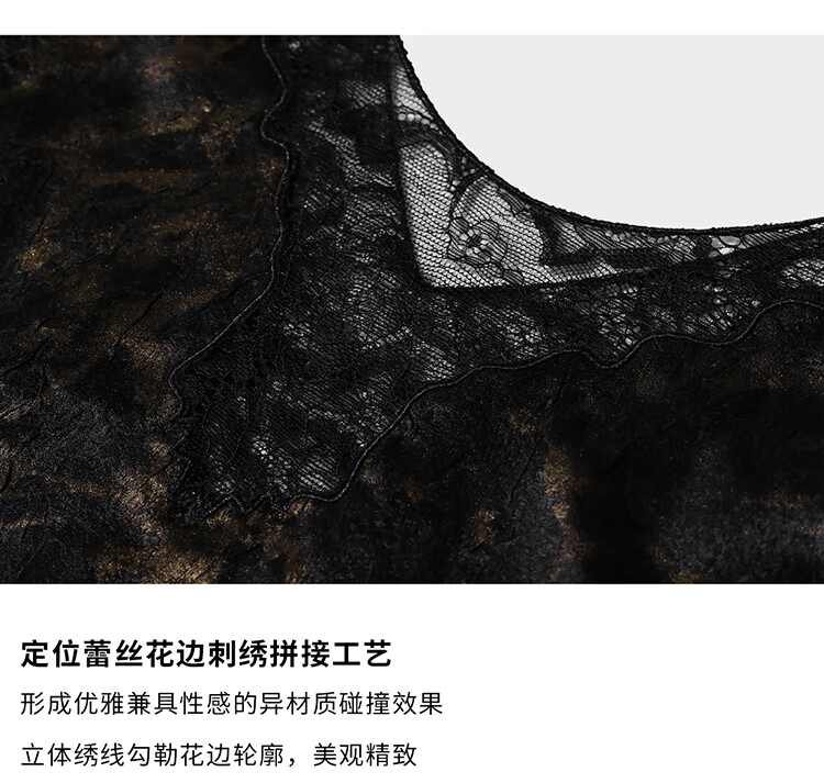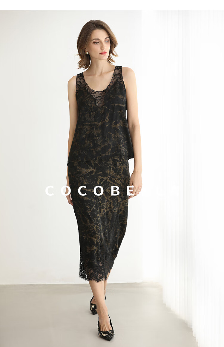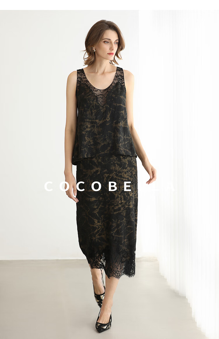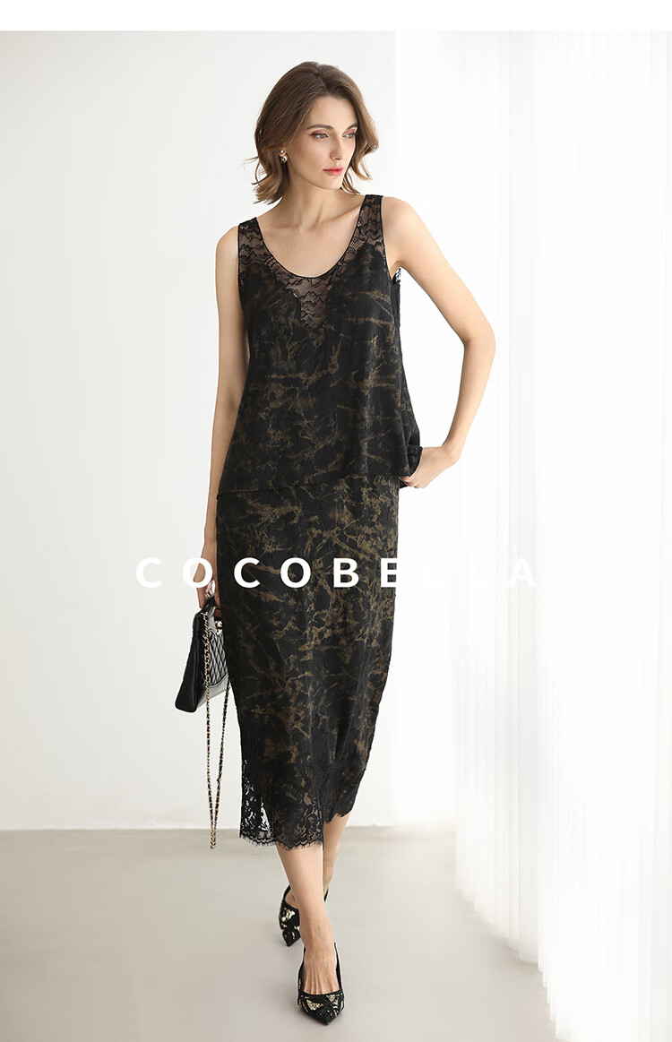 COCOBELLA重工刺绣蕾丝吊带背心夏可外穿打底黑金上衣VT0020