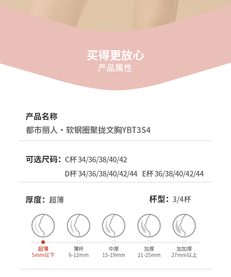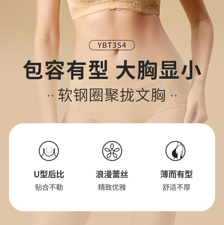 都市丽人内衣完美包容常规文胸蕾丝超薄文胸3/4杯四排扣软钢圈YBT3S4