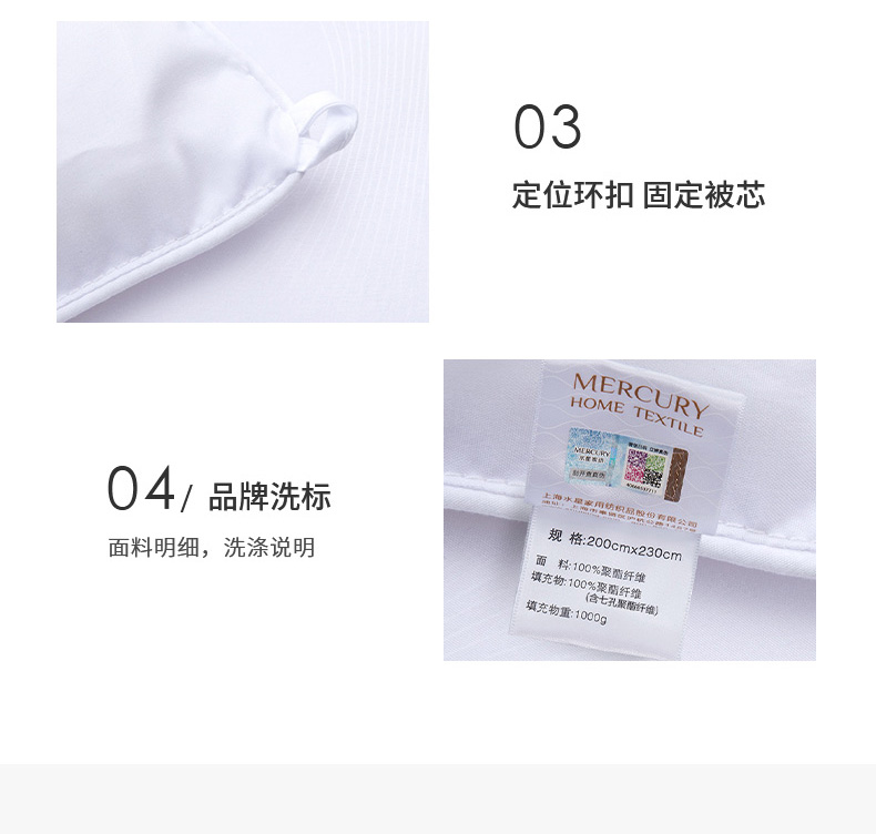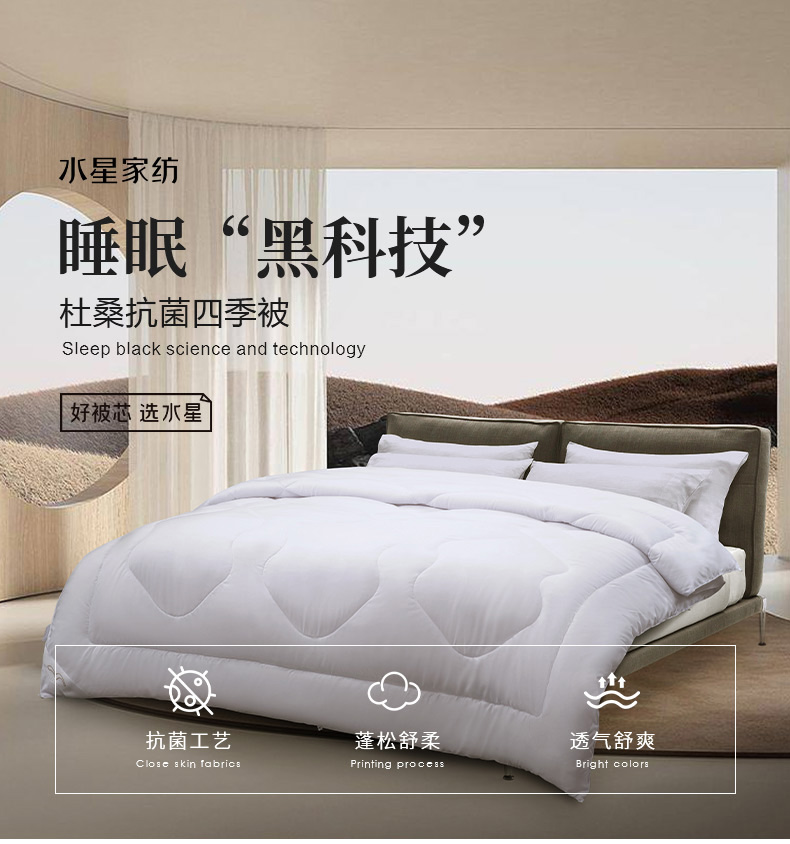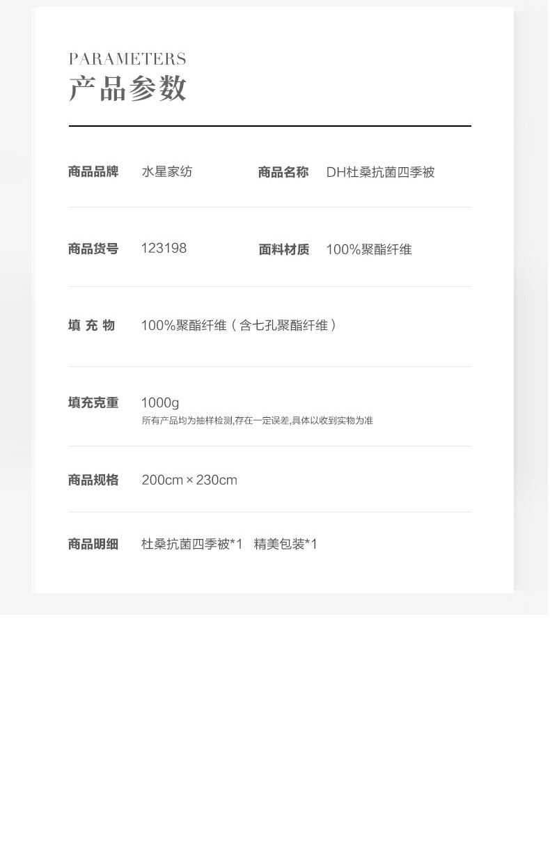 水星家纺 杜桑抗菌四季被200*230 填充物重1000g