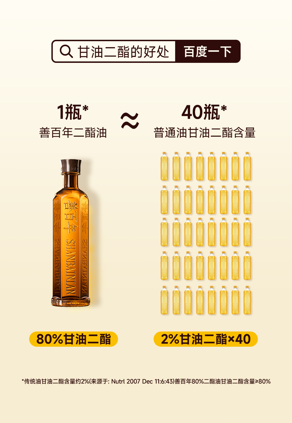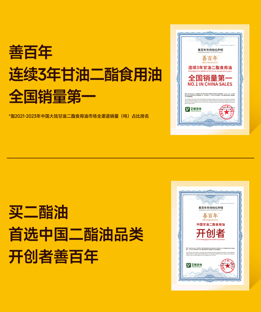 【顶配版】善百年80%含量甘油二酯食用油 新一代健康食用油 500毫升 支持分批发货
