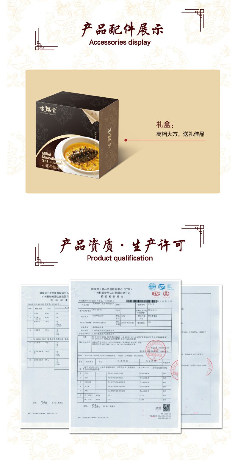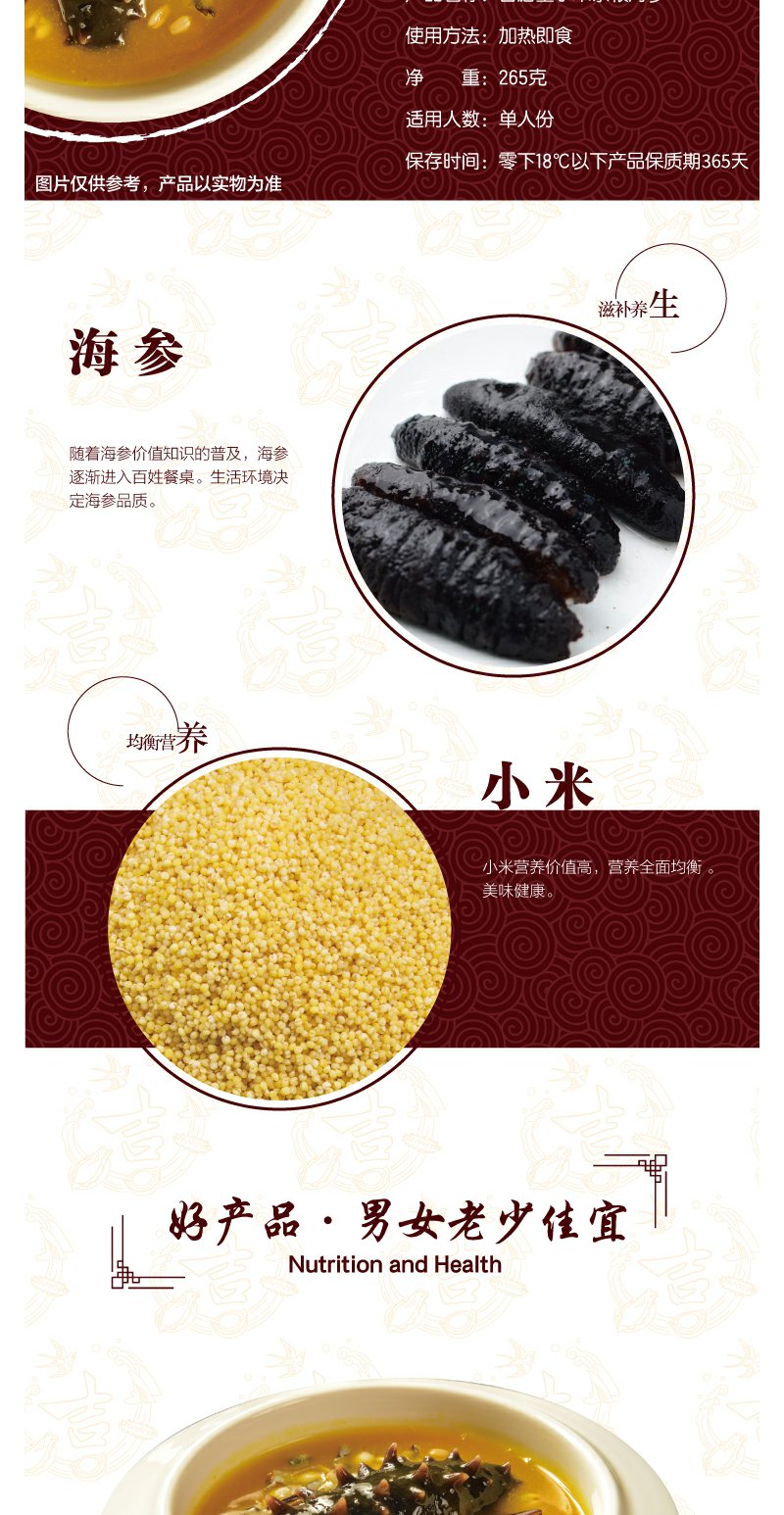 【吉膳堂小米杂粮海参】精选海参十几小时炖煮加热即食单人份265g