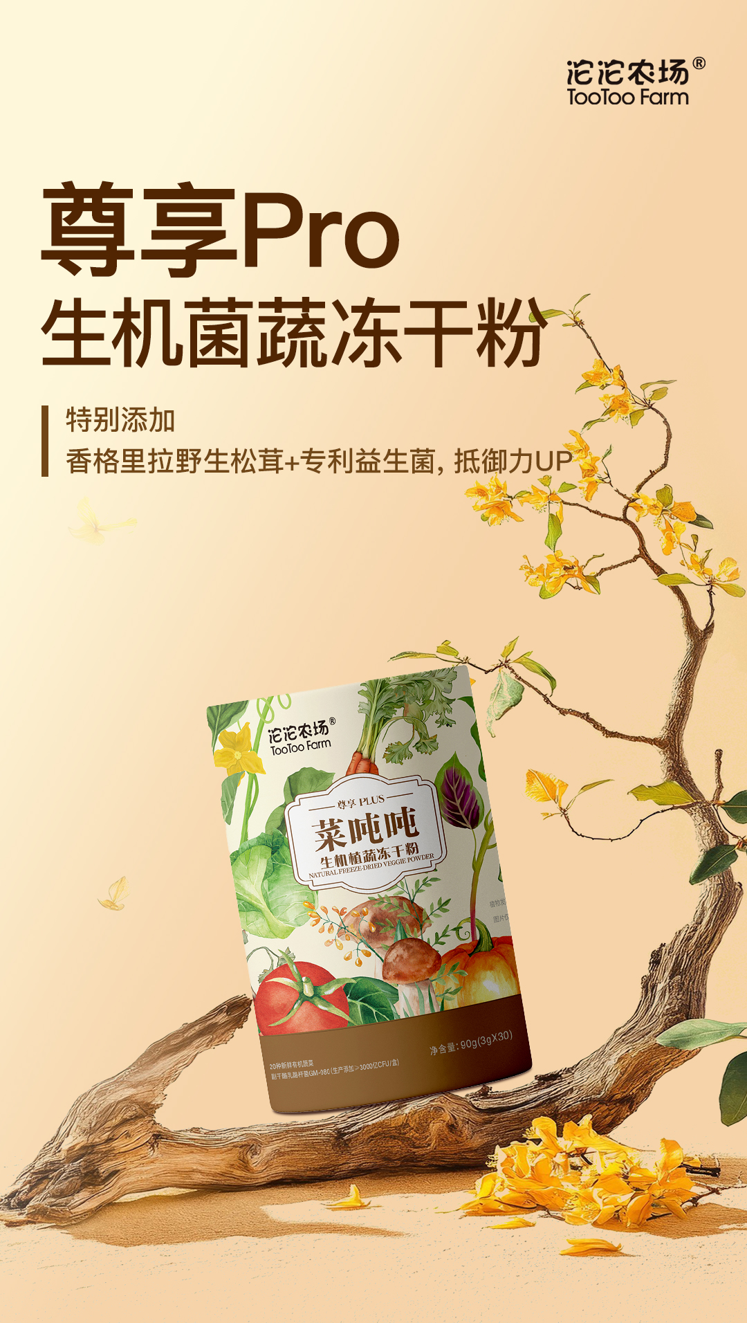 沱沱农场【新品】尊享PLUS 生机菌蔬冻干粉 3g*30条 营养冲饮果蔬汁