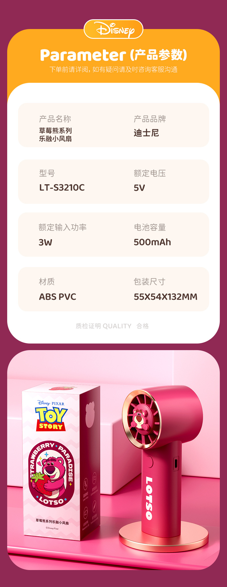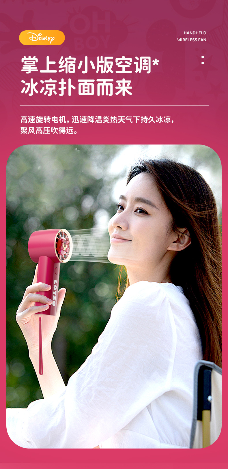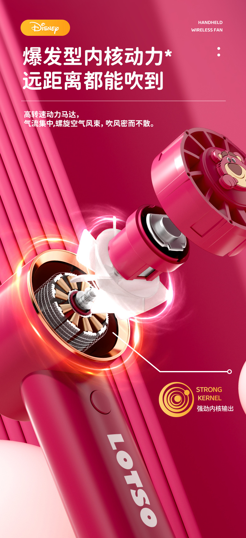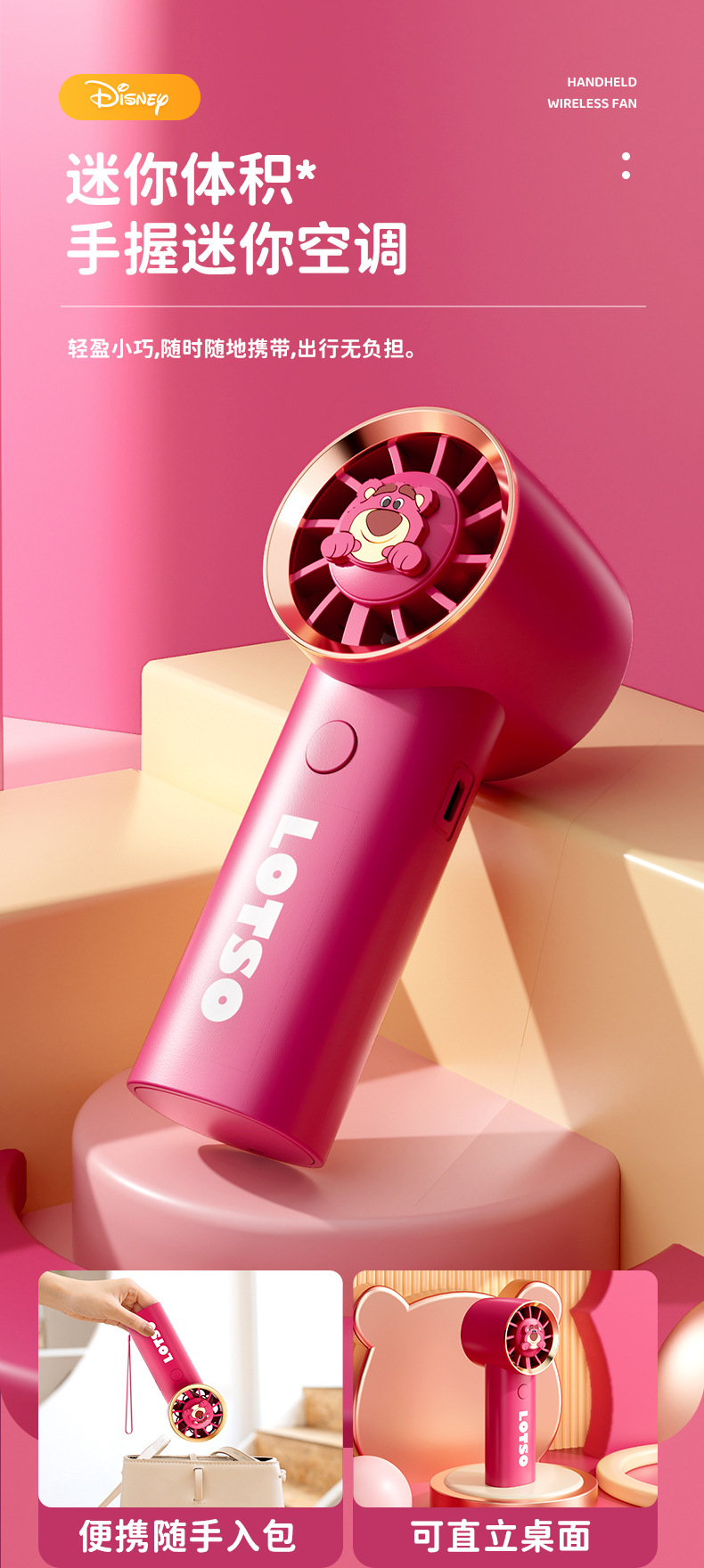 【夏日必备!迪士尼草莓熊手持风扇】USB充电,强劲内核动力,三档调节,低音低噪。小巧便携,随身携带,安心使用,大容量续航;宝宝爱不释手!