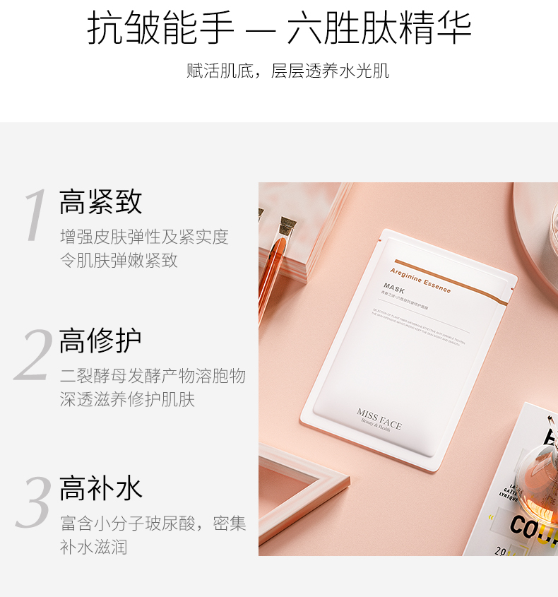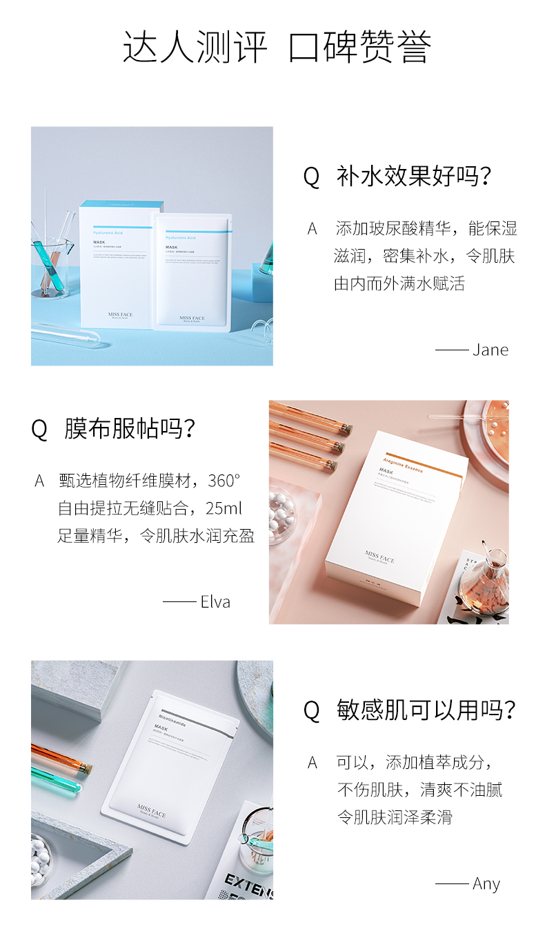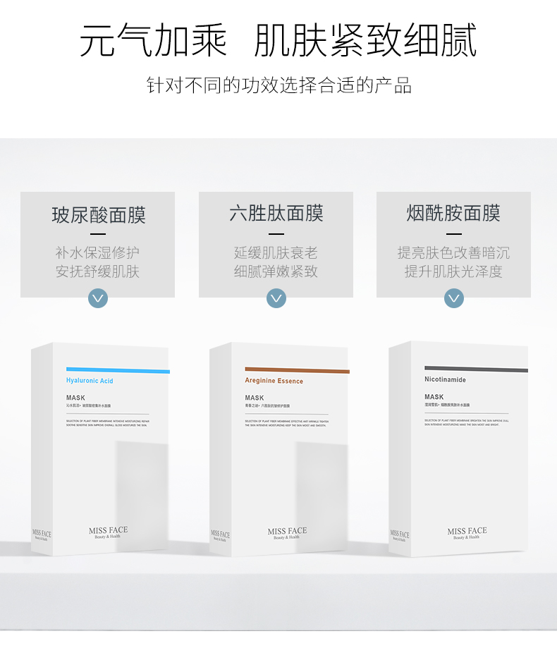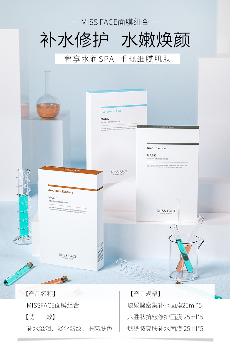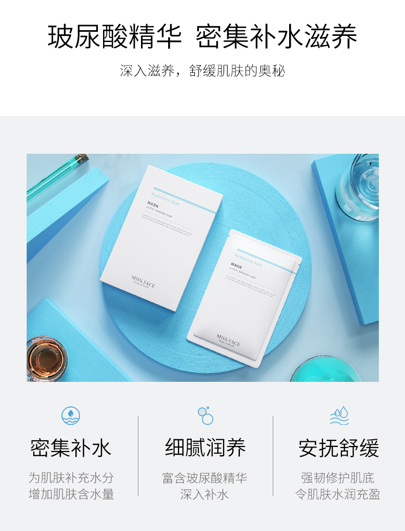 Miss face玻尿酸补水面膜保湿免洗烟酰胺面膜*5片