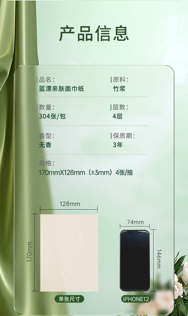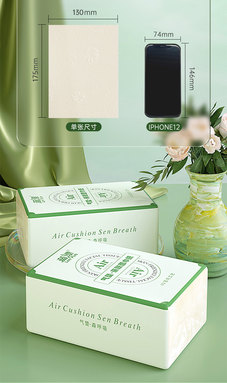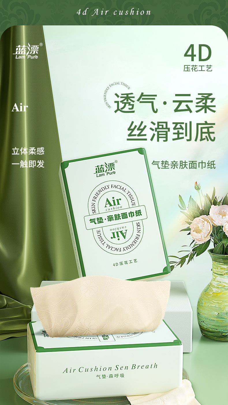 「颜值派!气垫亲肤柔巾纸」蓝漂本色抽纸(气垫森呼吸)居家日用卫生纸巾纸巾餐巾纸面巾纸抽清洁工具