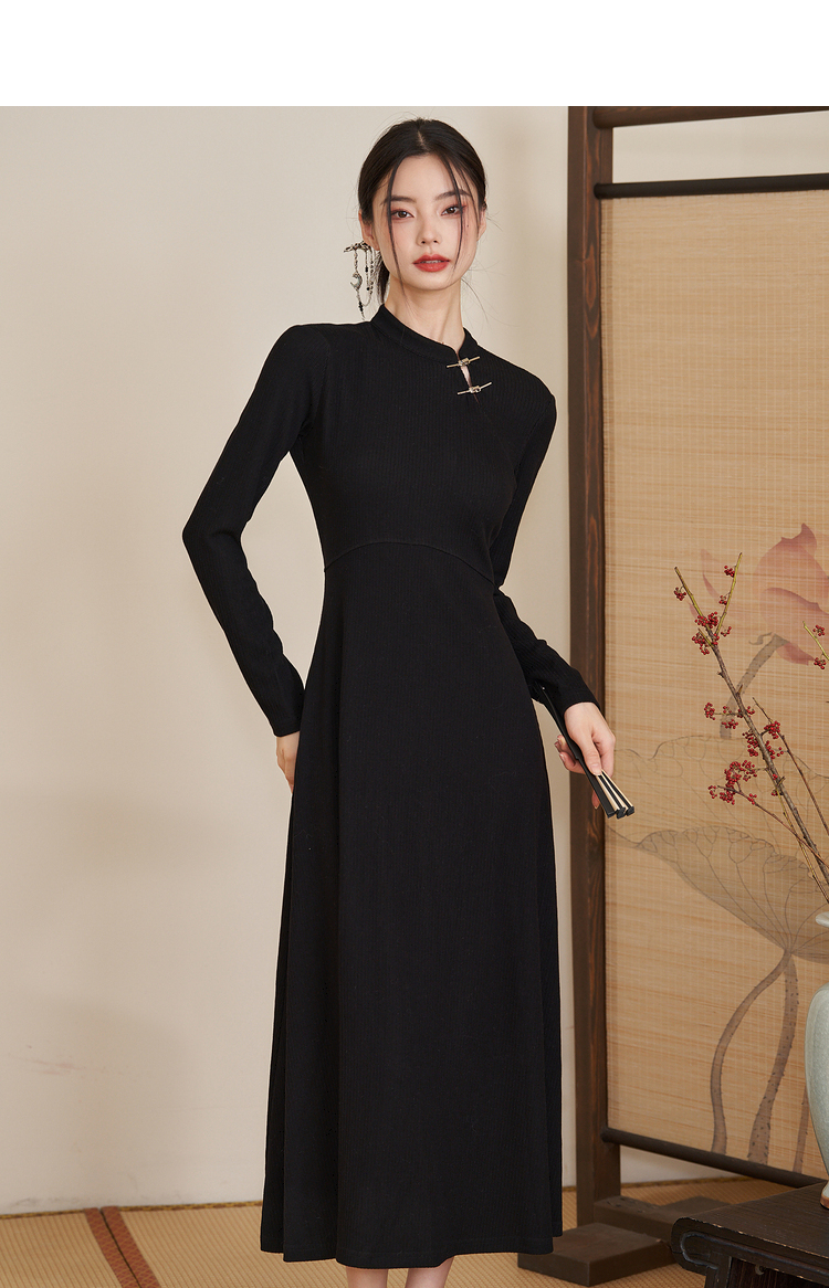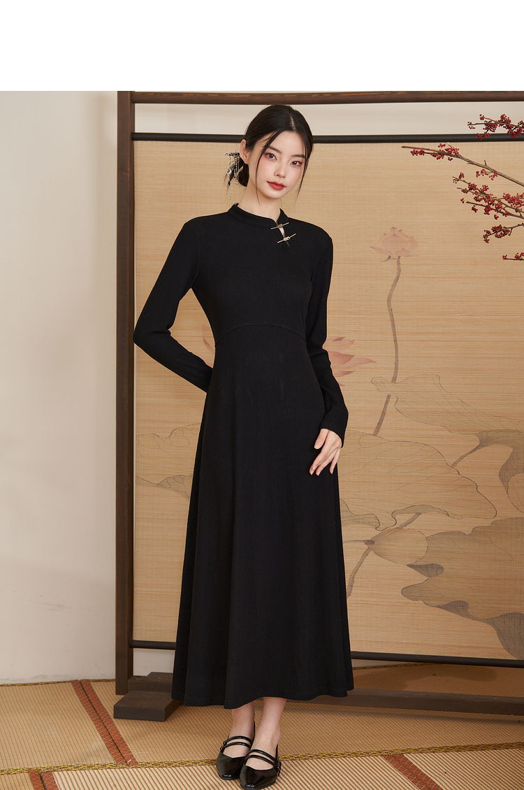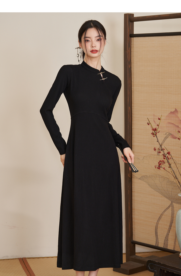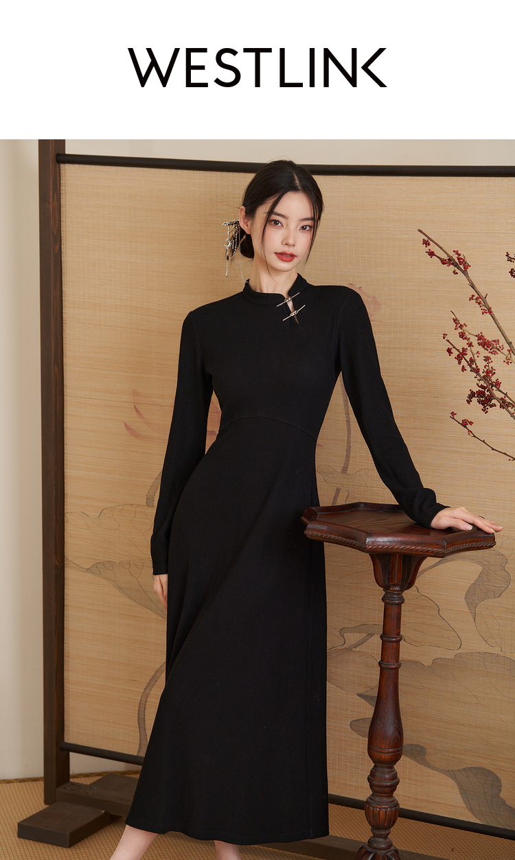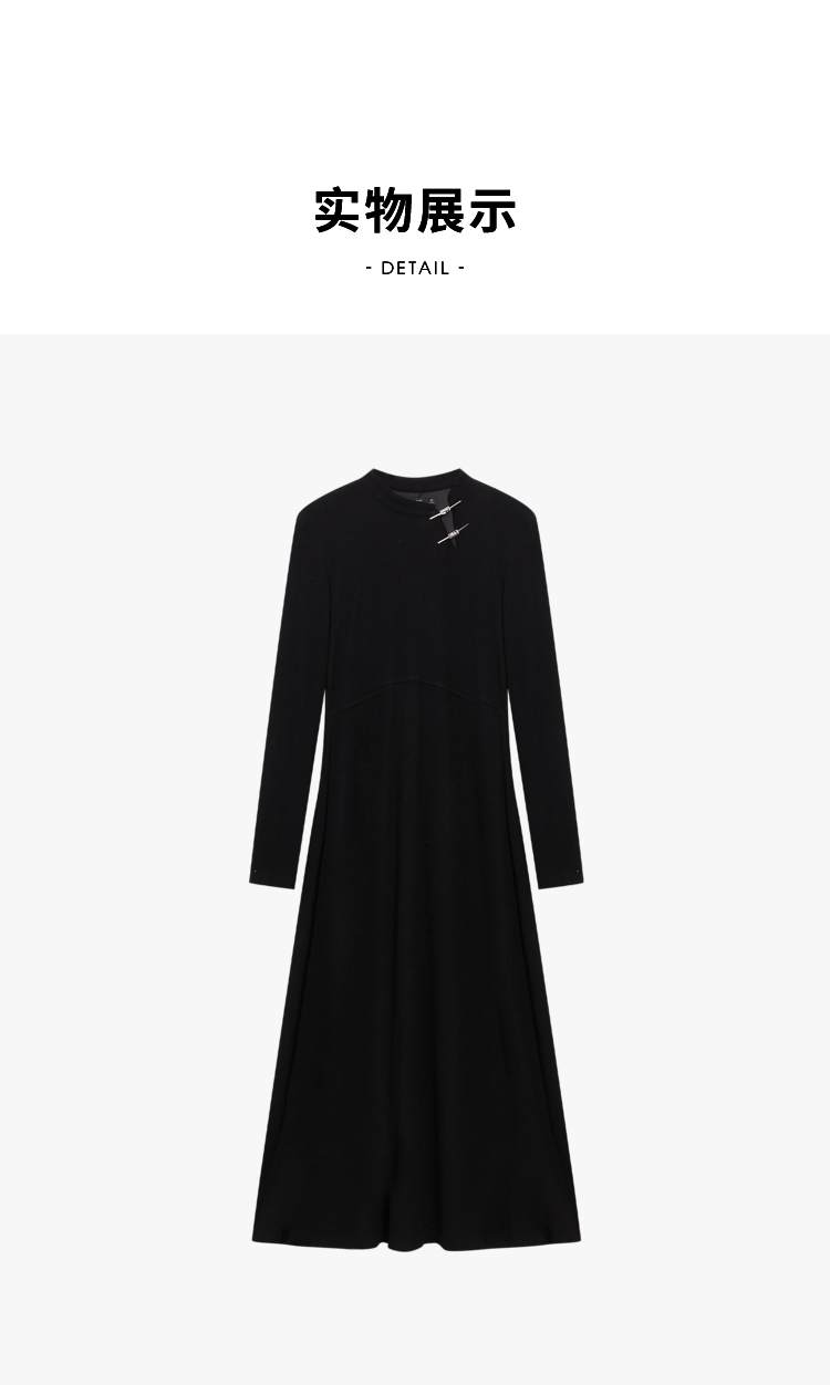 西遇法式气质长袖针织连衣裙女新款秋冬设计感简约长裙V2238916