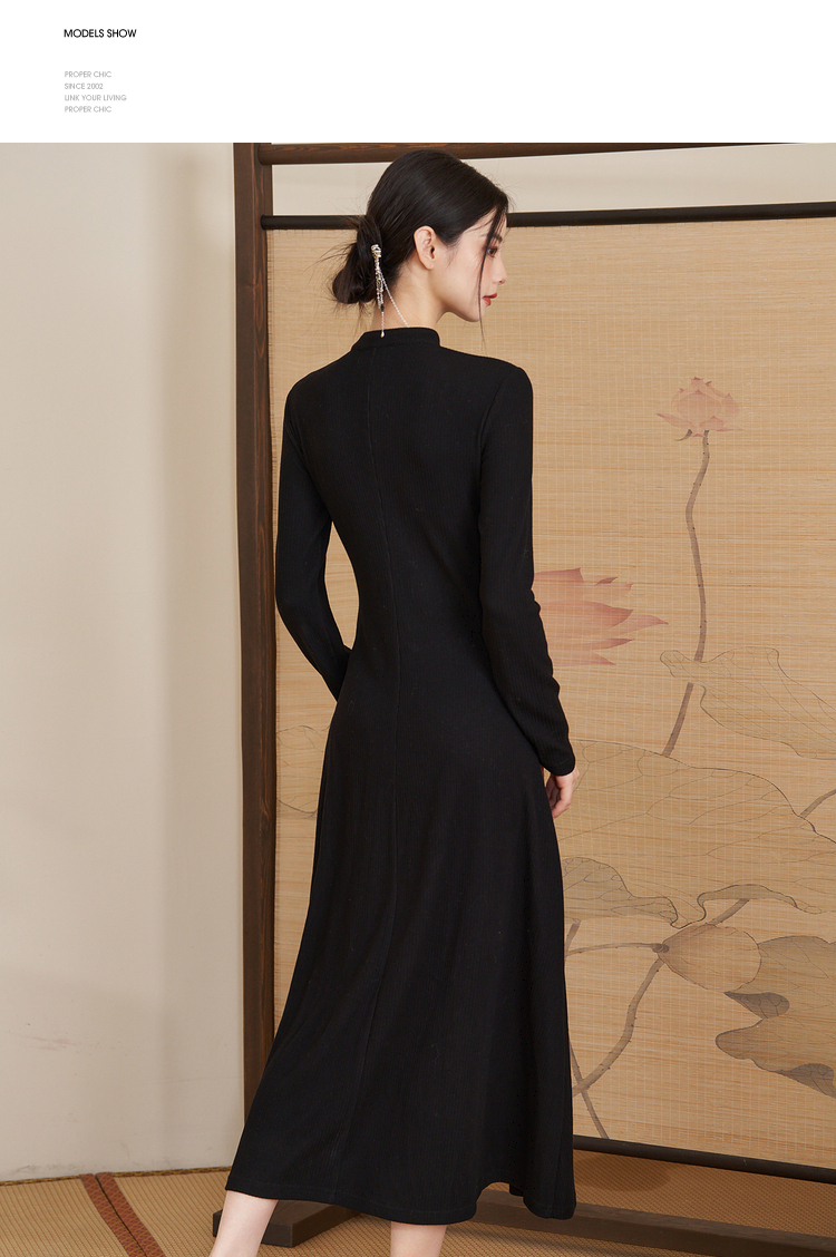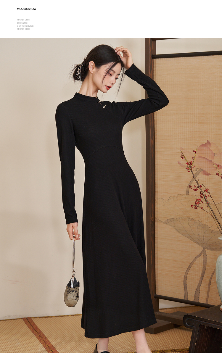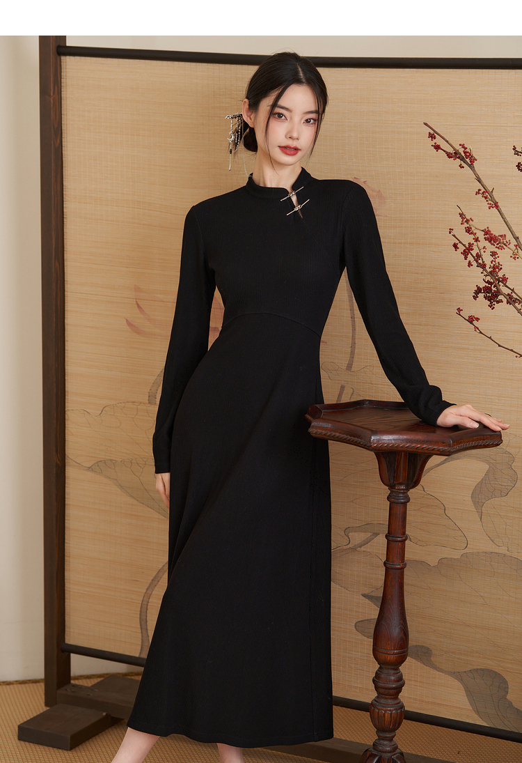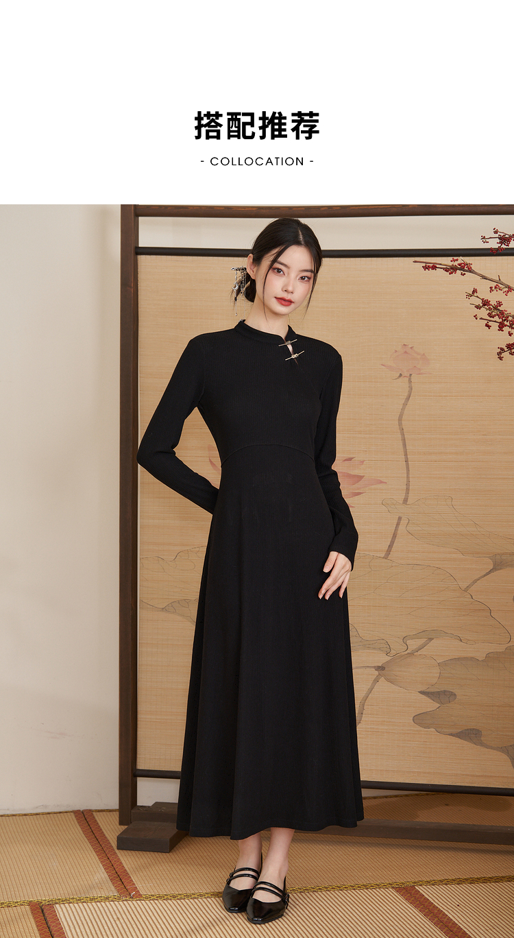 西遇法式气质长袖针织连衣裙女新款秋冬设计感简约长裙V2238916