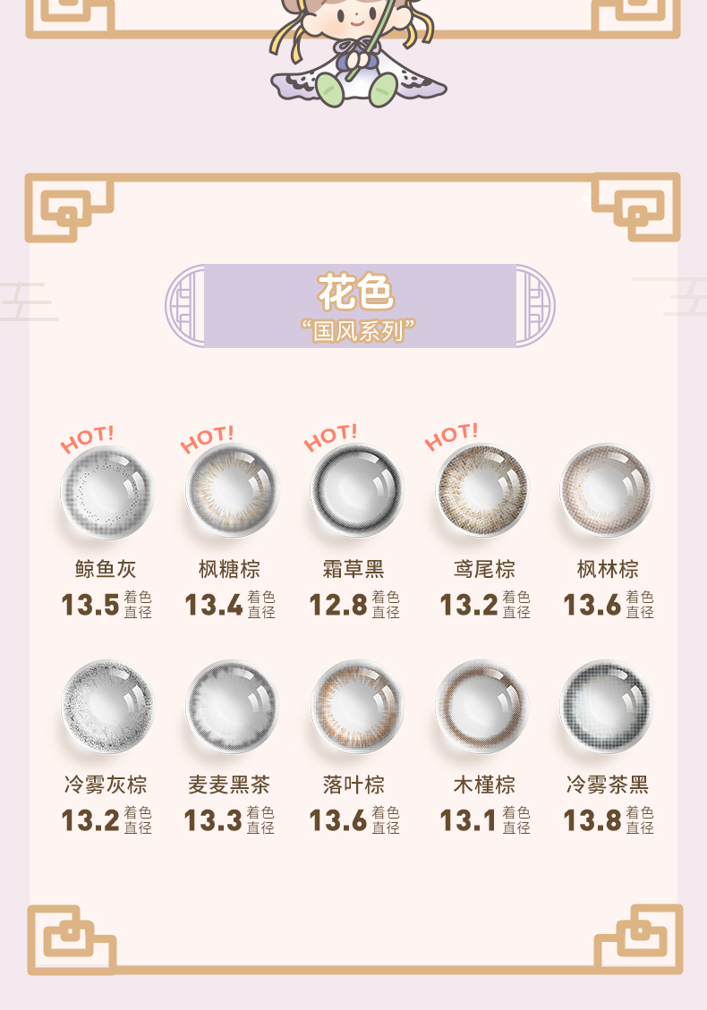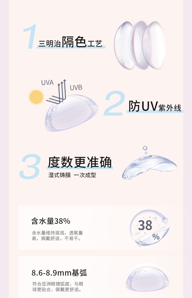 【宠粉A】59.7任选3副!系列弥生半年抛彩色隐形眼镜非日抛 1盒2片装