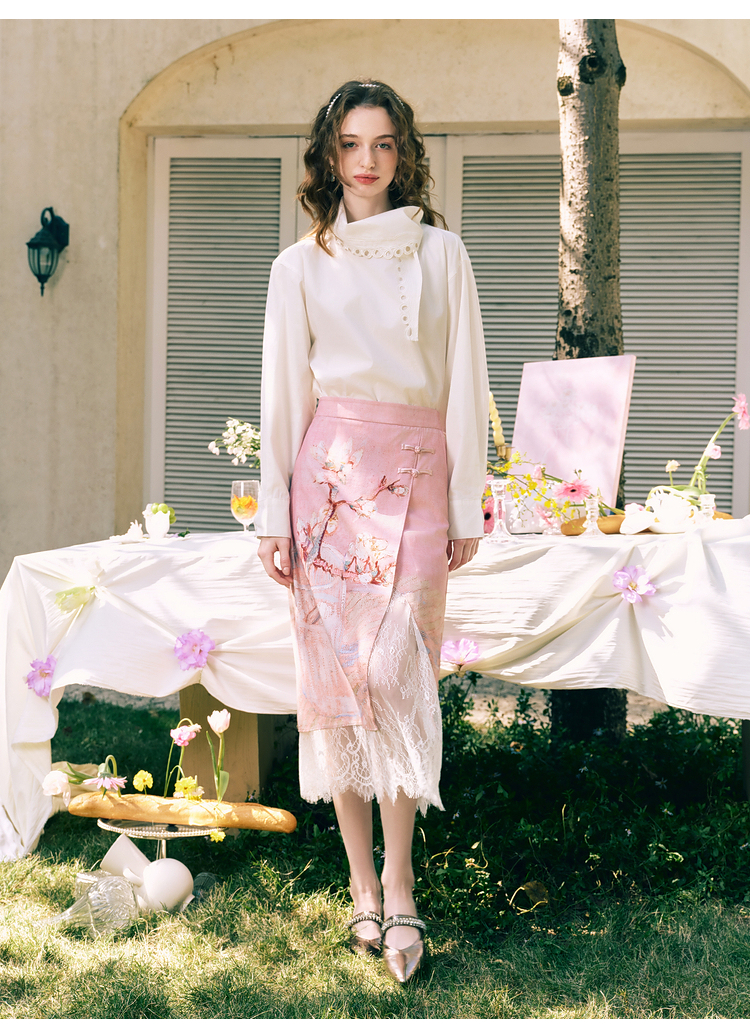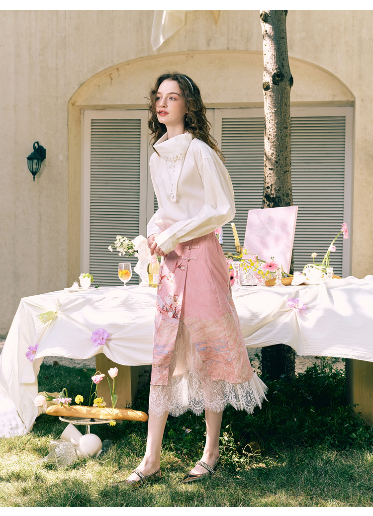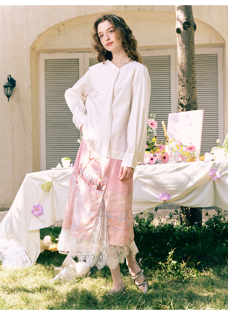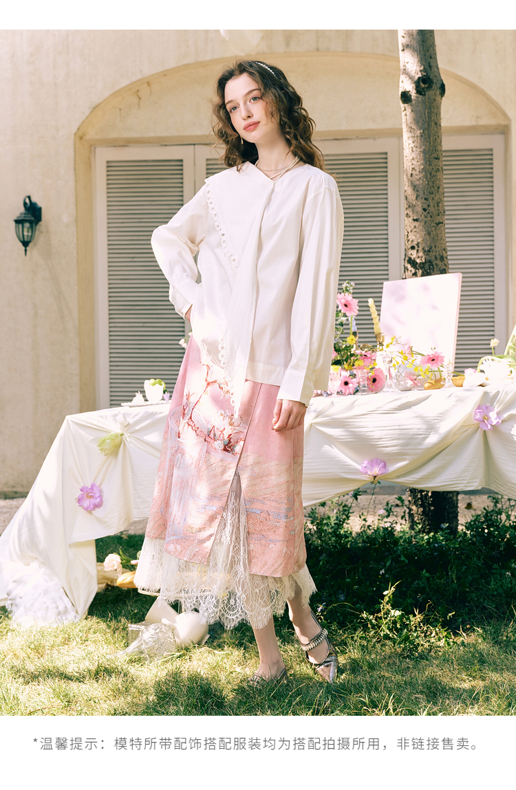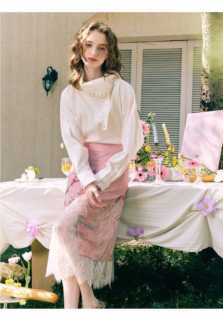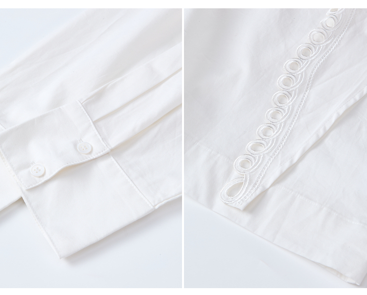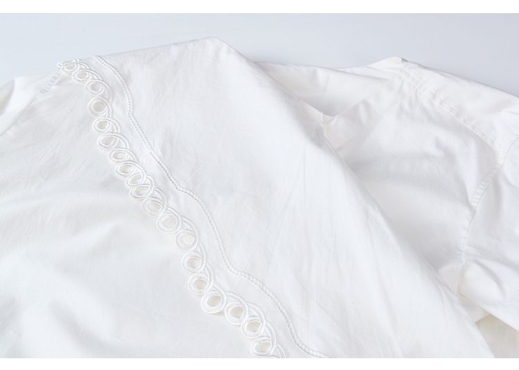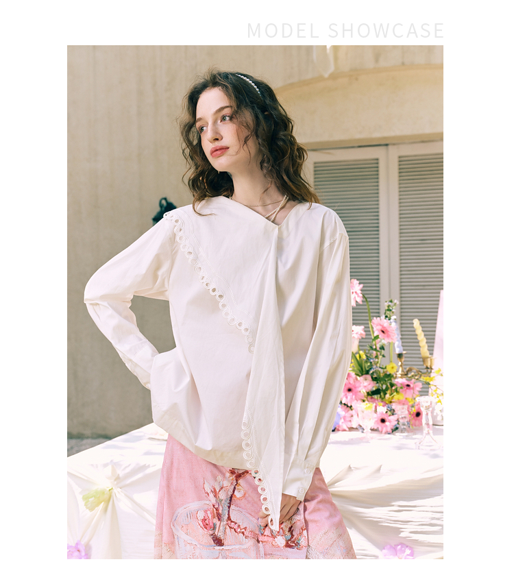 两三事 云溪新雪 2025冬季新款小清新镂空花边围巾领长袖衬衫女