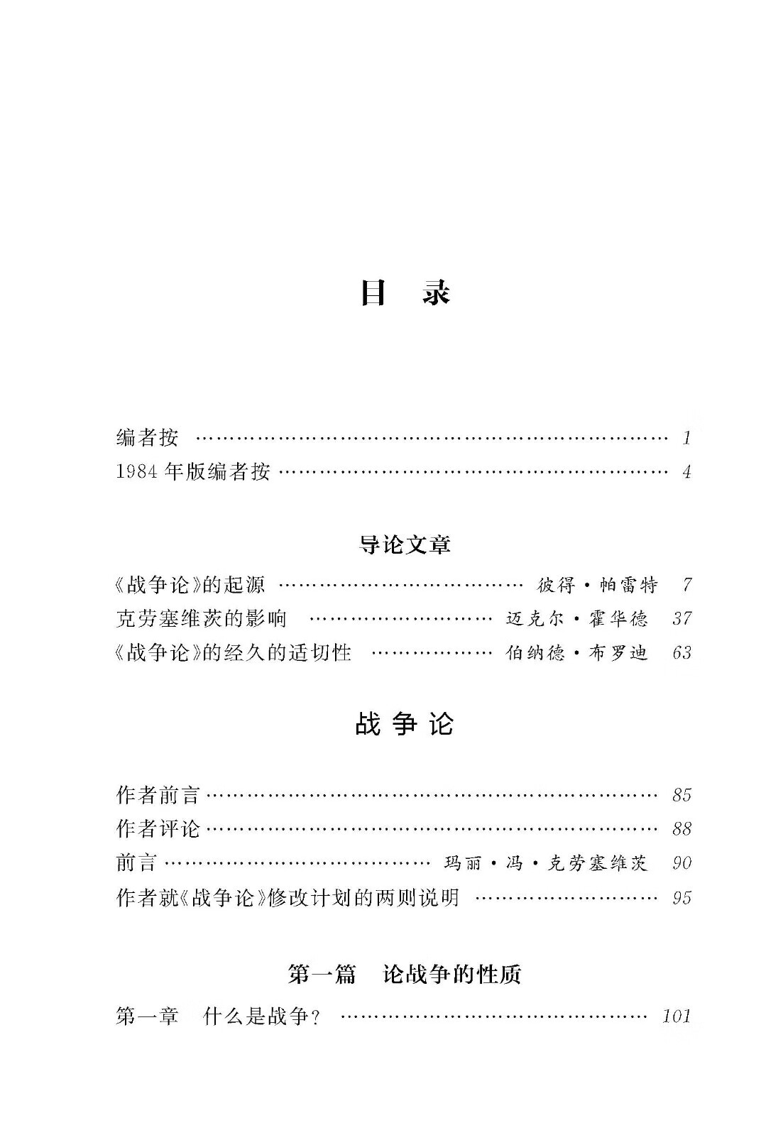 《战争论》共八篇一百二十四章,分别论述了战争的性质、战争理论、战略、战斗、军队、防御、进攻和战争规划。全书系统总结了战争经验,在战争的概然性、战争与政治的关系、精神因素的作用、民众战争、集中兵力等许多方面均有精辟论述,被誉为西方近代军事理论的经典之作。作者卡尔•冯•克劳塞维茨也因此被视为西方近代军事理论的鼻祖。