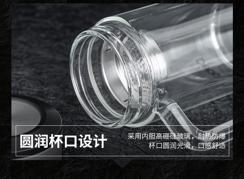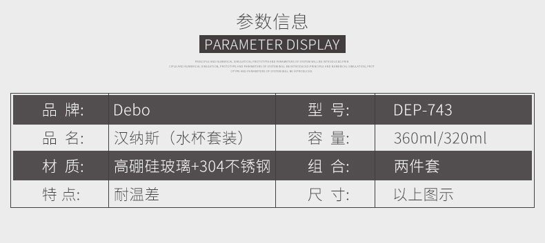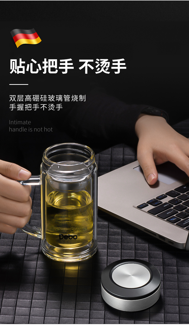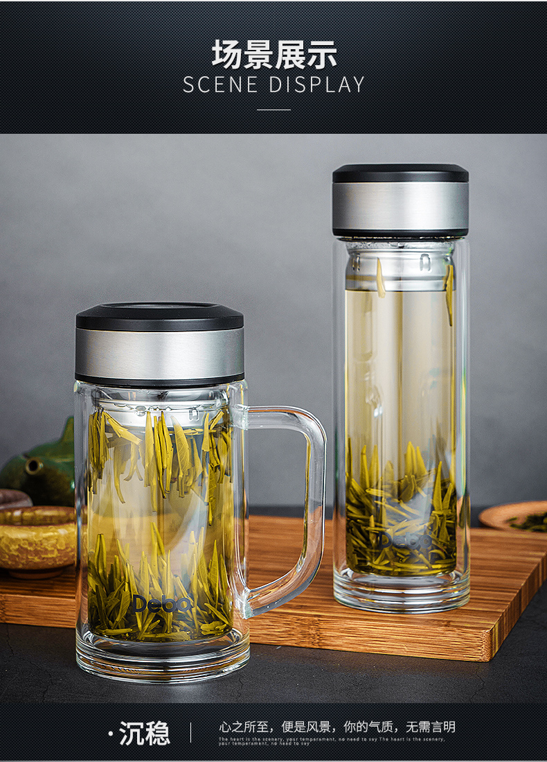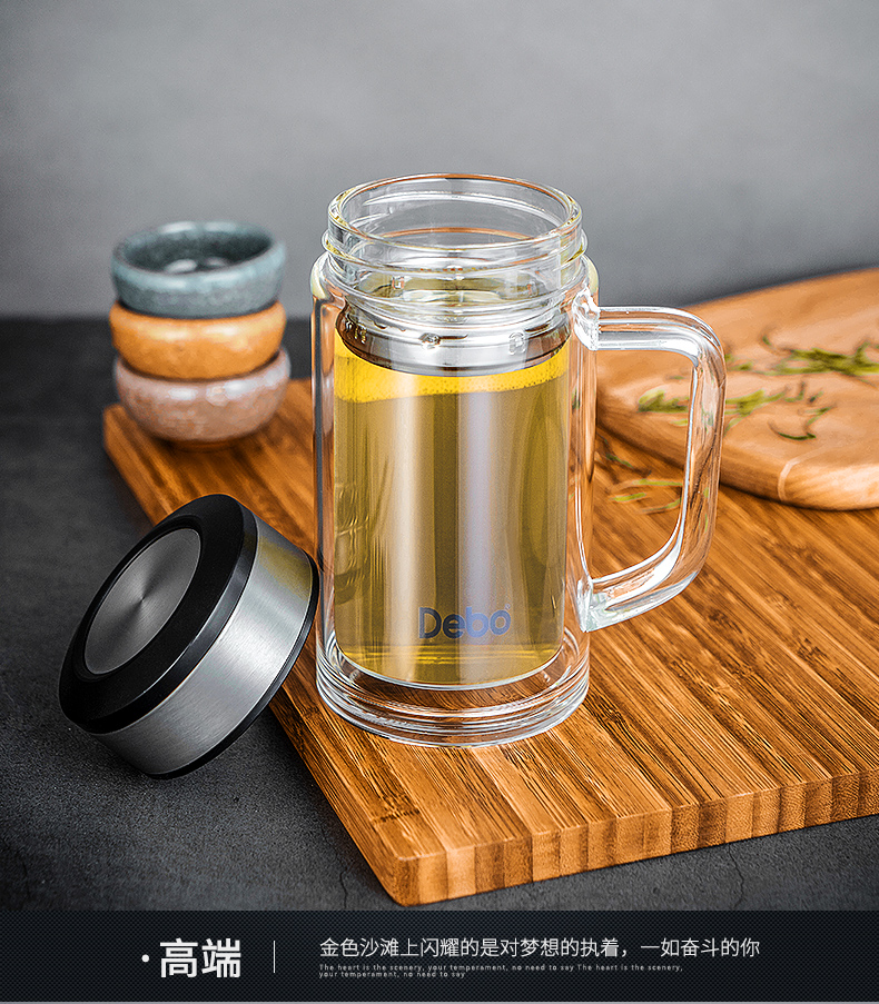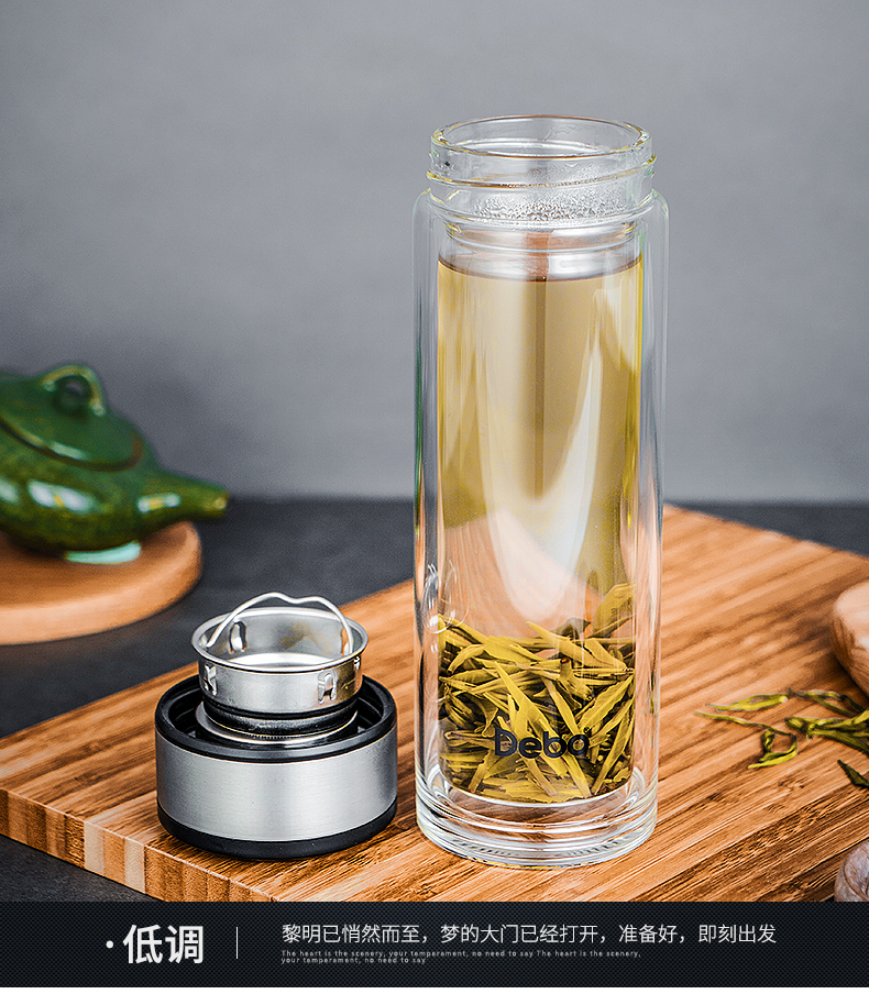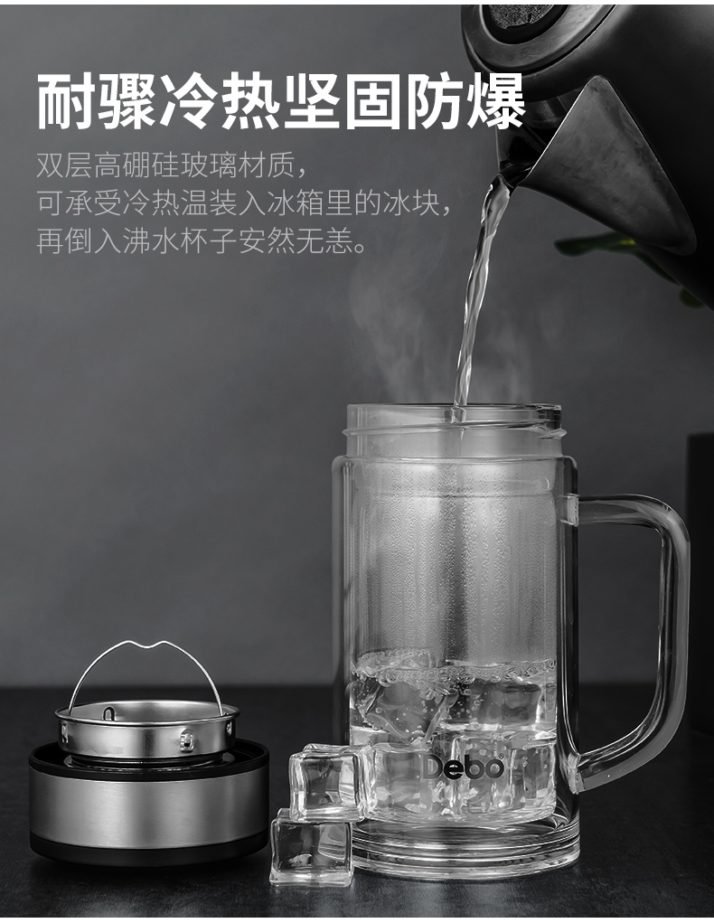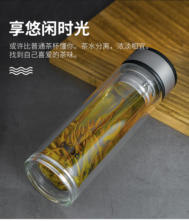 Debo德铂汉纳斯高硼硅玻璃套装杯304不锈钢过滤茶漏茶杯办公水杯320ml+360ml两件套