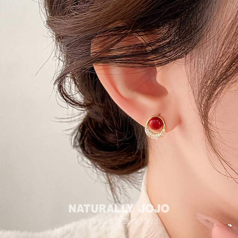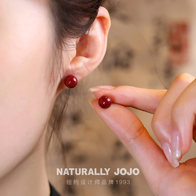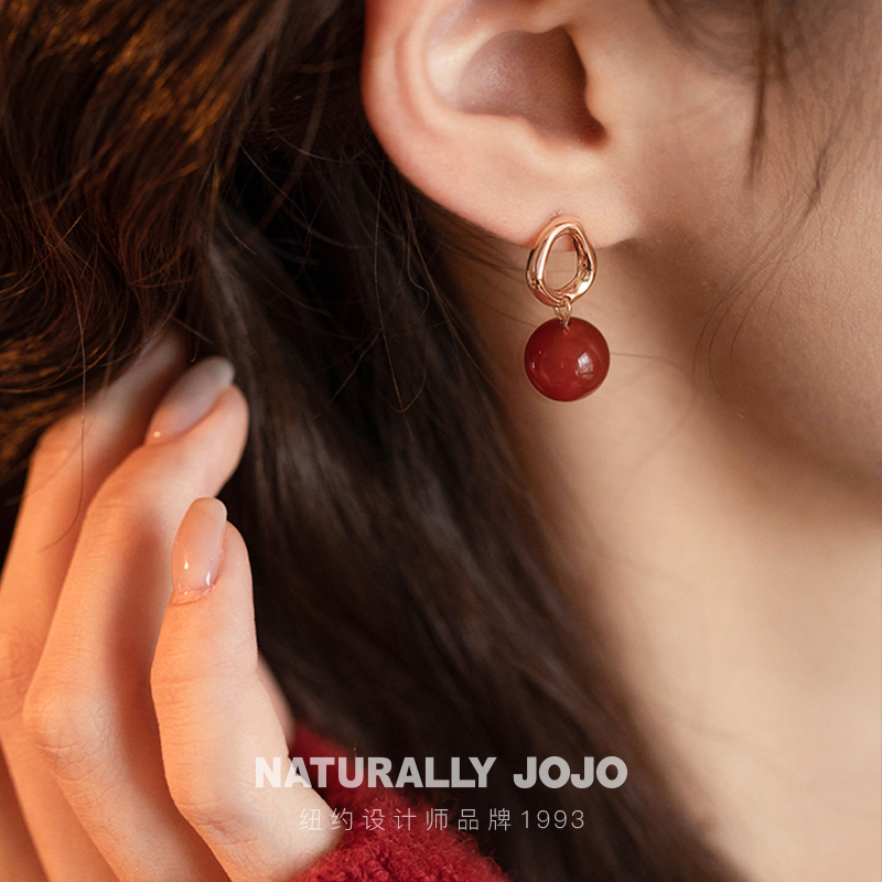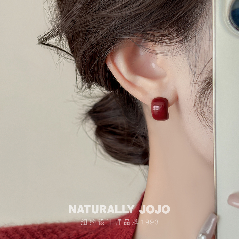 JOJO-SC064B-E-AR复古红豆安可拉红色气质耳饰