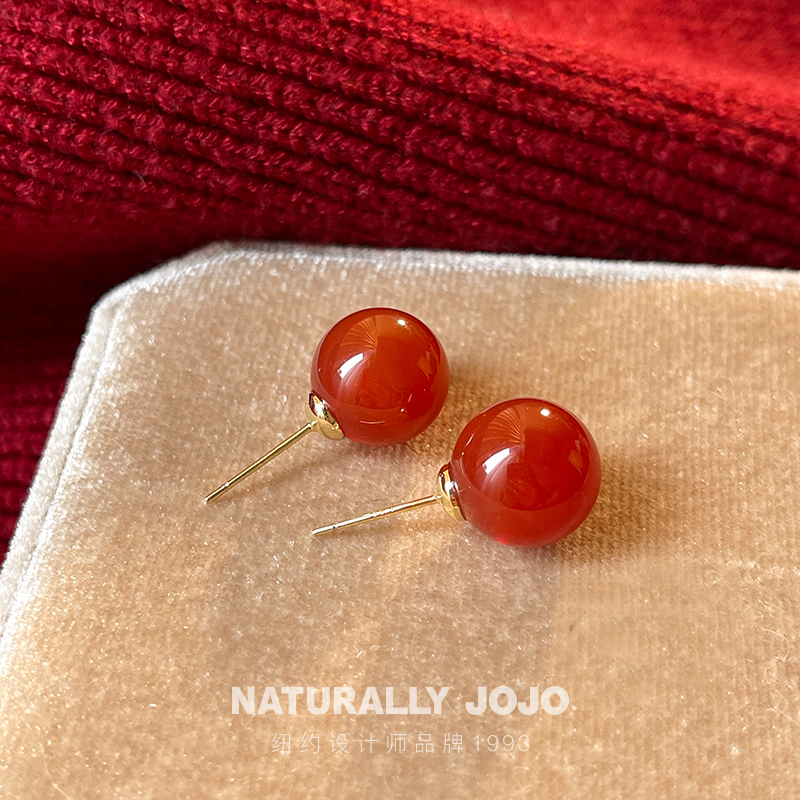 JOJO-SA061-E-CK天然红玛瑙红色耳环