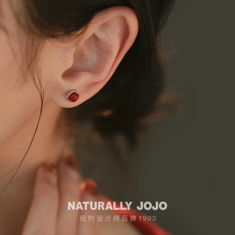 JOJO-SC136-E-CRC925银针国风天然红玛瑙耳钉