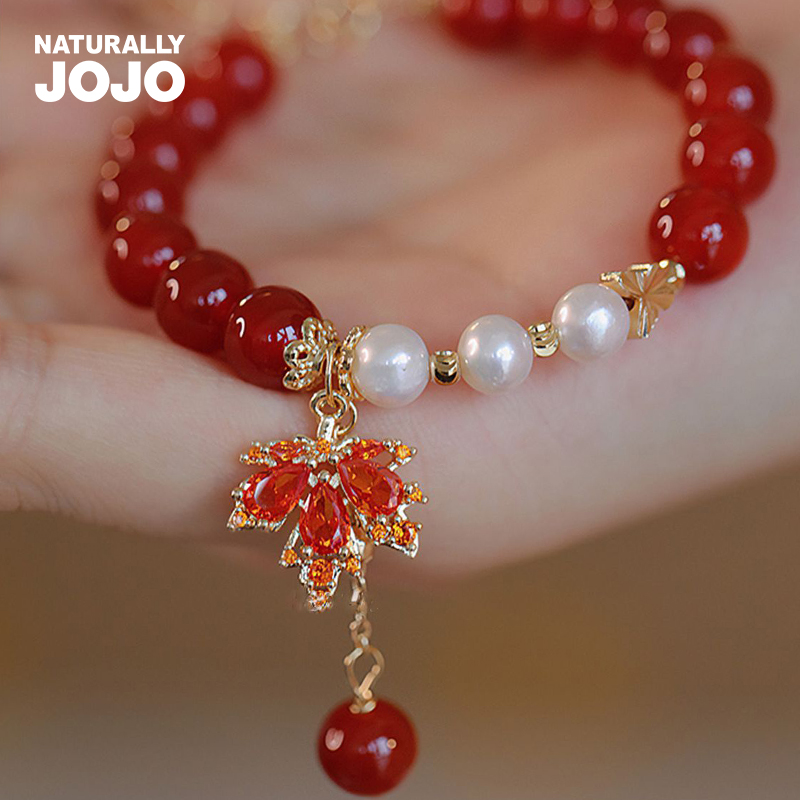 JOJO-JA121-B-CK红玛瑙枫叶淡水珍珠手链