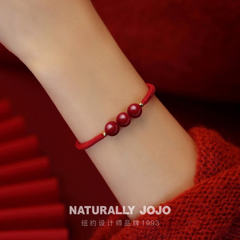 JOJO-SC140B-B-CR紫金砂三珠朱砂手工编织红绳手链