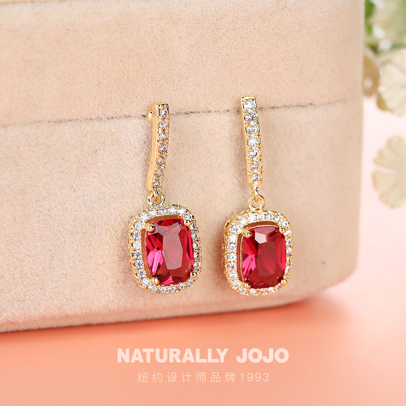 JOJO-J1247-E-CKPS925银针新款长条玫红锆石耳环