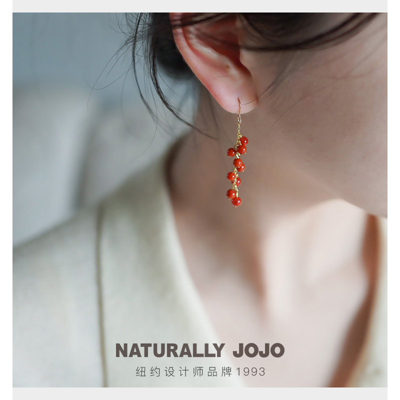 JOJO-J1464-E-CK红玛瑙串925银耳钩流苏耳饰