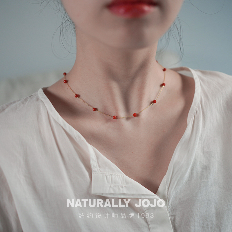 JOJO-J1503-N-YKS925纯银十三颗红玛瑙锁骨链