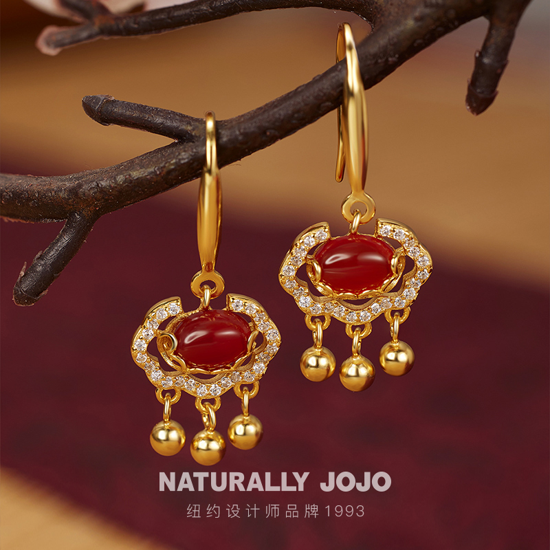 JOJO-JC167-E-YKS925纯银红玛瑙耳饰长命锁