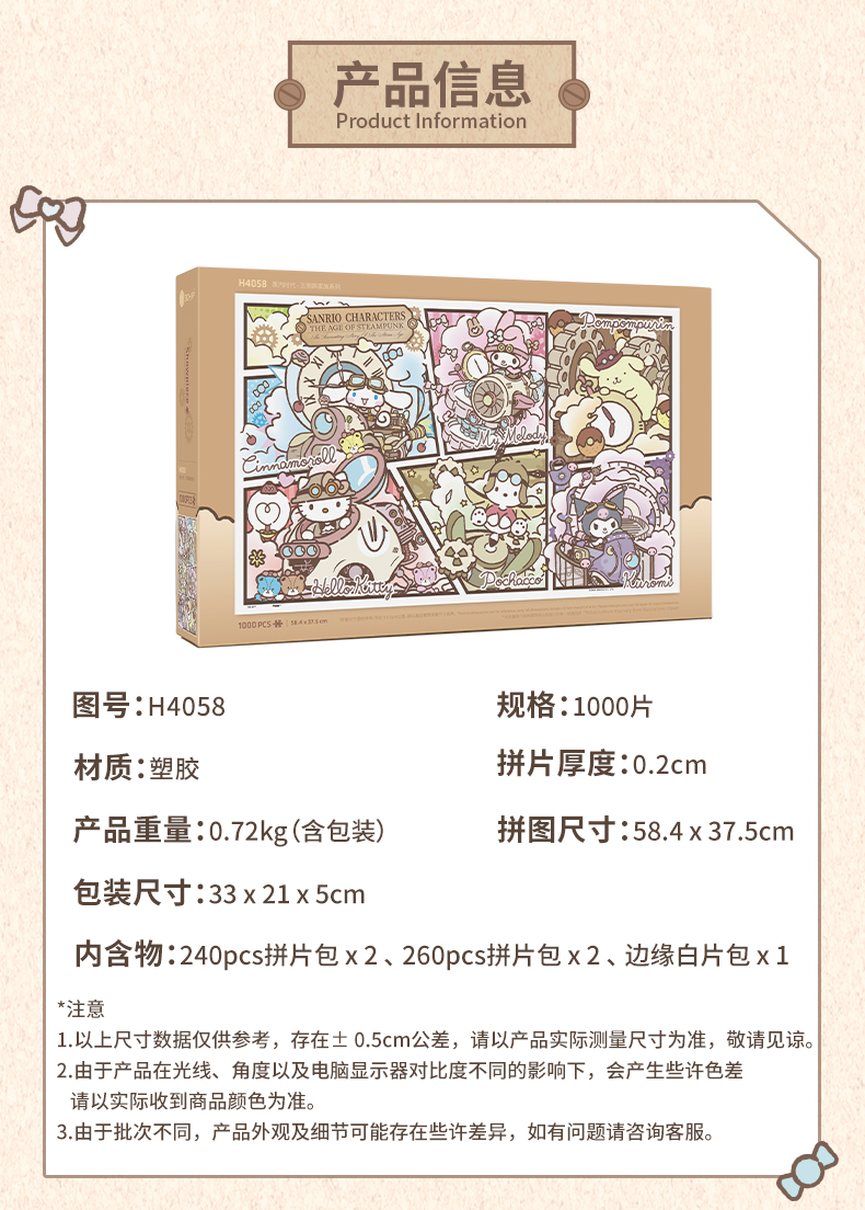 1000片 平面塑料拼图 H4058 蒸汽时代-三丽鸥家族系列