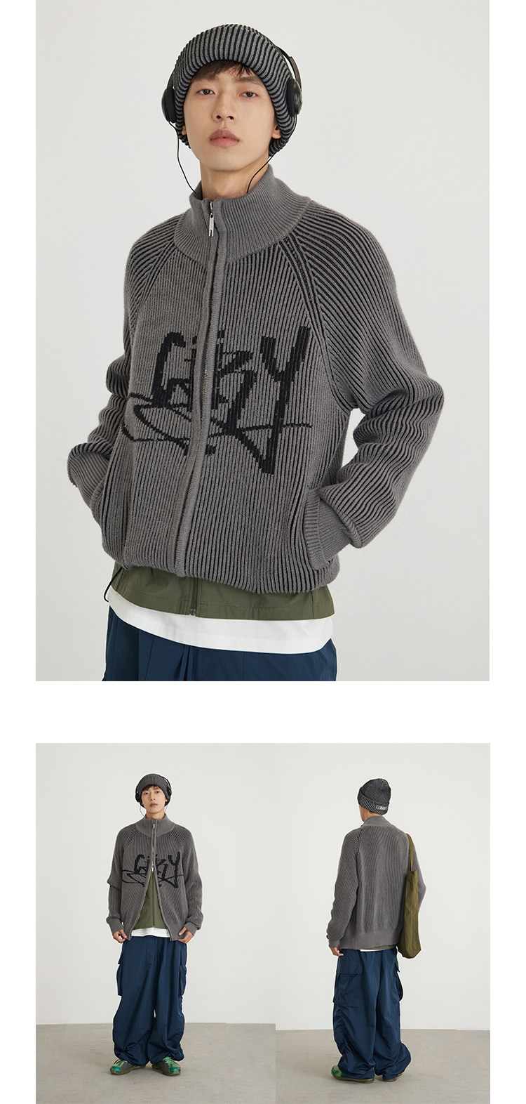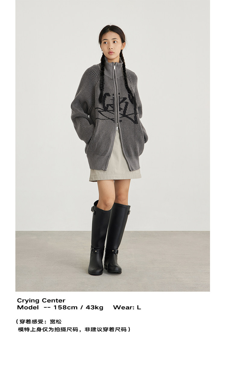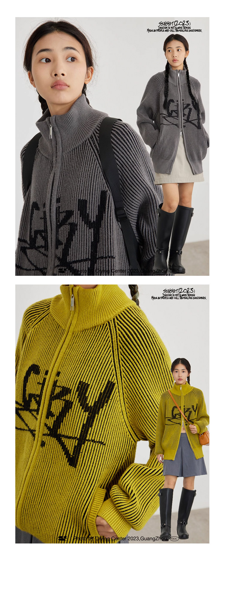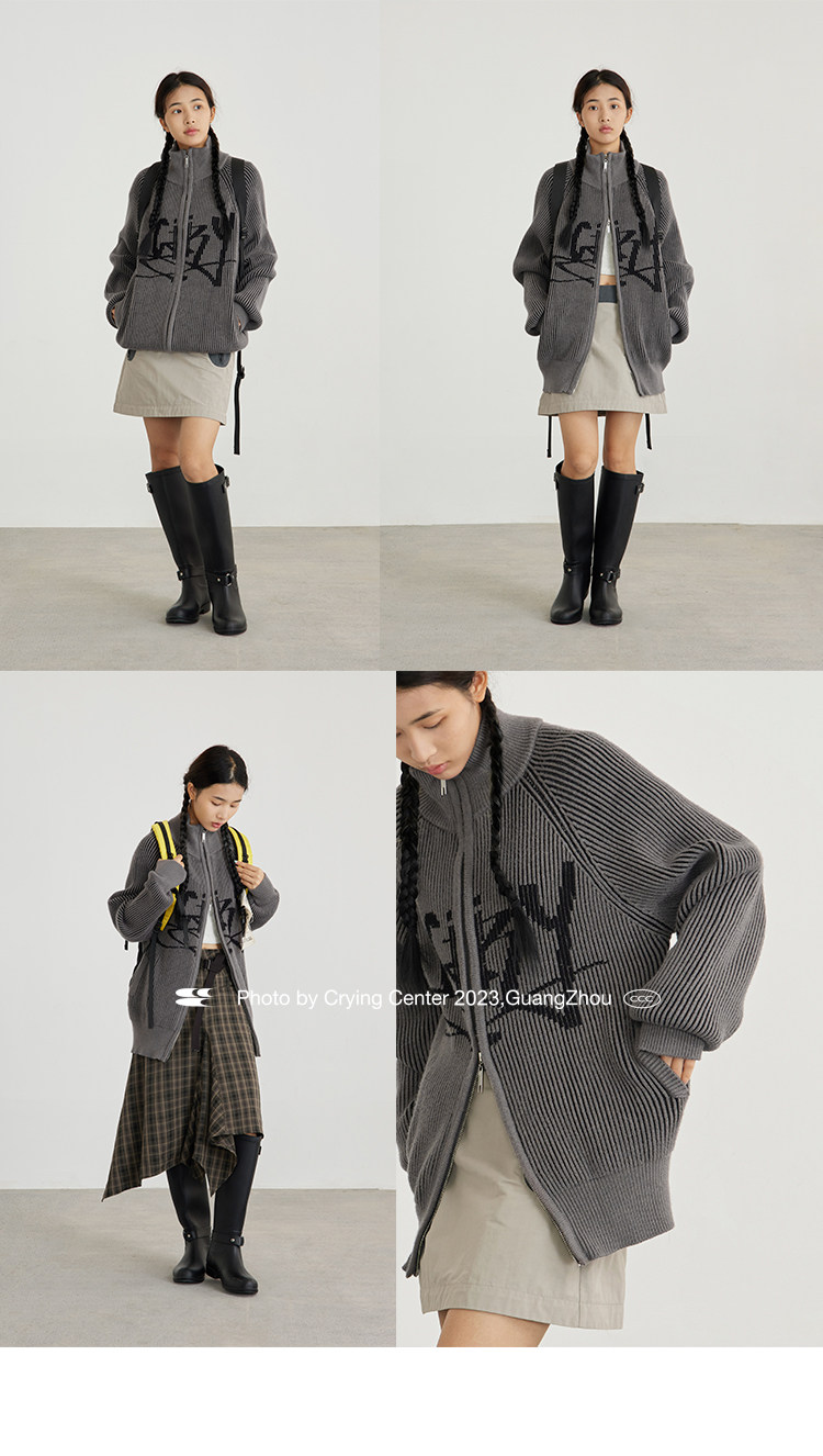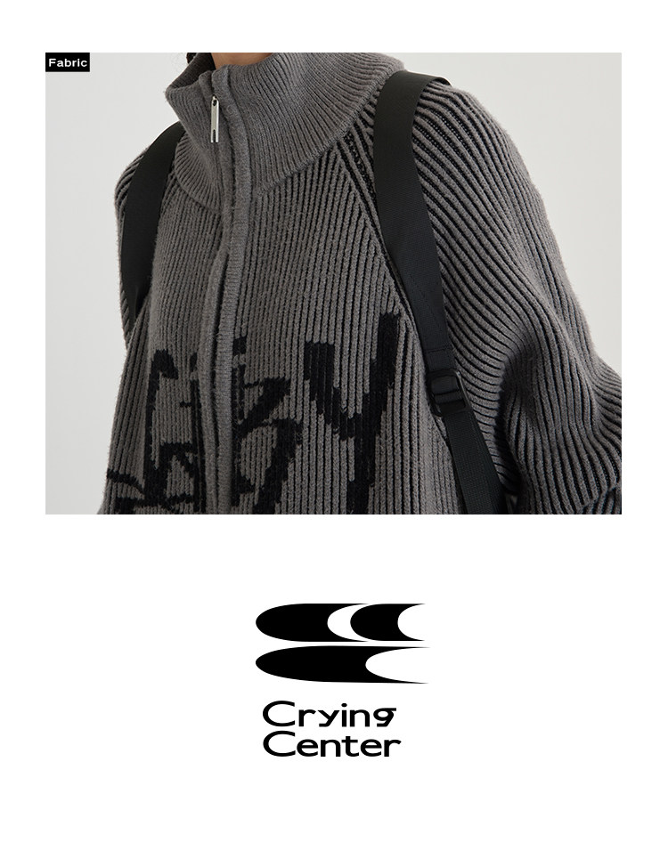 CryingCenter手写体坑条纹理双开头针织毛衣外套休闲日常通勤保暖