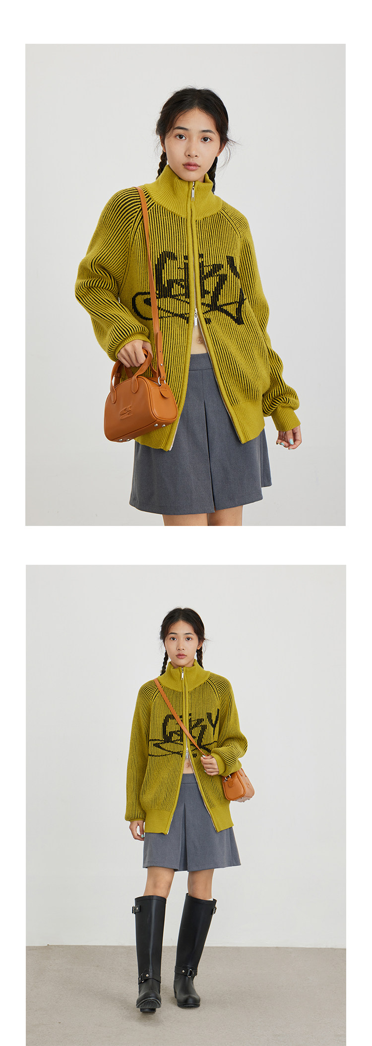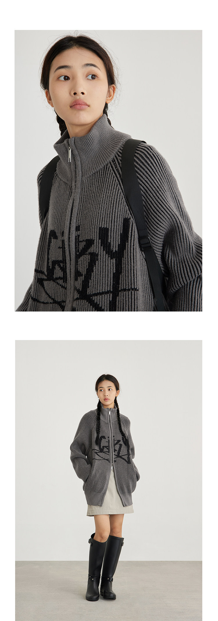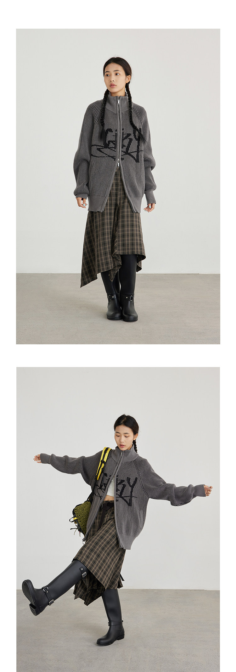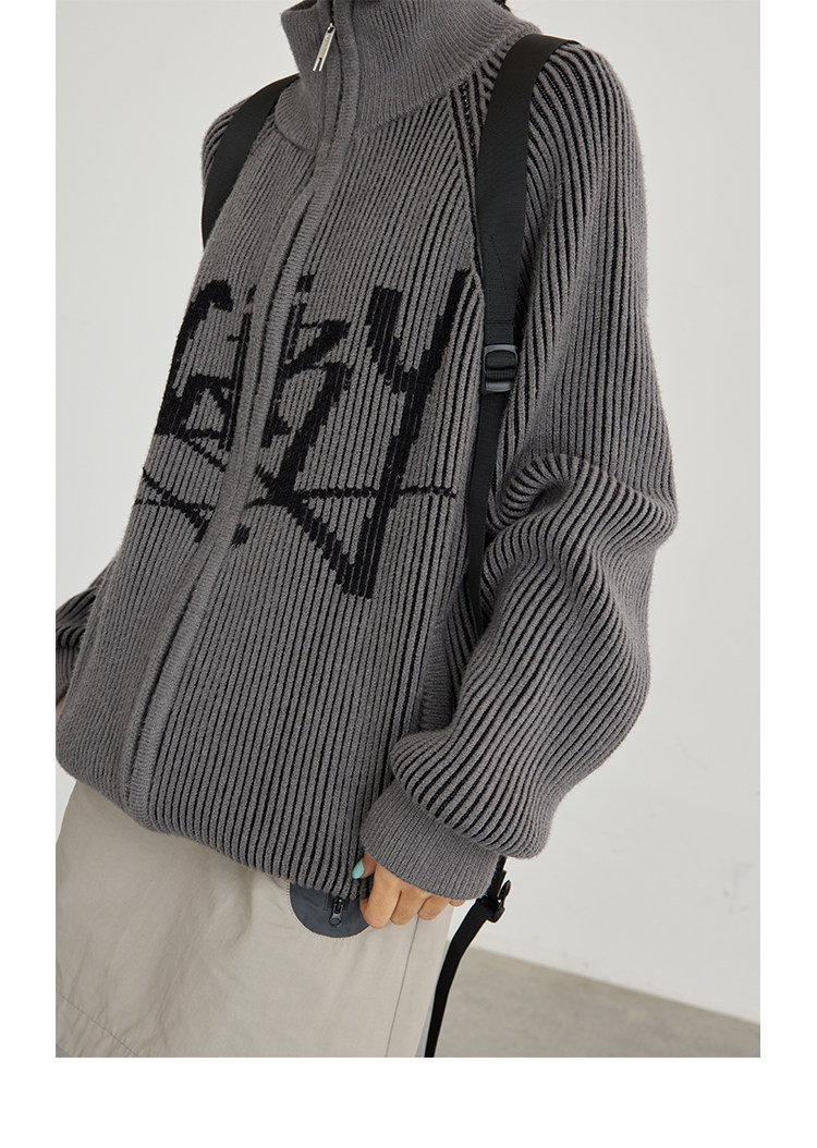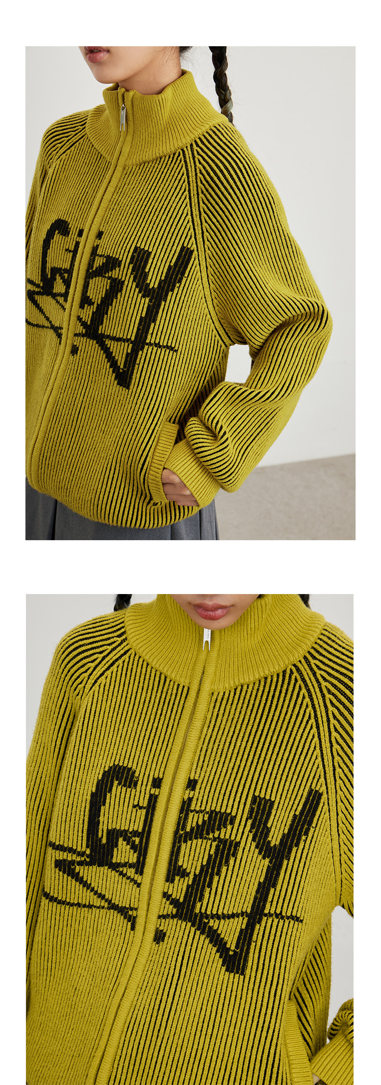 CryingCenter手写体坑条纹理双开头针织毛衣外套休闲日常通勤保暖