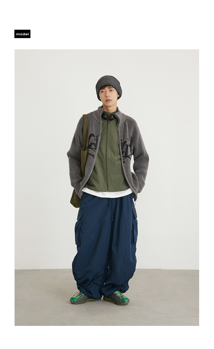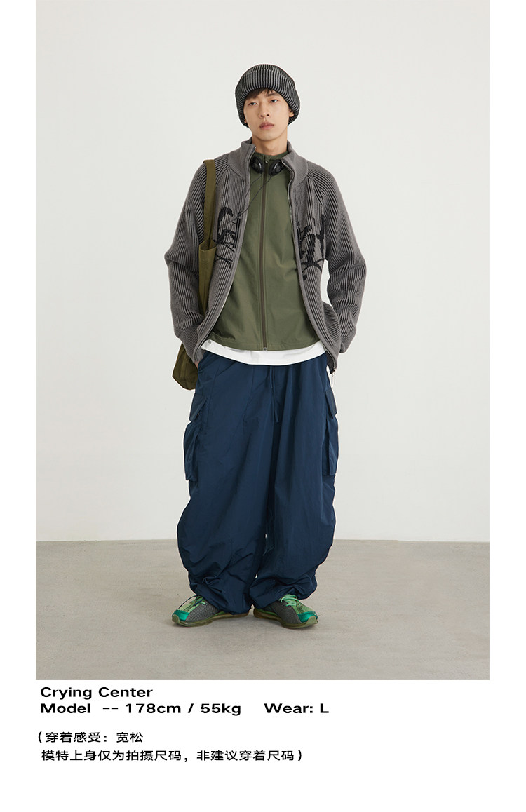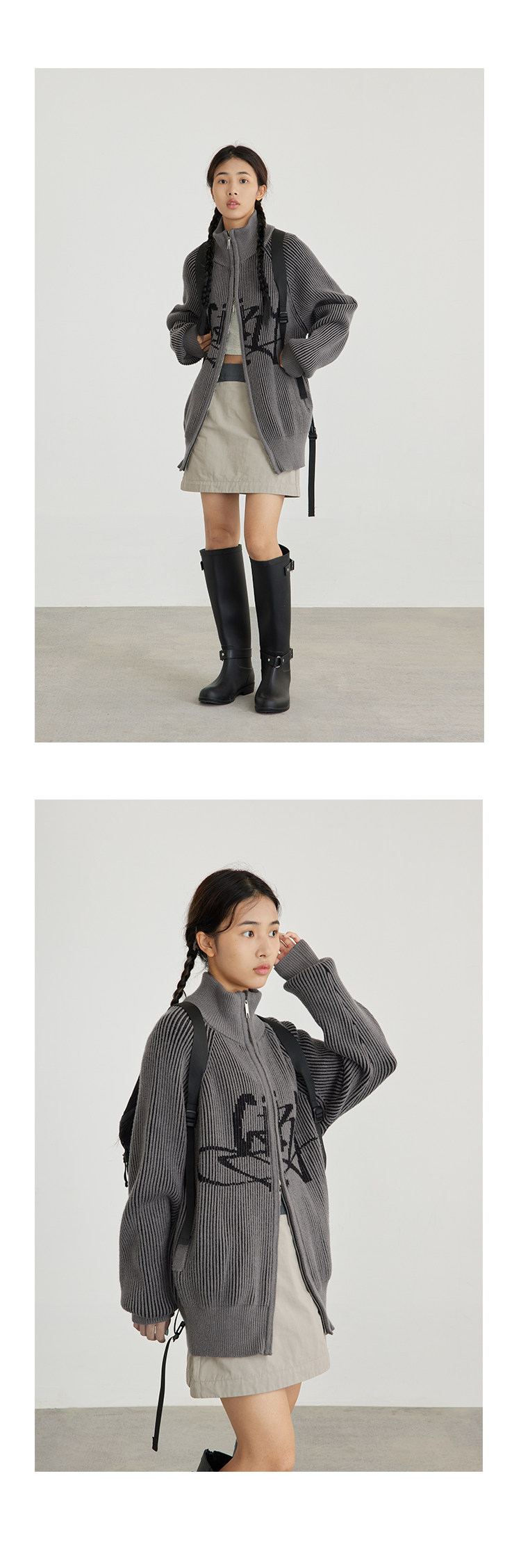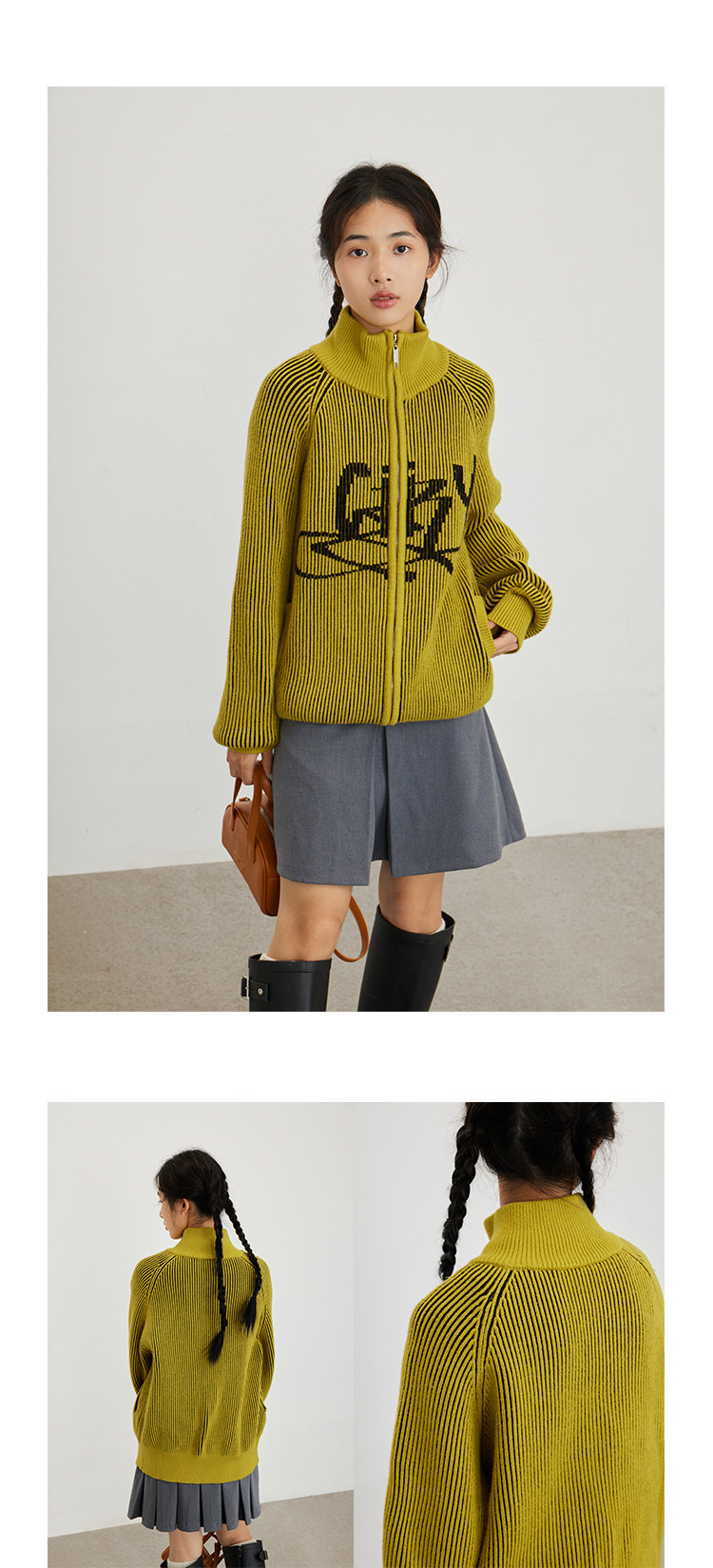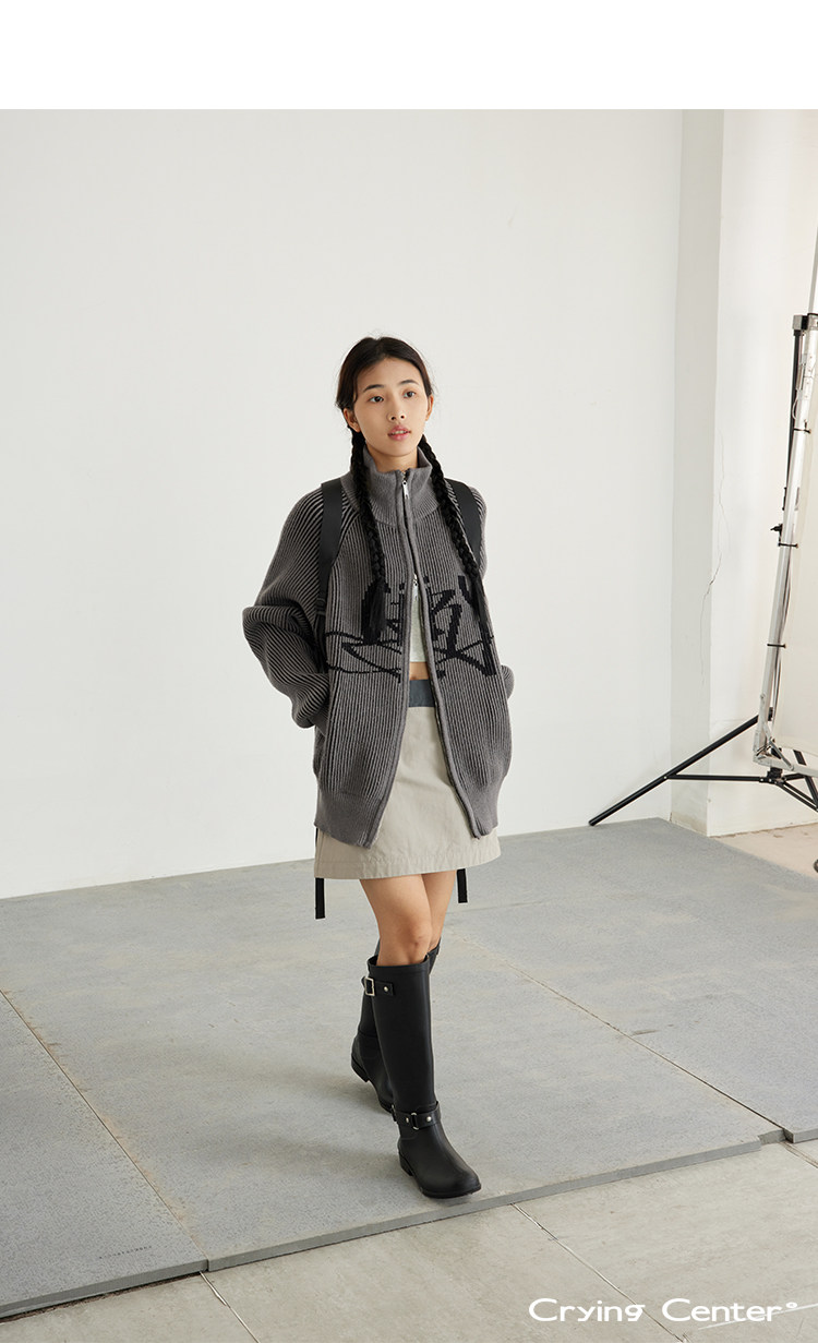 CryingCenter手写体坑条纹理双开头针织毛衣外套休闲日常通勤保暖