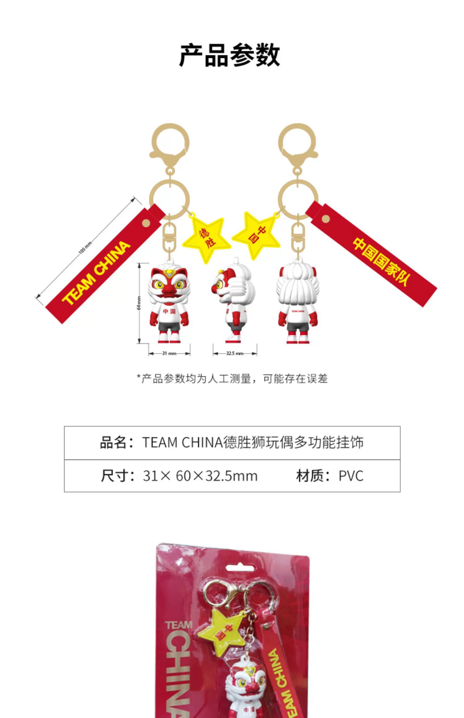 TEAM CHINA德胜狮玩偶多功能挂饰