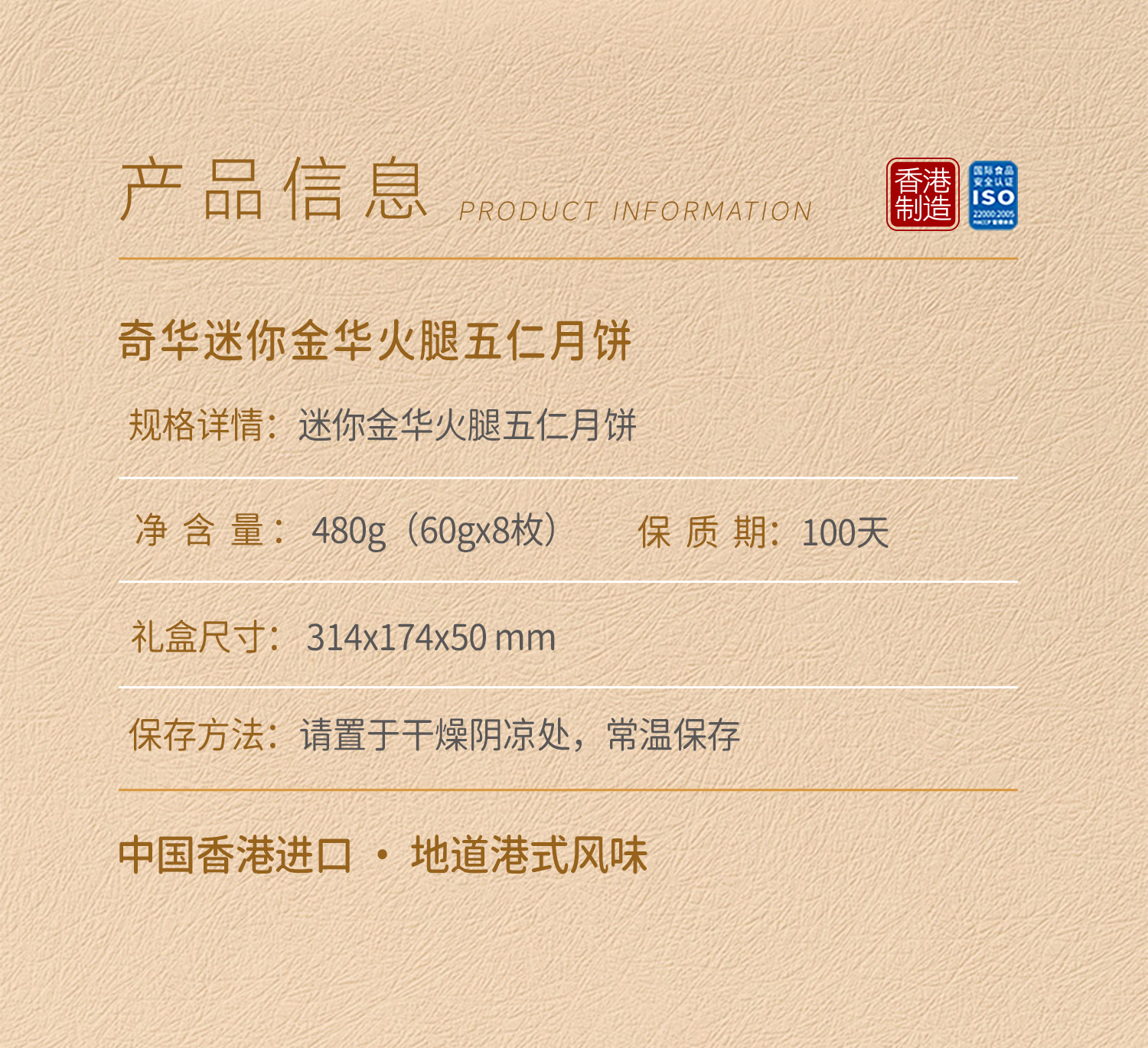【迷你金华火腿五仁月饼】中国香港奇华饼家广式中秋节送礼糕点特产