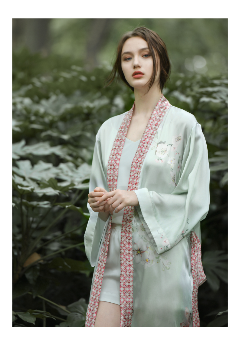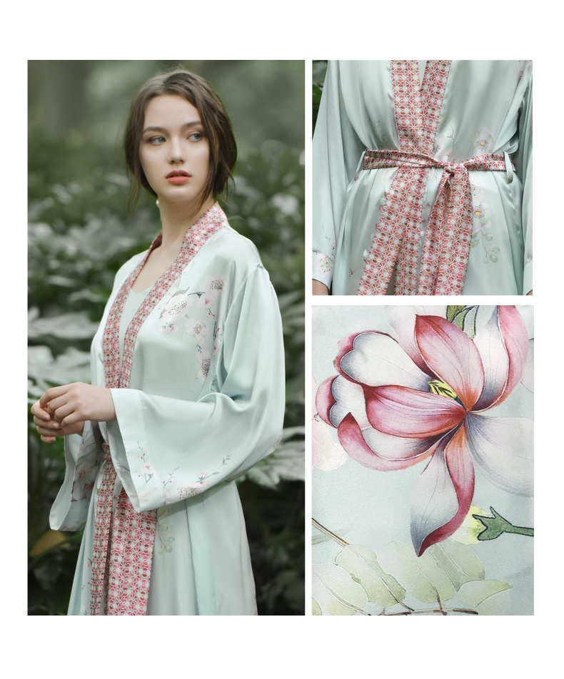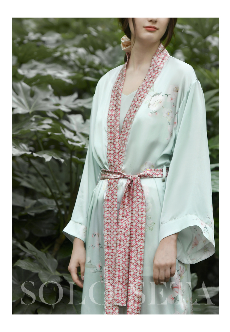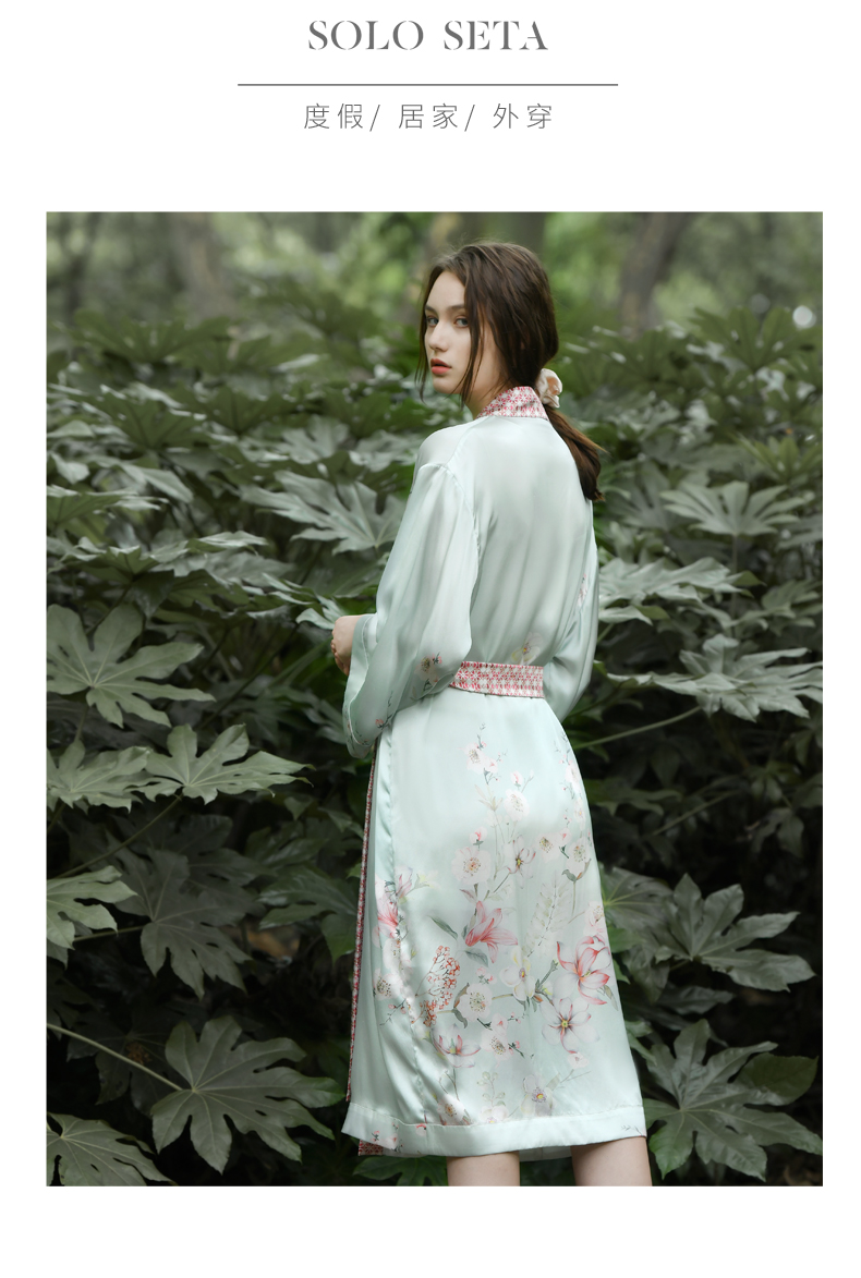 Solo seta真丝睡袍女士22姆米重磅桑蚕丝晨袍中长款浴袍睡衣秋冬