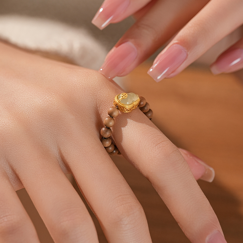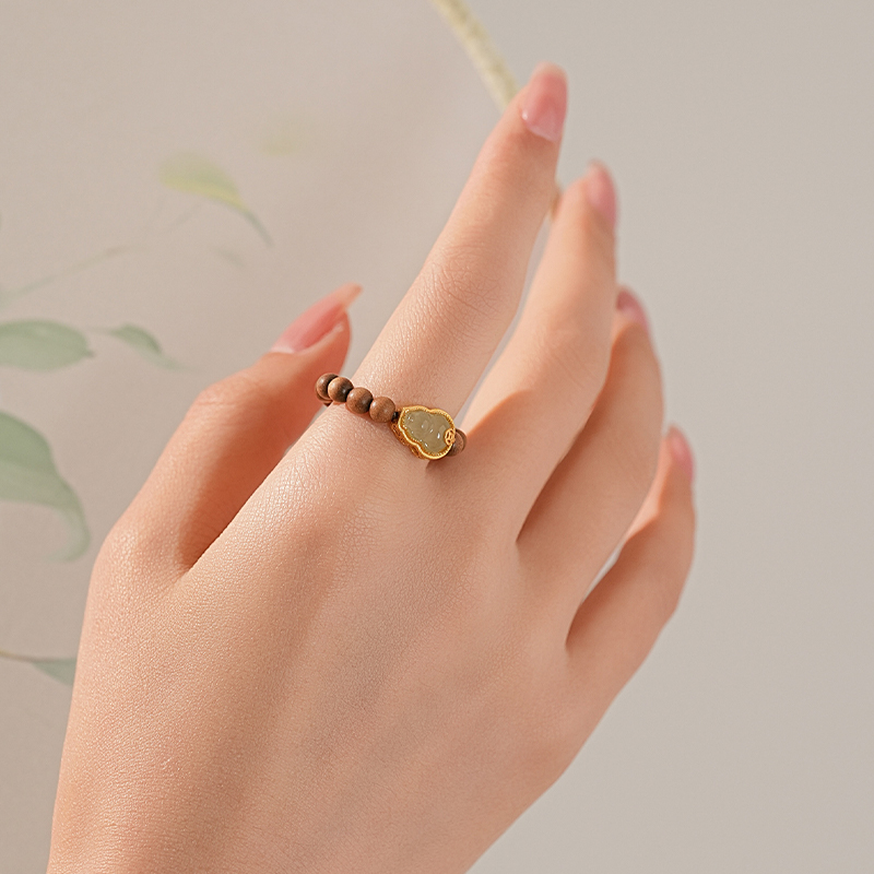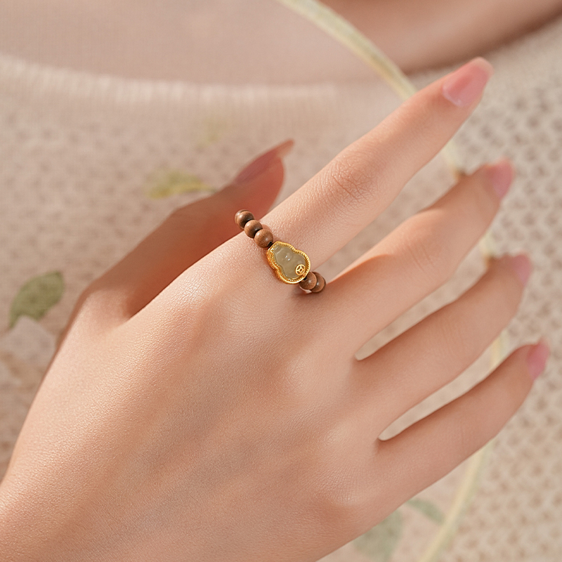 【福星·葫芦老山檀戒指】中式国风手串配饰 敦煌福泽小众轻奢戒指