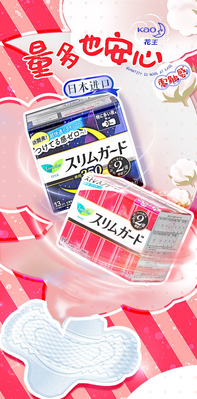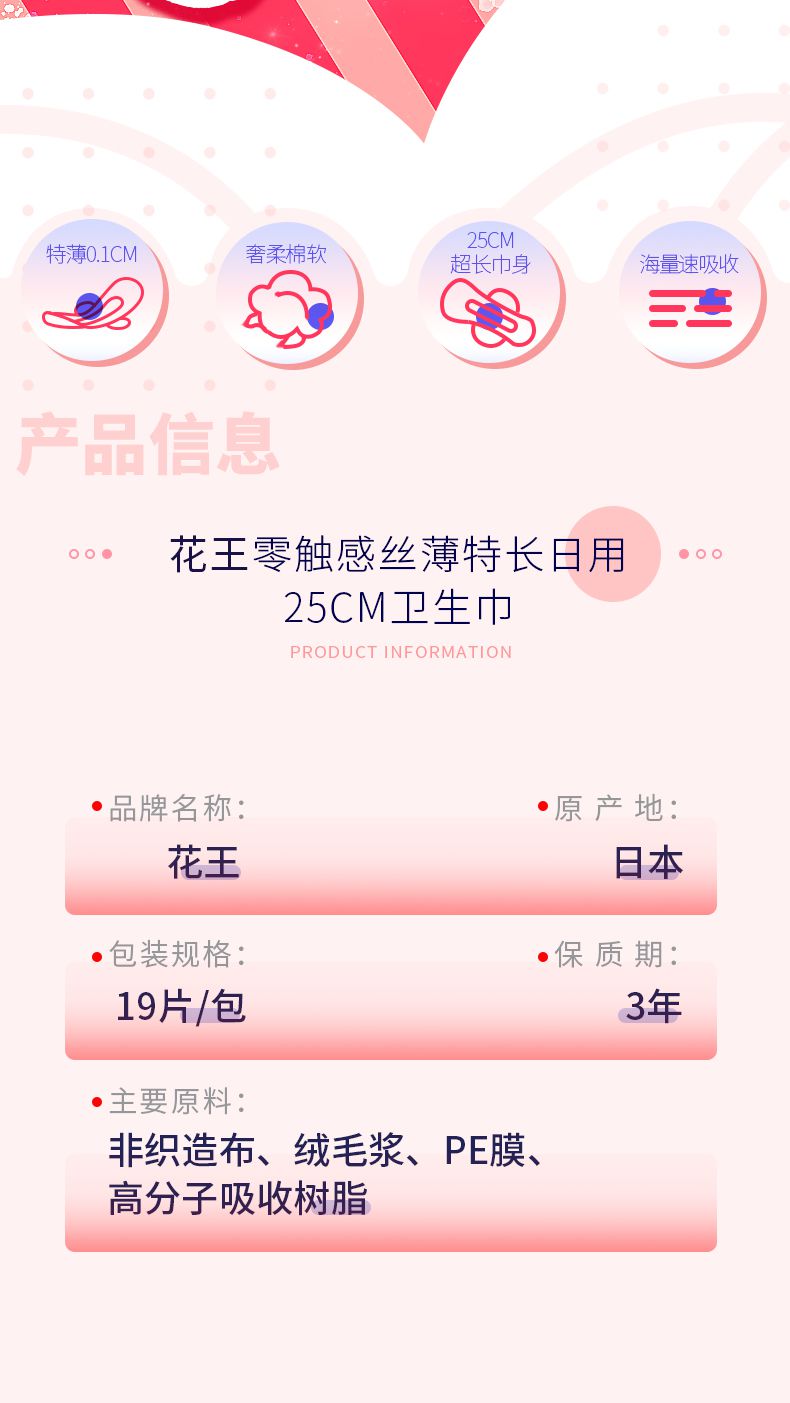 【3包装】KAO花王 乐而雅S系列薄日用卫生巾25cm*19片/包
