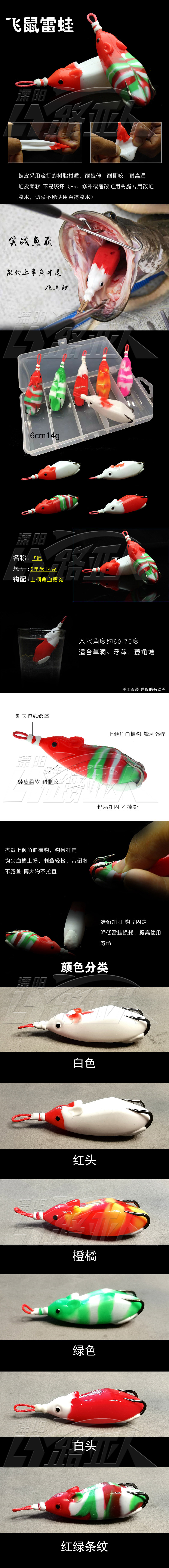 飞鼠雷蛙14克手工改装款上倾角血槽钩雷蛙打黑路亚饵