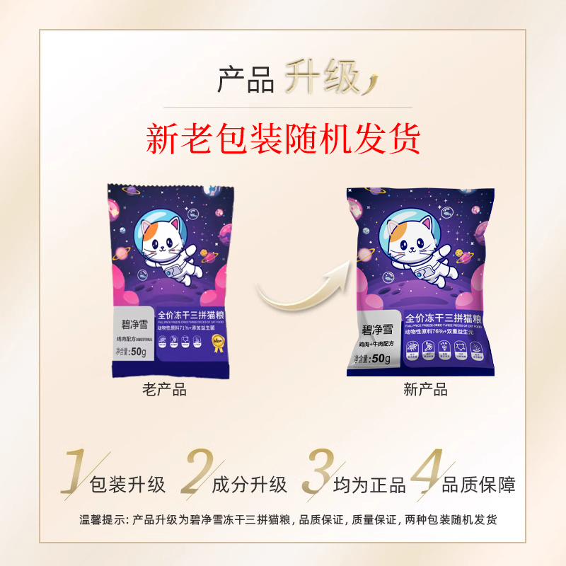 碧净雪猫粮2包试吃装 每包50g 为了保证活动公平,每人限参加一次 同个ip/同个地址/相近地址/虚构收货信息/多账号购买等批量异常下单,店铺有权对异常订单不发货且取消活动资格