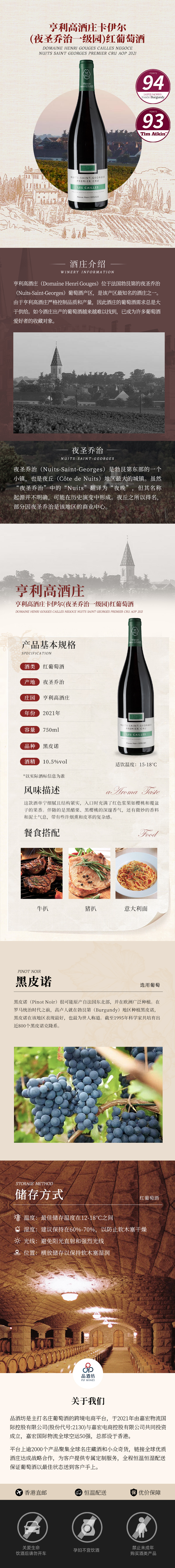 2021 Domaine Henri Gouges Cailles Negoce Nuits Saint Georges Premier Cru AOP 亨利高酒庄卡伊尔(夜圣乔治一级园)红葡萄酒