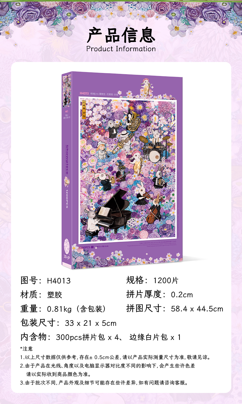 1200片 平面塑料拼图 H4013 程靖jinn-万物生·花间卷·妙音