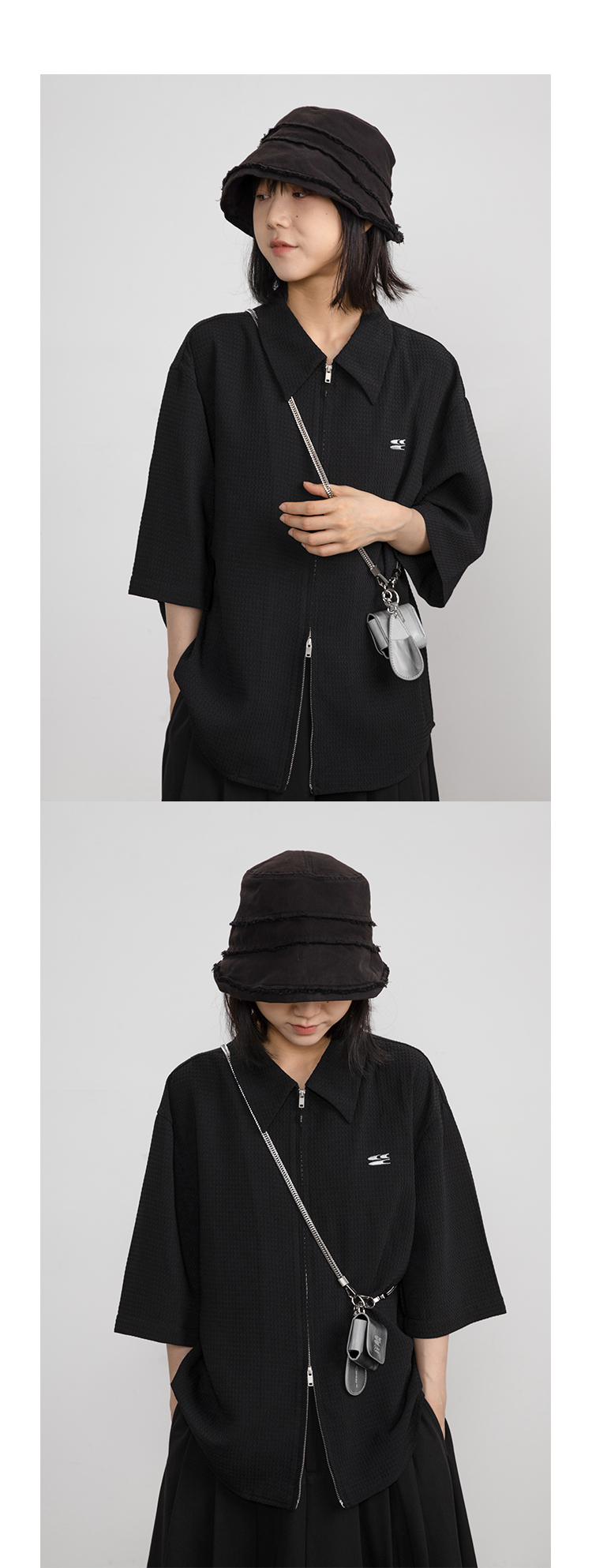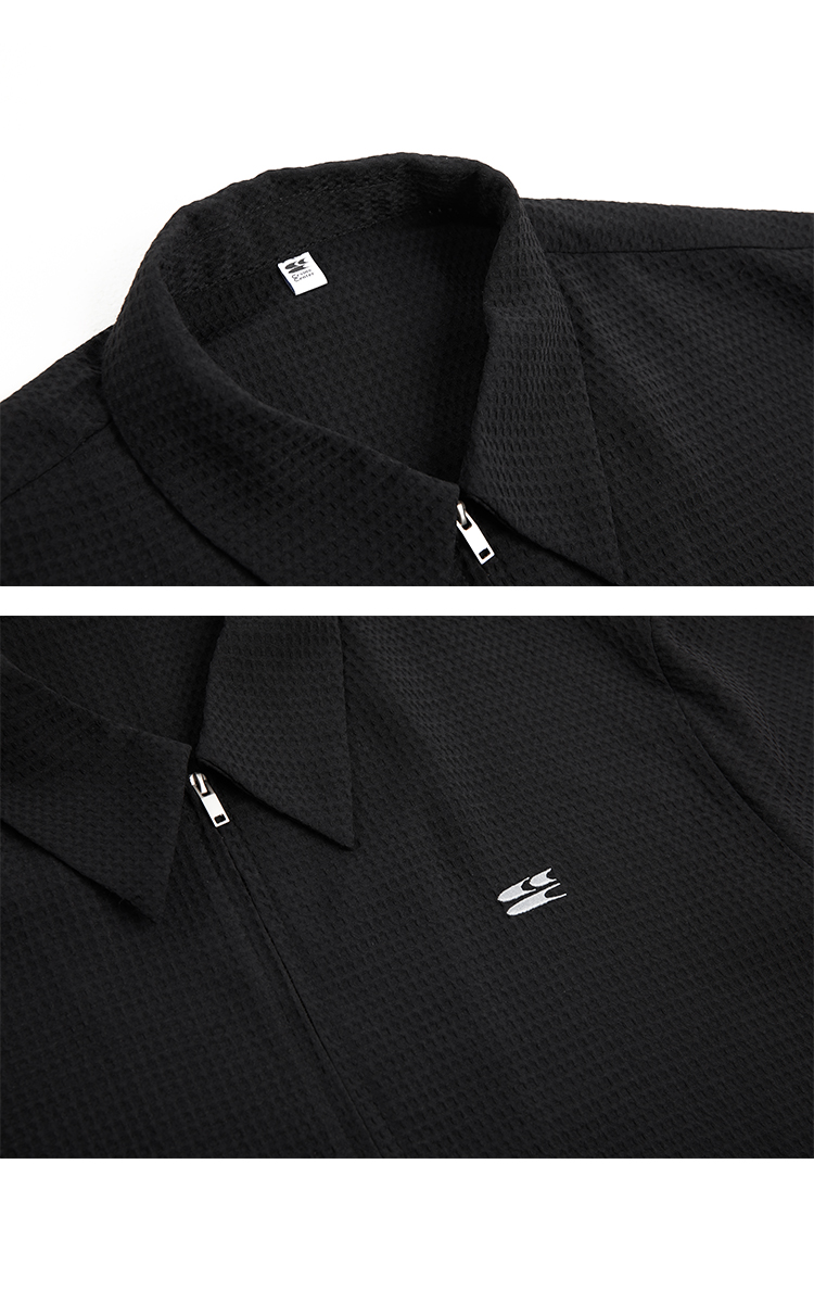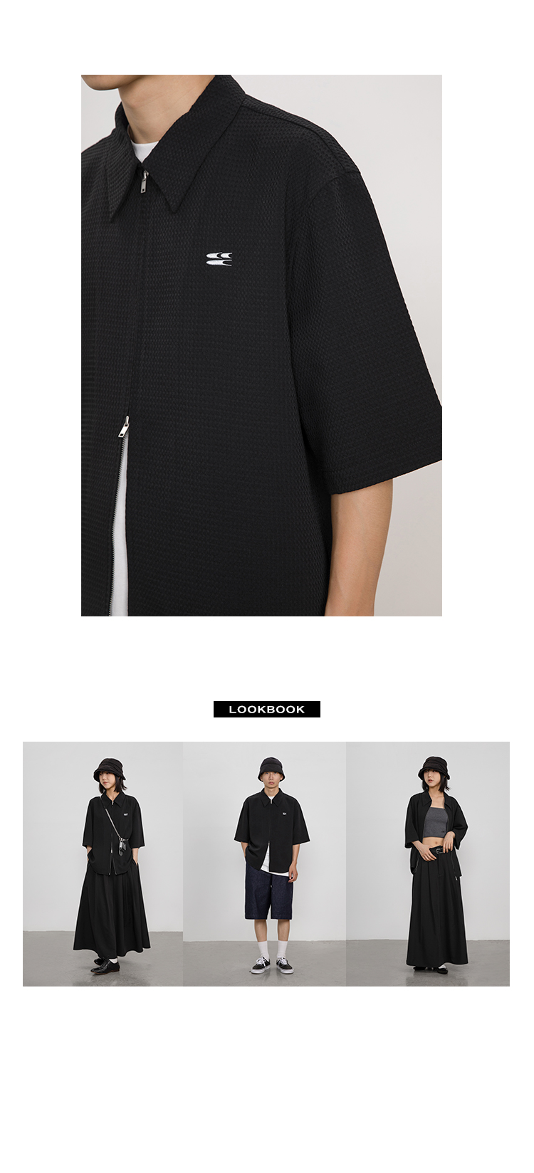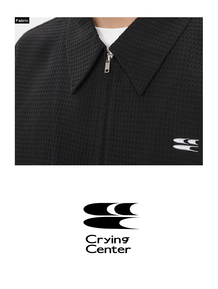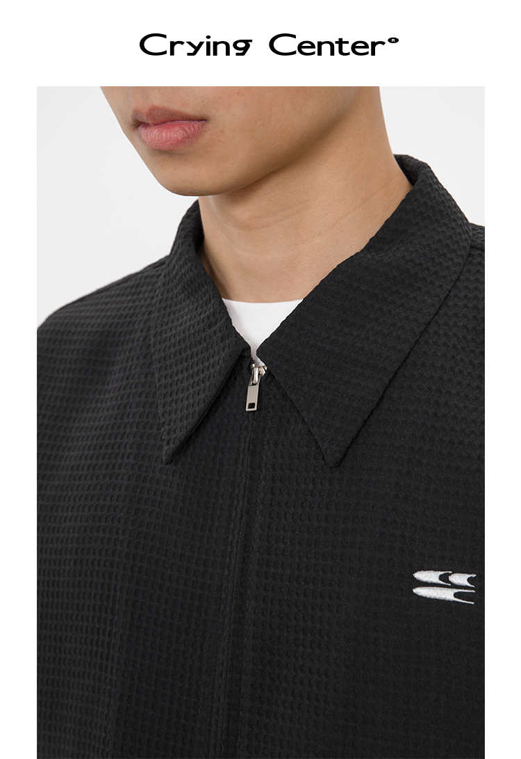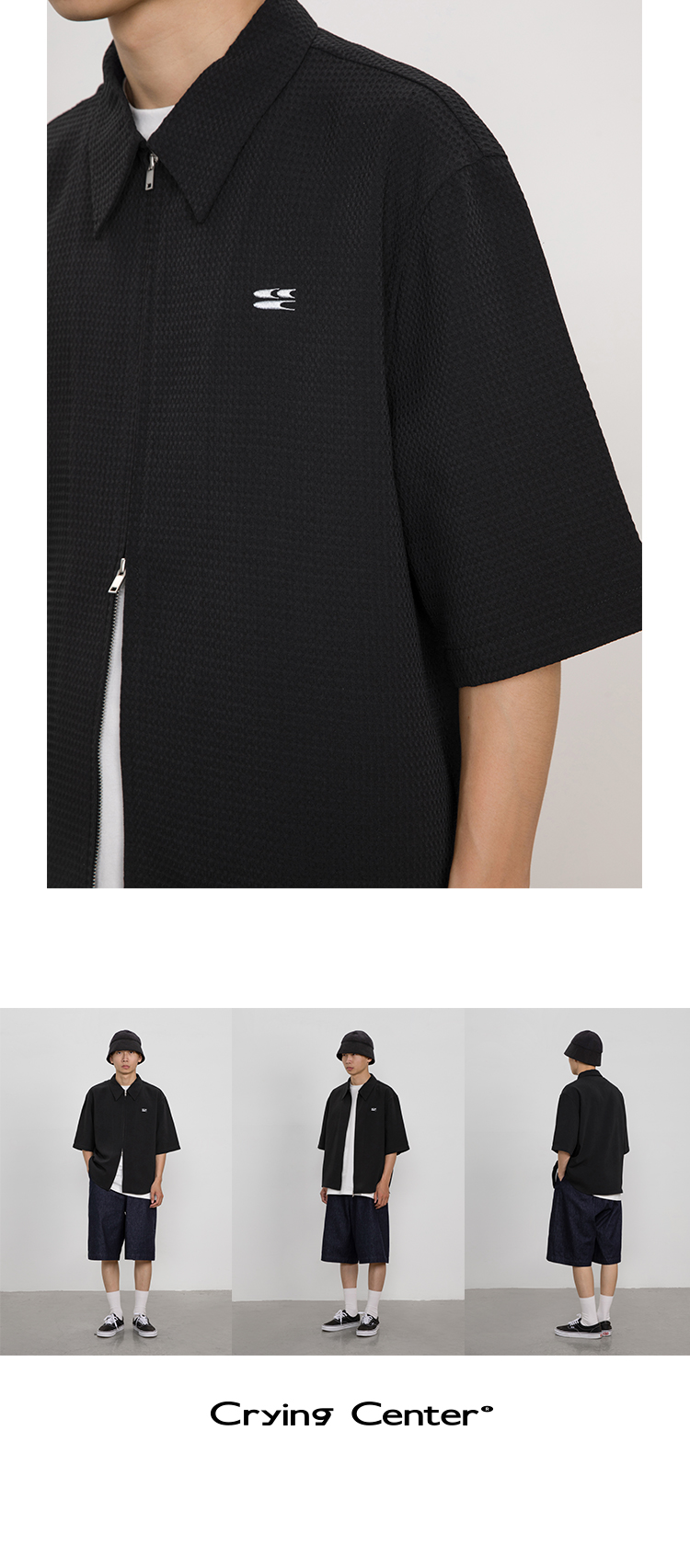 CryingCenter 银灰刺绣极简黑无性别华夫格衬衫上下拉链 哭喊中心
