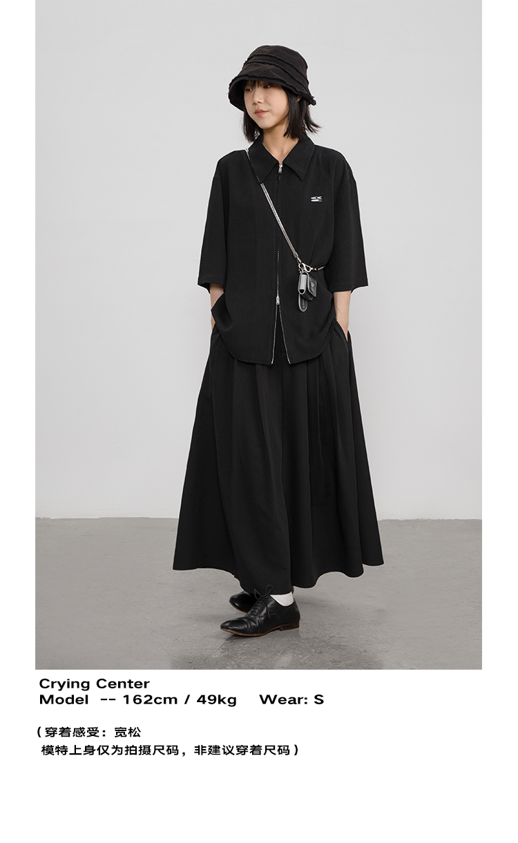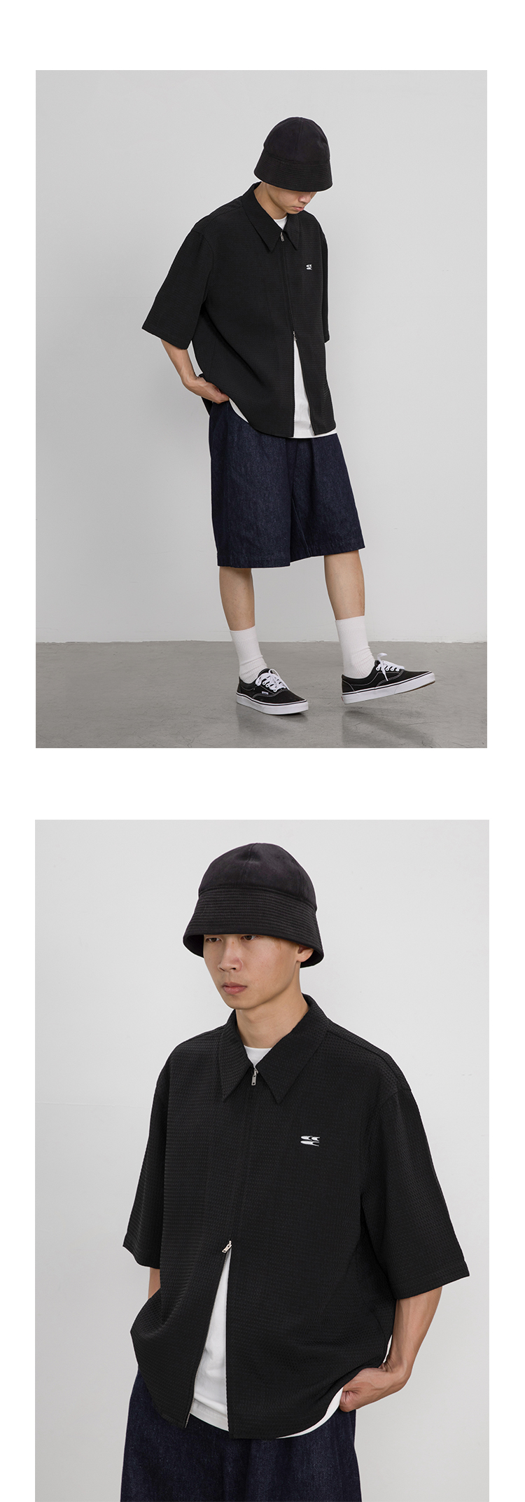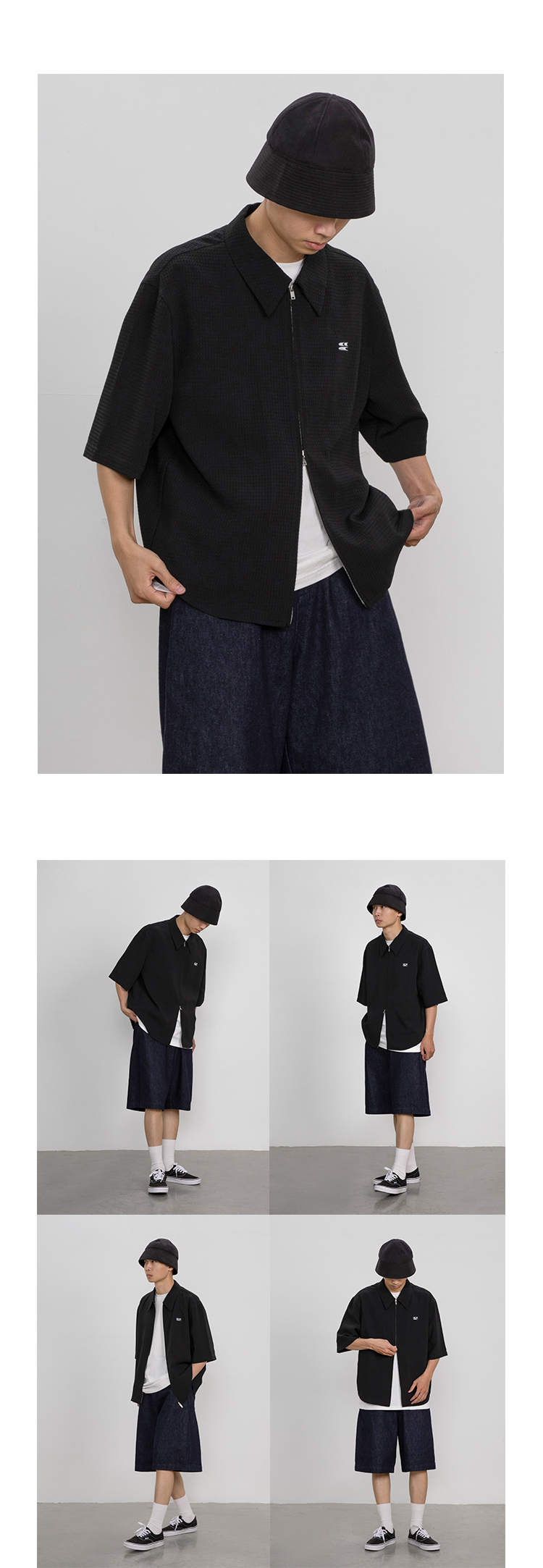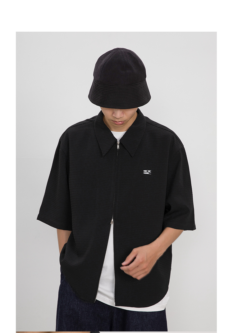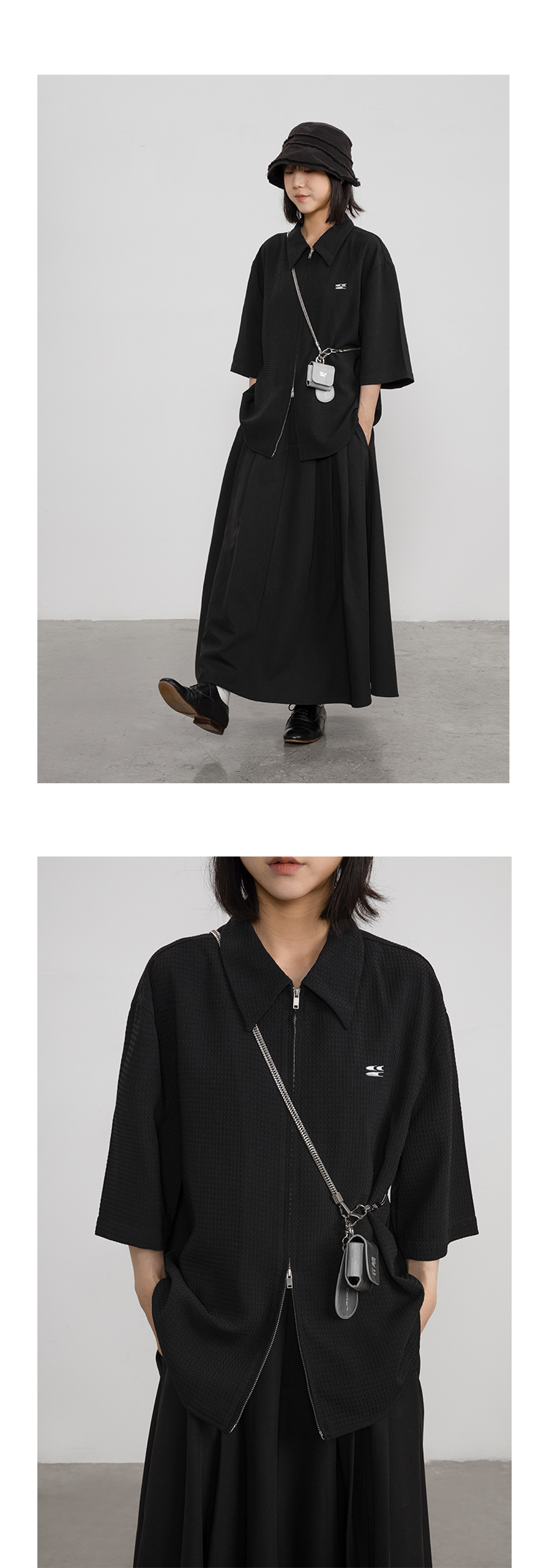 CryingCenter 银灰刺绣极简黑无性别华夫格衬衫上下拉链 哭喊中心