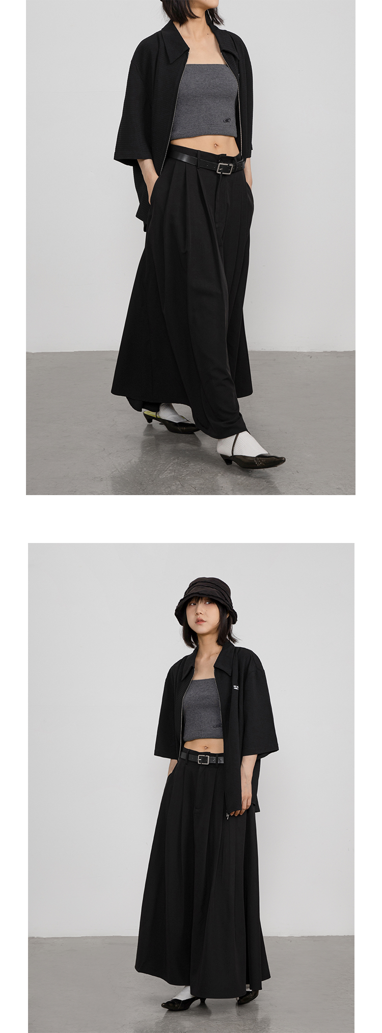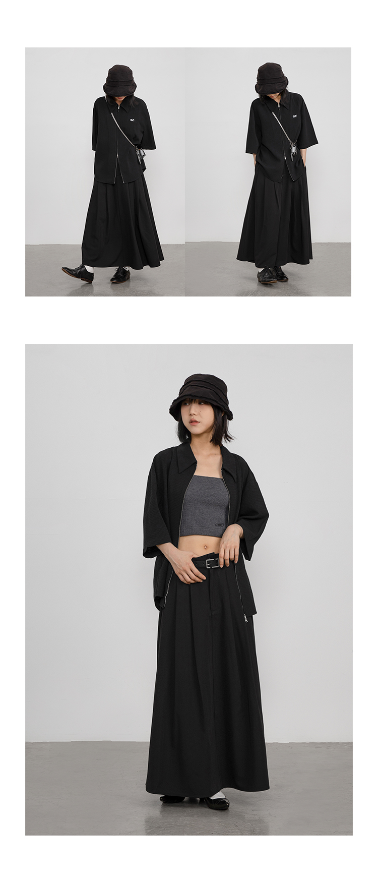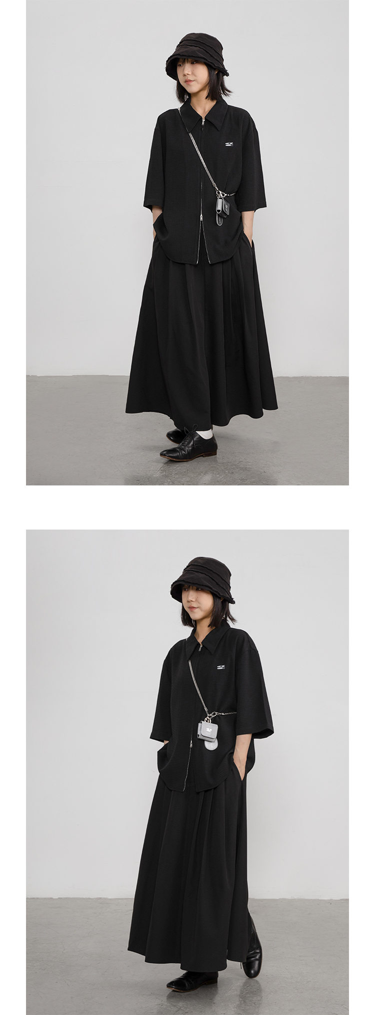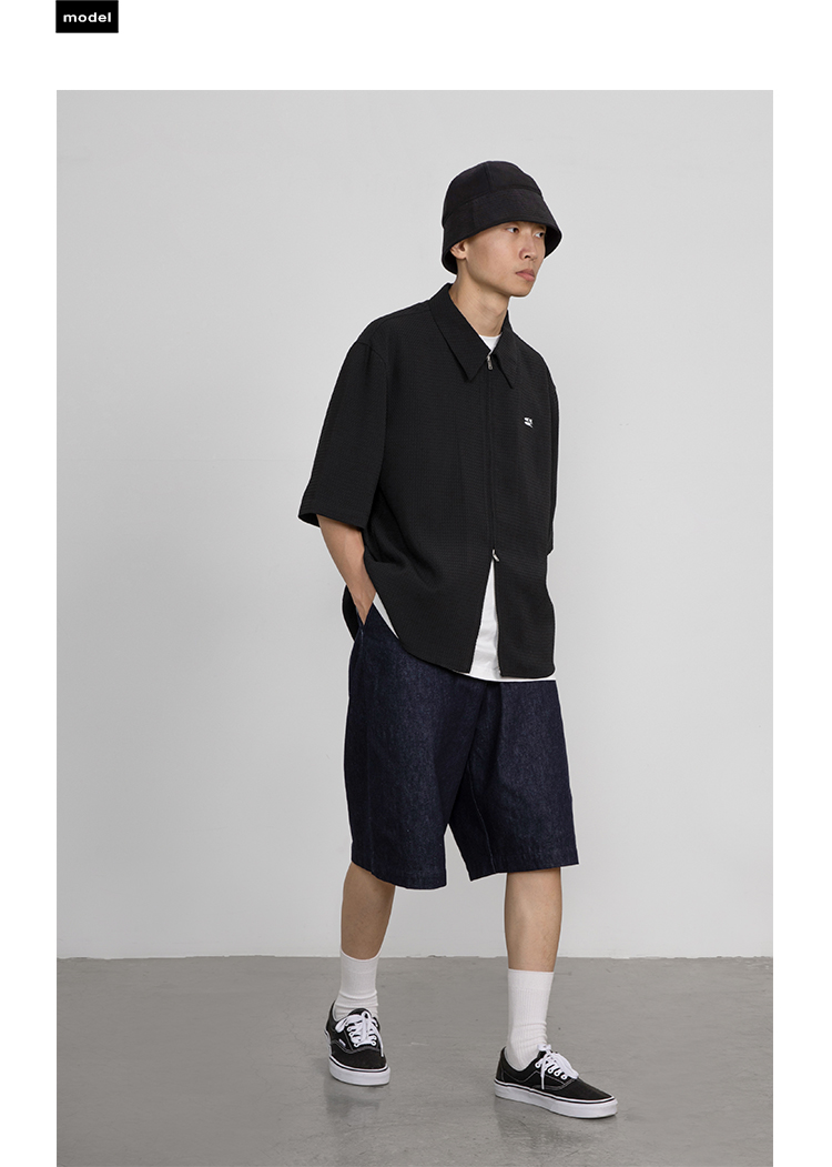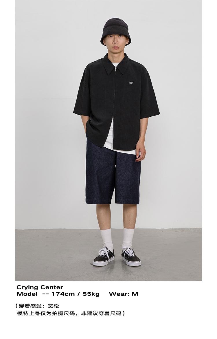 CryingCenter 银灰刺绣极简黑无性别华夫格衬衫上下拉链 哭喊中心