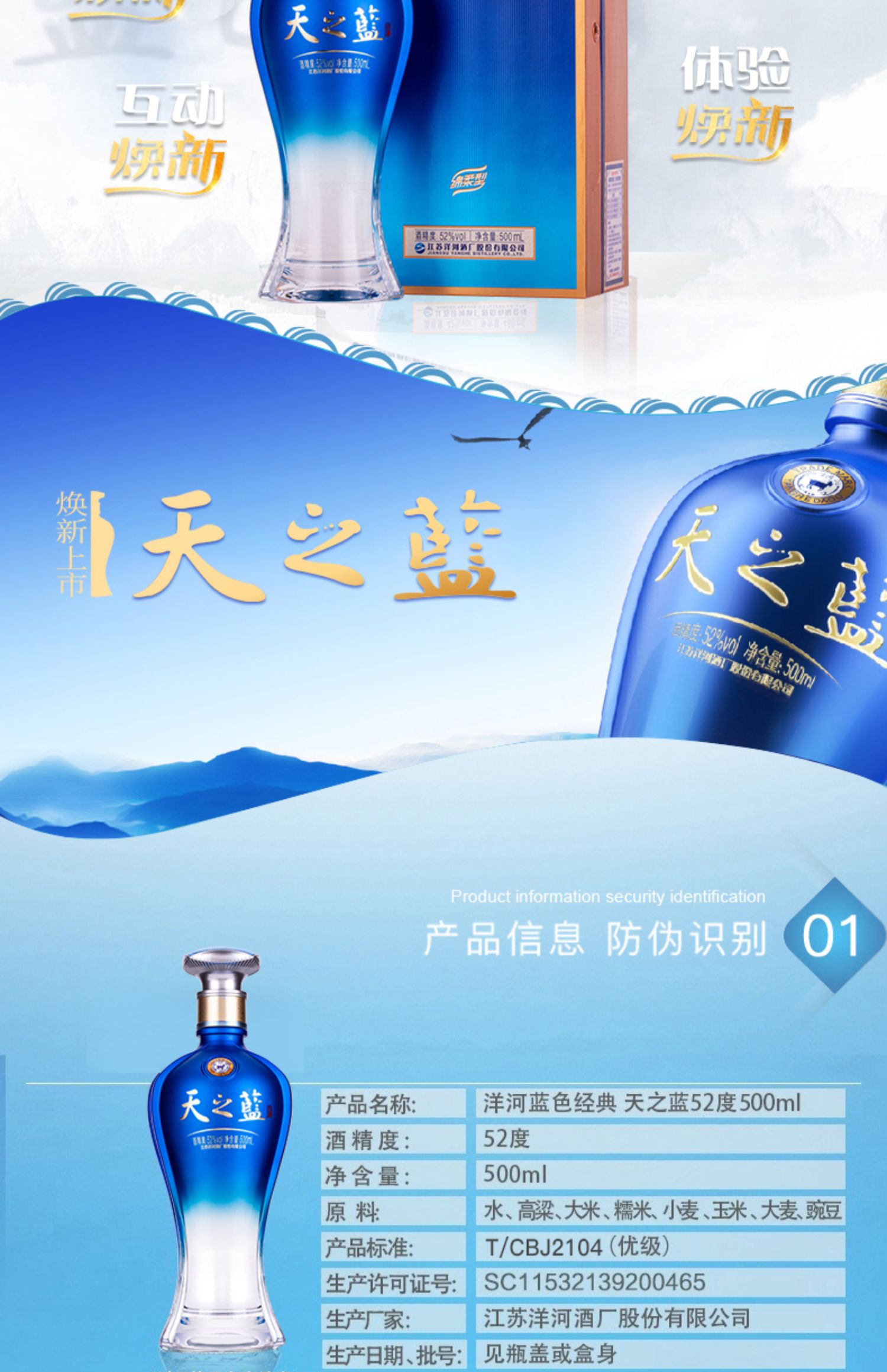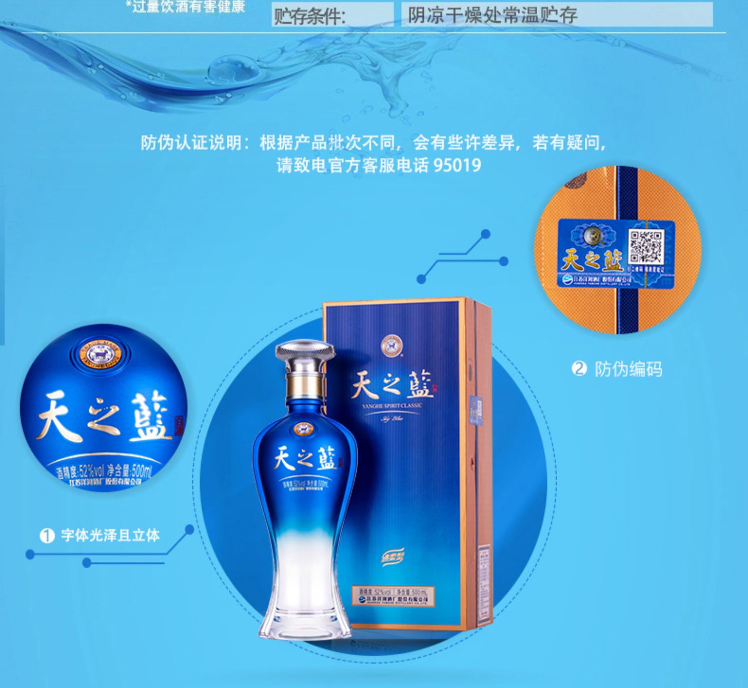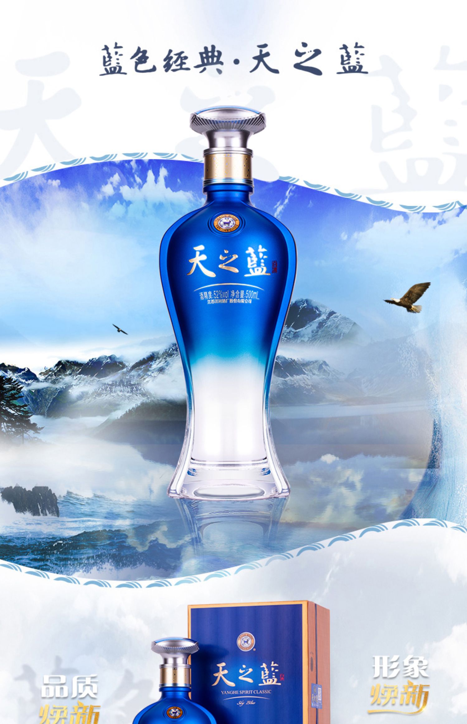 【仅供集采】洋河蓝色经典 天之蓝52度500mL*6瓶 箱装