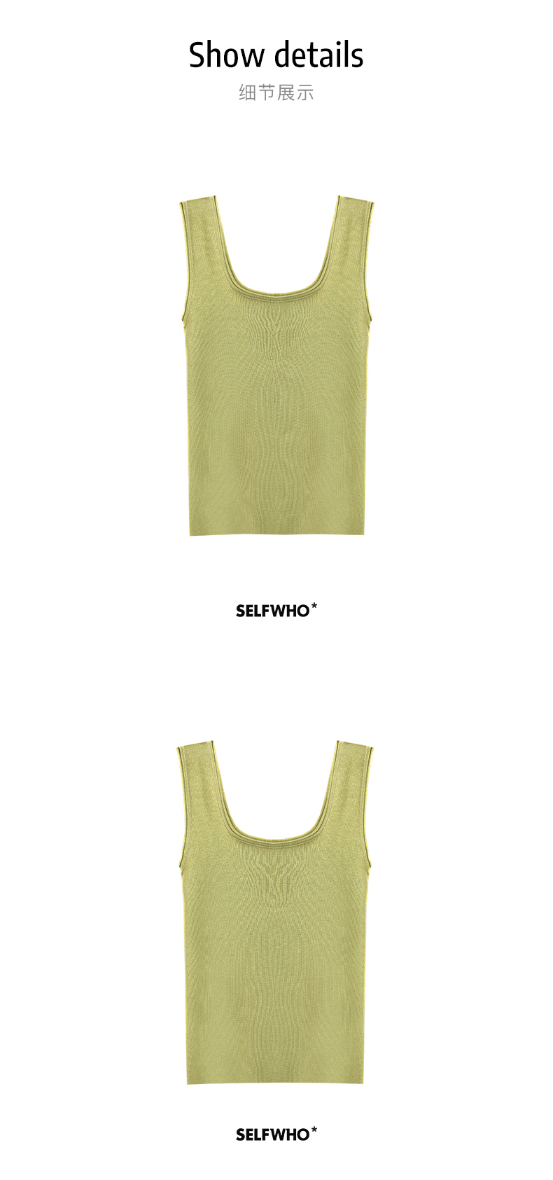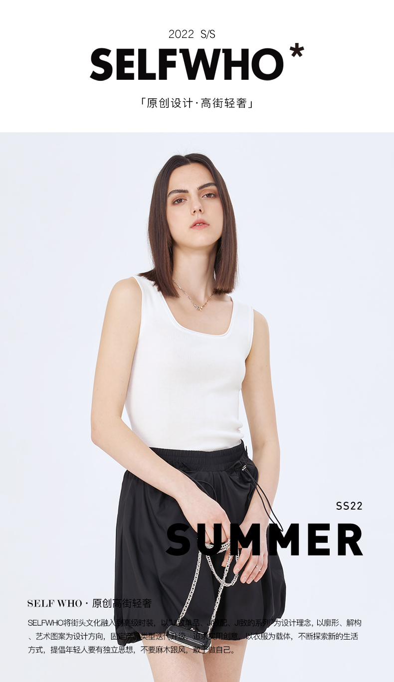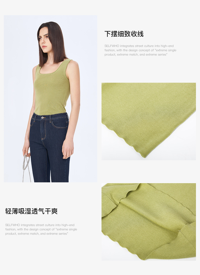 Self Who桑蚕丝吸湿透气四平方领外穿针织经典百搭多色无袖背心