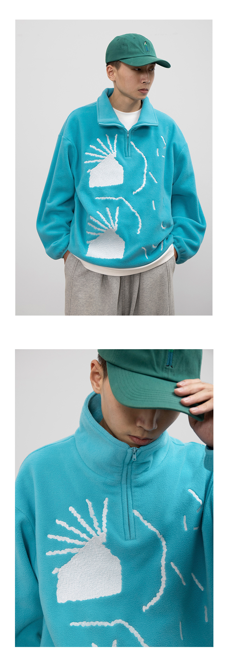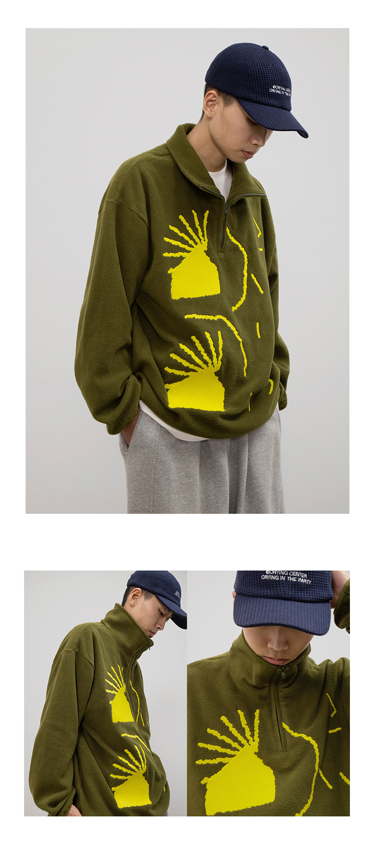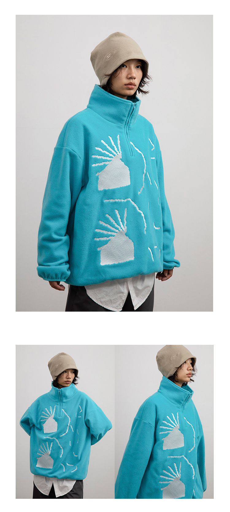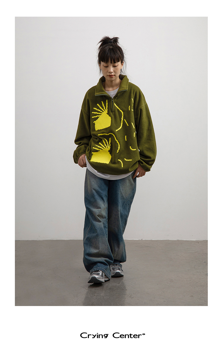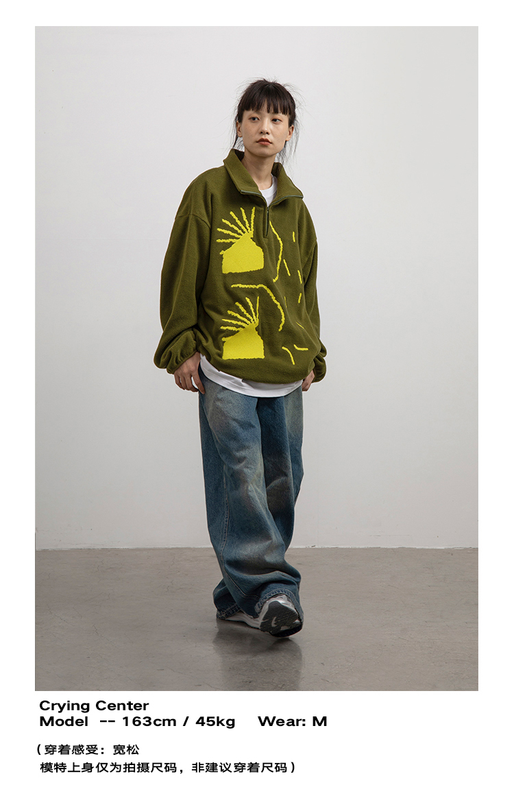 cryingcenter 泪屋系列 杂草屋 双色刺绣高领细摇粒绒 外套