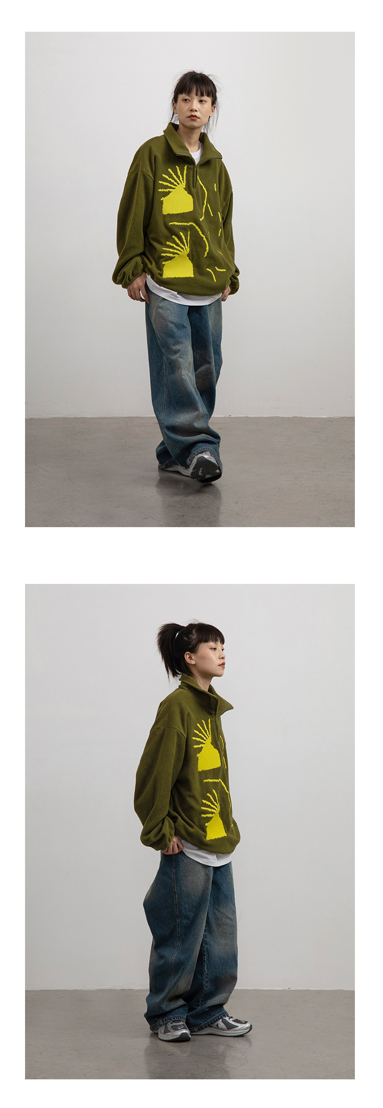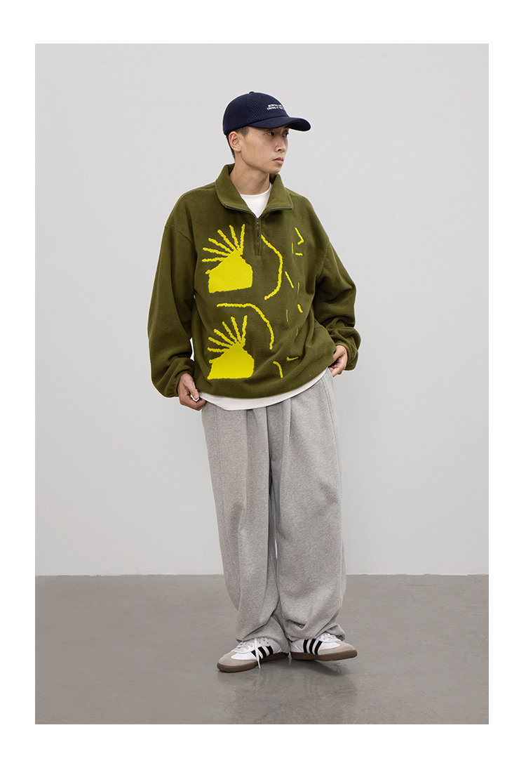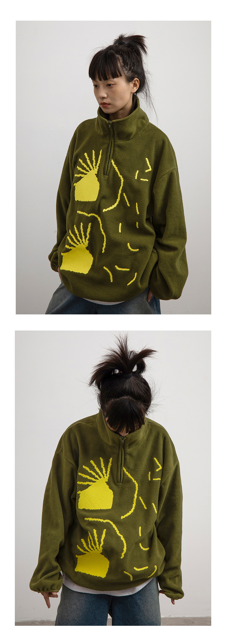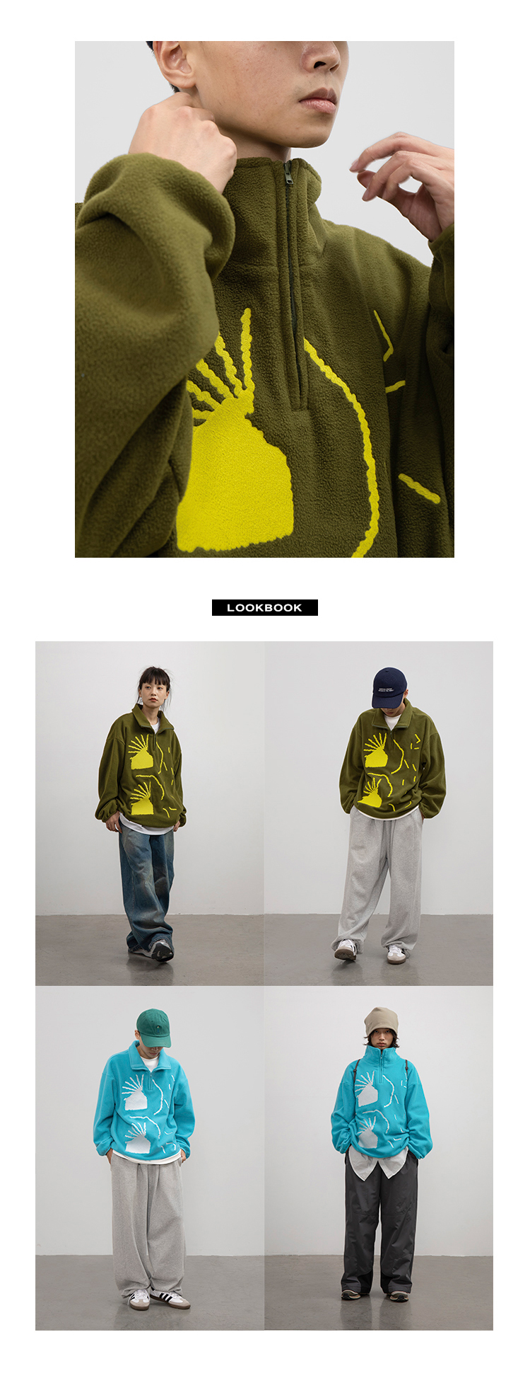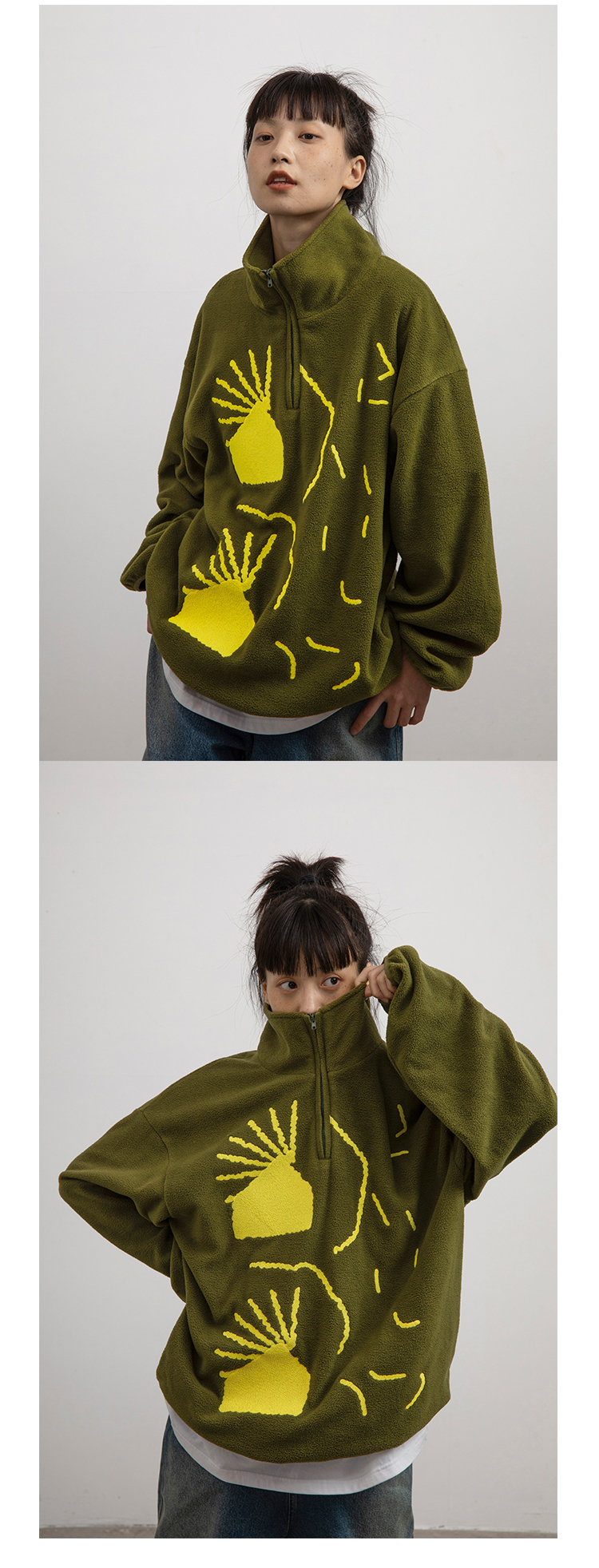 cryingcenter 泪屋系列 杂草屋 双色刺绣高领细摇粒绒 外套